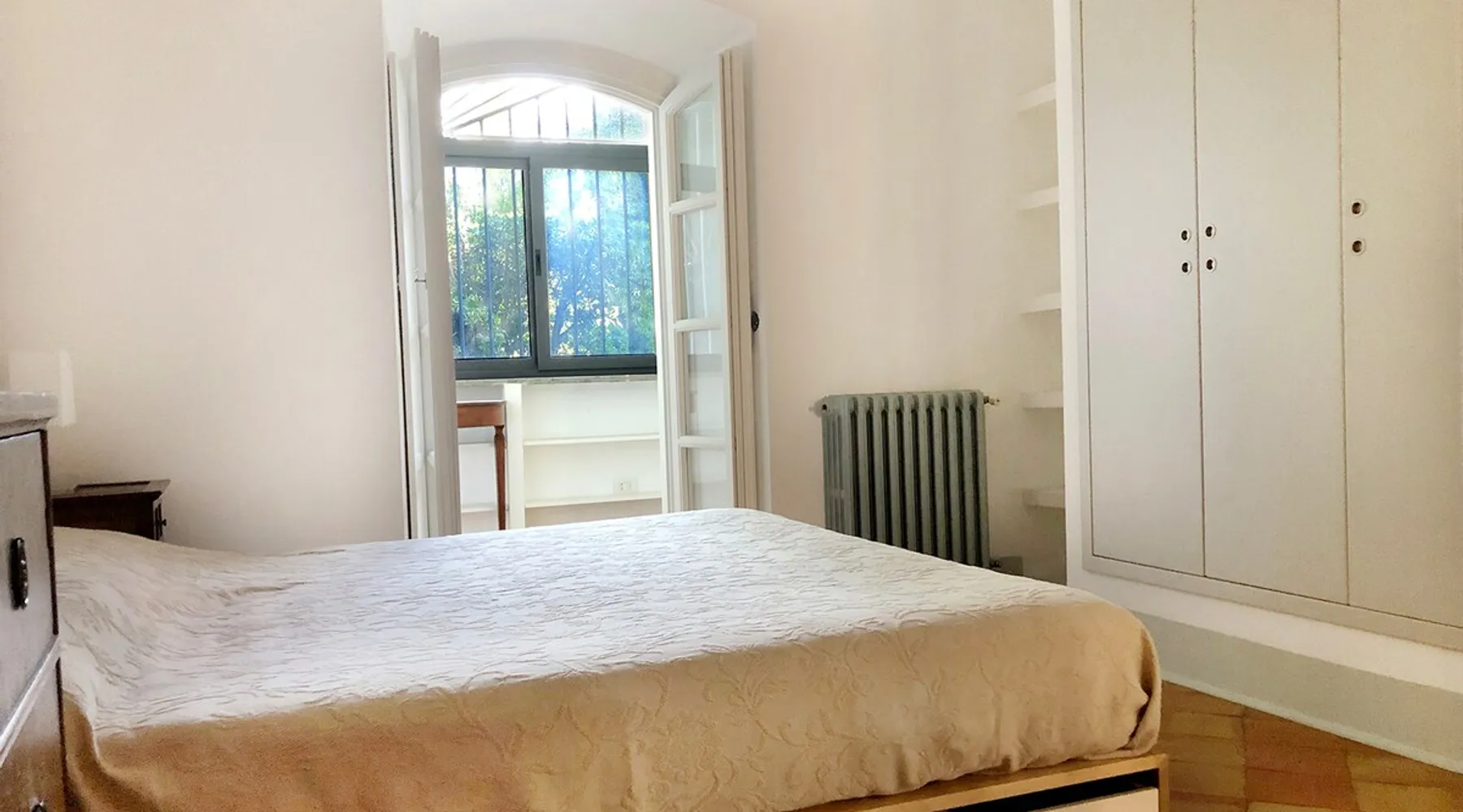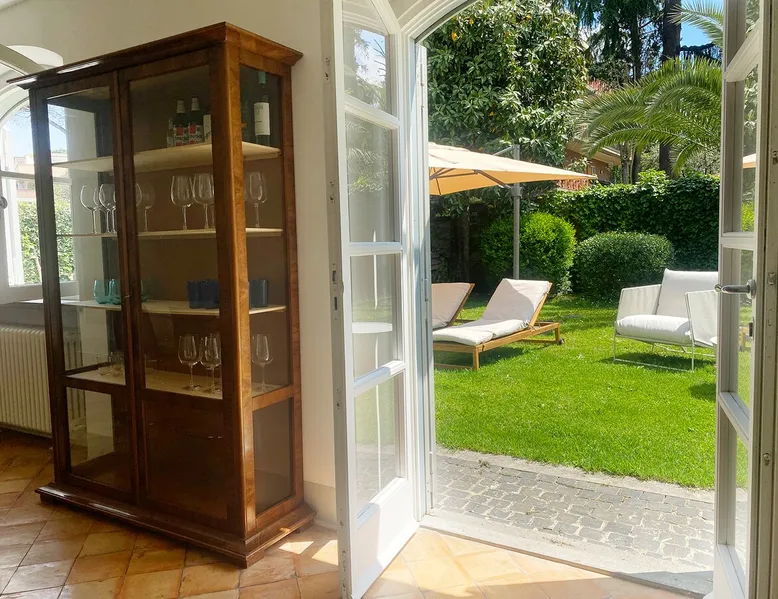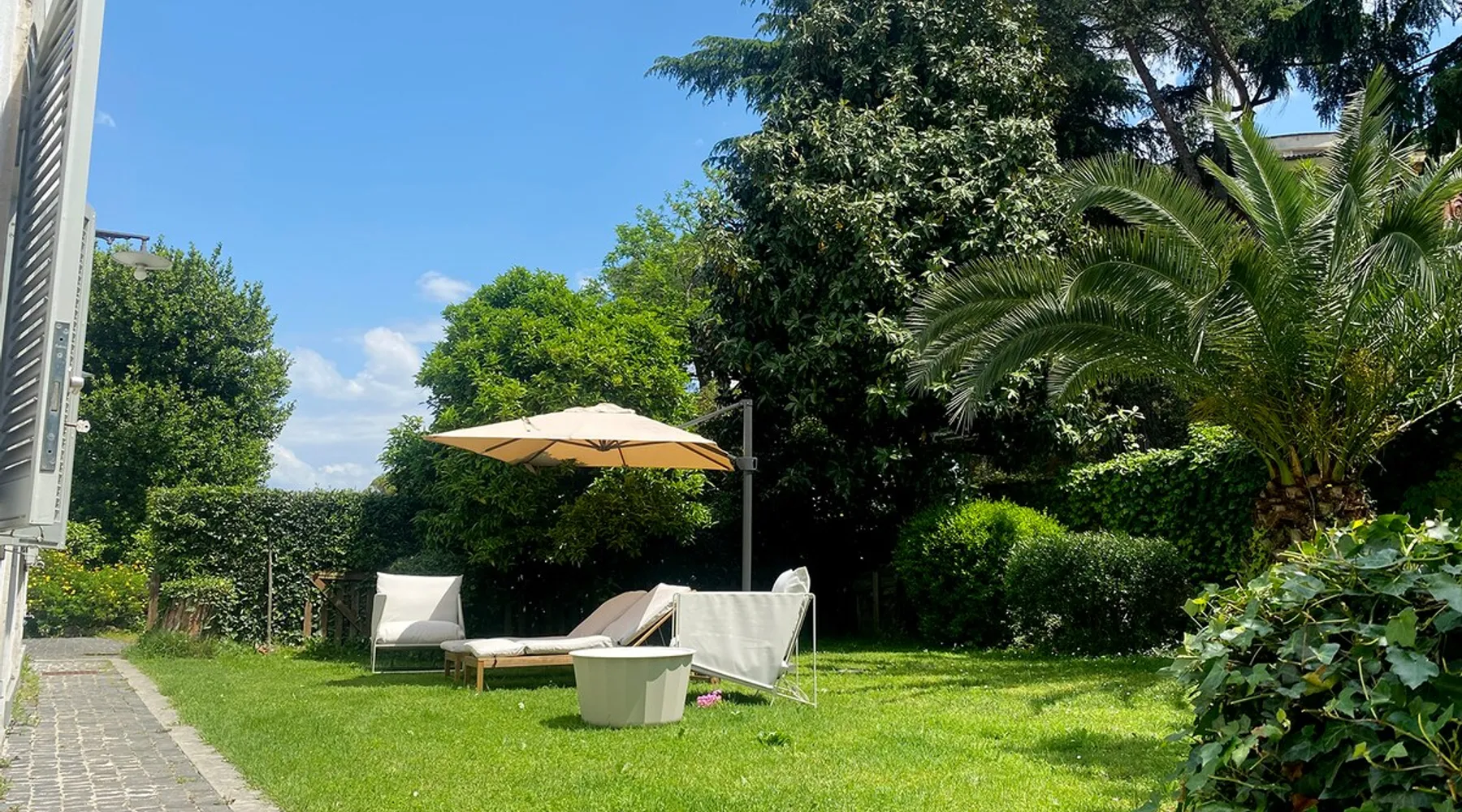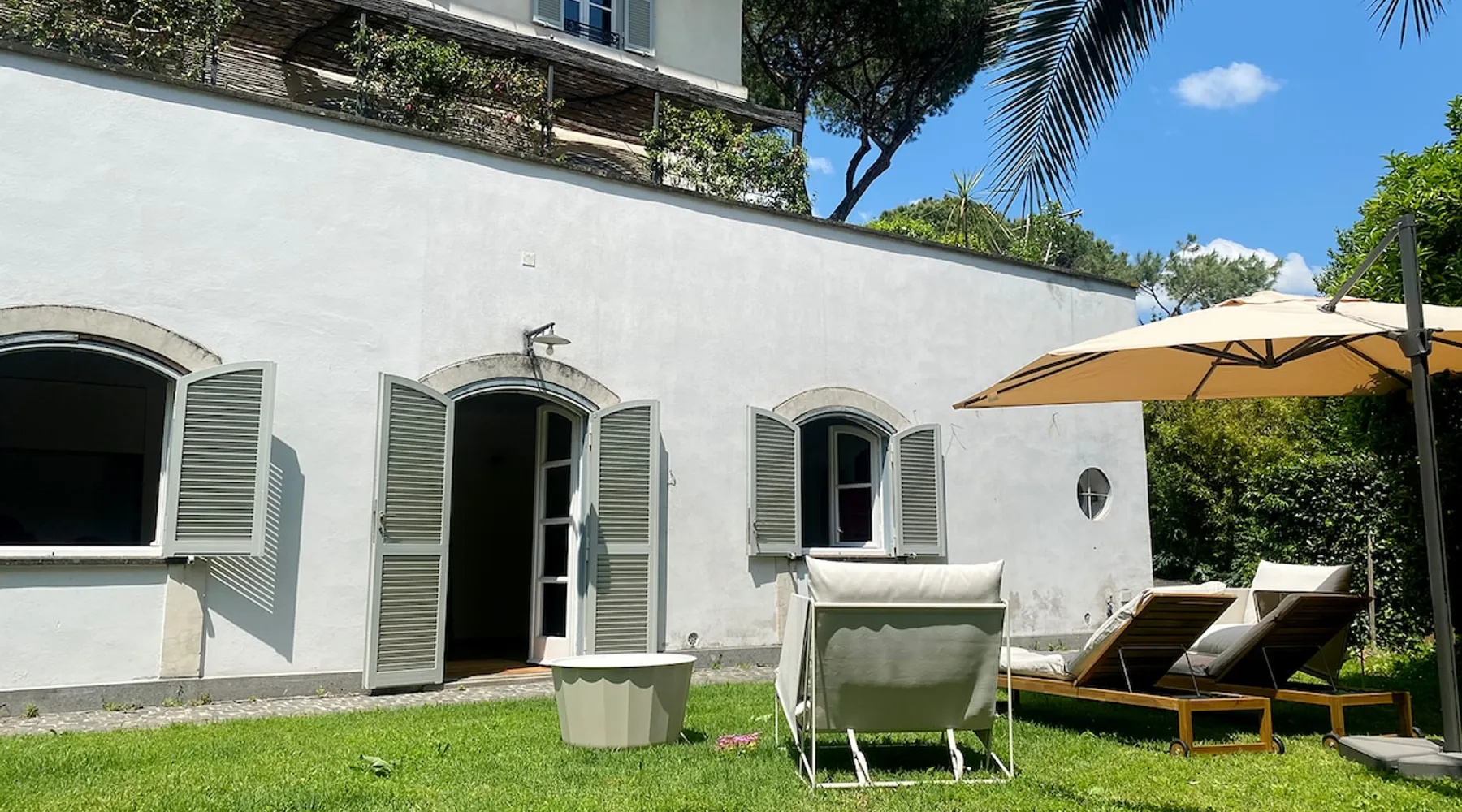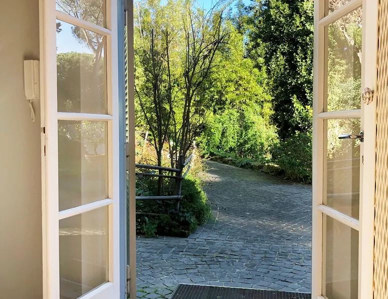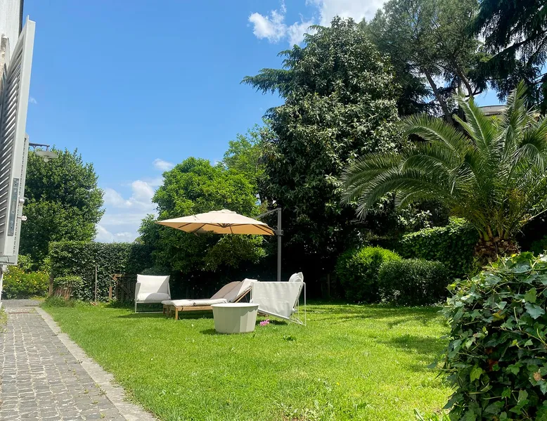 Private portion of a beautiful independent villa in the center of Rome, surrounded by green (only 400 meters away from Piazza Pio XI). The property is located in a dead end street, of a very quiet residential area, completely surrounded by trees. The living area is facing a nice private garden, where you will find deck chairs, armchairs and shades. The villa is steps away from a bus stop. It's only 450 meters away from the shops. The location is the one of the best you could wish for!! Private portion of a beautiful independent villa in the center of Rome, surrounded by green. The property is located in a dead end street, of a very quiet residential area, completely surrounded by trees, steps away from the marvelous park of Villa Pamphili. The property is on the ground floor. It’s very bright. It comprise a huge living , with sofas and dining table, two bedrooms, two bathrooms and a complete kitchen. One bedroom has an en-suite bathroom with a tub. The other bedroom has a nice patio. The bathroom is just outside the bedroom’s door. The living area is facing a nice private garden, where you will find deck chairs, armchairs and shades. The apartment can accommodate a total of six guests. There are two bedrooms with queen size beds (160 cm wide) and one very comfortable queen size sofa-bed in the living room. The villa is located 400 meters away from Piazza Pio XI, 2700 meters from St. Peter’s basilica. It’s steps away from a bus stop. In less than 10 minutes you can reach St.Peter’s Basilica and the historical centre of Rome. Only 450 meters away, there are bars, restaurants, supermarkets and shops of all kinds. The location is the one of the best you could wish for!! Please note that the tenant that lives upstairs the villa has a very sweet, mild dog that sometimes wanders in the garden. She's just a quiet, beautiful Irish Setter, but if you're particularly afraid of dogs in general, you should know that you might encounter her.