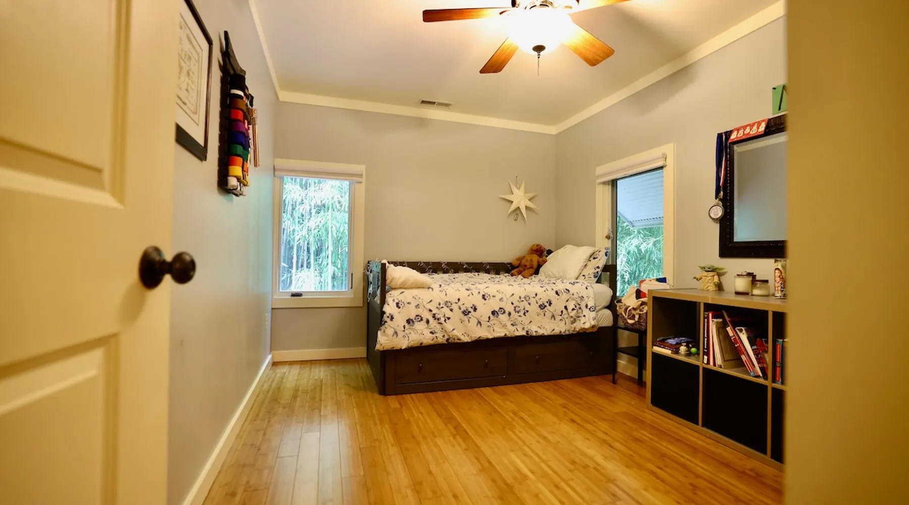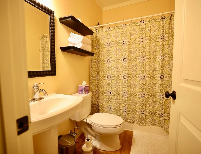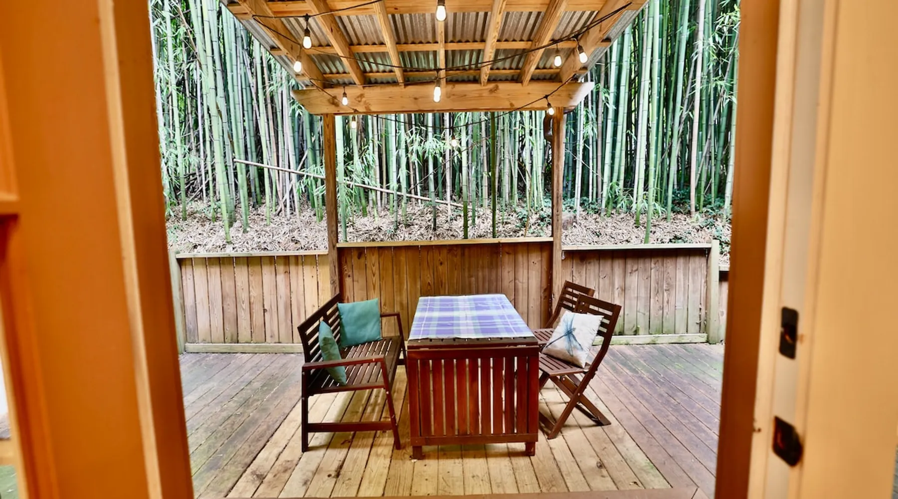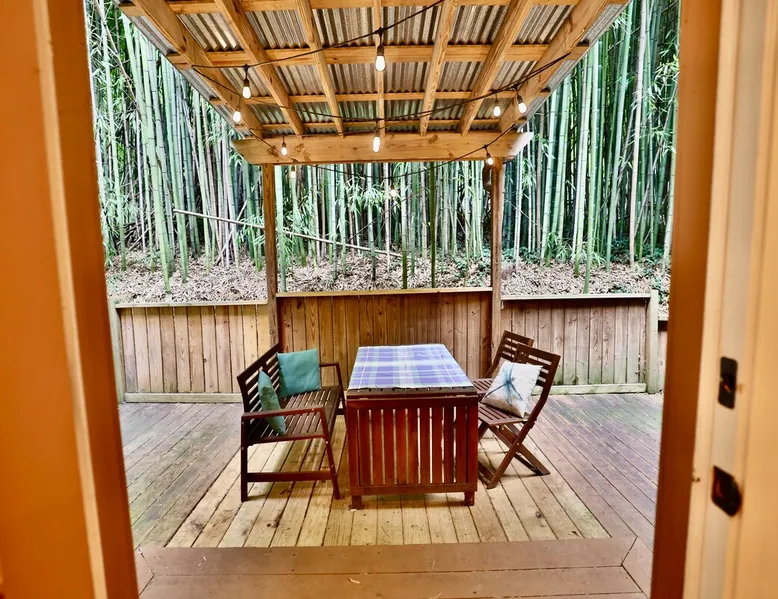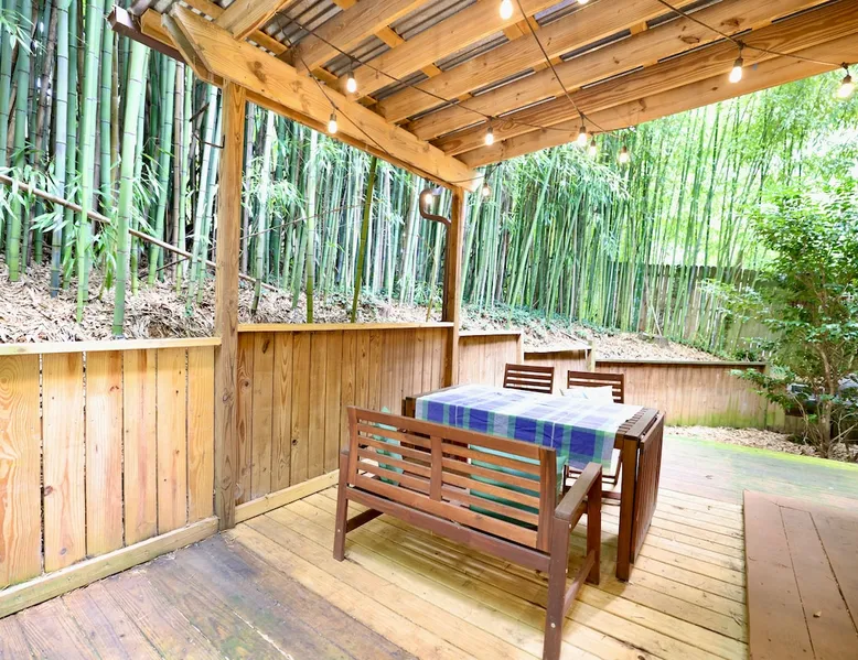 Welcome to our serene, family-oriented neighborhood! Experience privacy in our stunning modern home, which has an open floor plan ideal for family gatherings. Abundant windows fill the space with natural light. Surrounded by bamboo, the back porch offers a secluded spot for your morning coffee or after-work glass of wine. Enjoy this tranquil oasis just seven minutes from downtown Asheville. The space Discover the charm of our inviting two-story home, perfect for your family. The sunlit open first floor fosters connection and ample space for everyone. Upstairs, three bedrooms and two bathrooms provide privacy with comfortable beds. Outside, the spacious and private area offers ample parking, alfresco dining, and a designated workout space. Experience comfort and room to spread out! Guest access Welcome to our spacious three-bedroom home! While the primary bedroom's closet and our private holiday items in the attic are reserved, the remainder of this delightful house is at your disposal. Explore the stocked pantry and enjoy the starter kit of kitchen, laundry, and cleaning supplies. Additionally, inquire in advance to access the outdoor cold plunge tub—an added amenity for your group. We look forward to ensuring your stay is both comfortable and enjoyable. Other things to note Experience home entertainment on our large living room screen, utilizing our projector for TV access at your convenience. Benefit from our high-speed internet, accommodating multiple streaming devices simultaneously without any issues—perfect for gaming enthusiasts, as our teen can attest to never facing slow internet problems. The bedrooms are all upstairs. You must be able to climb stairs to enter the home and access the bedrooms. Our private yard isn't fenced; if you bring your beloved family dog, we suggest a long leash line.