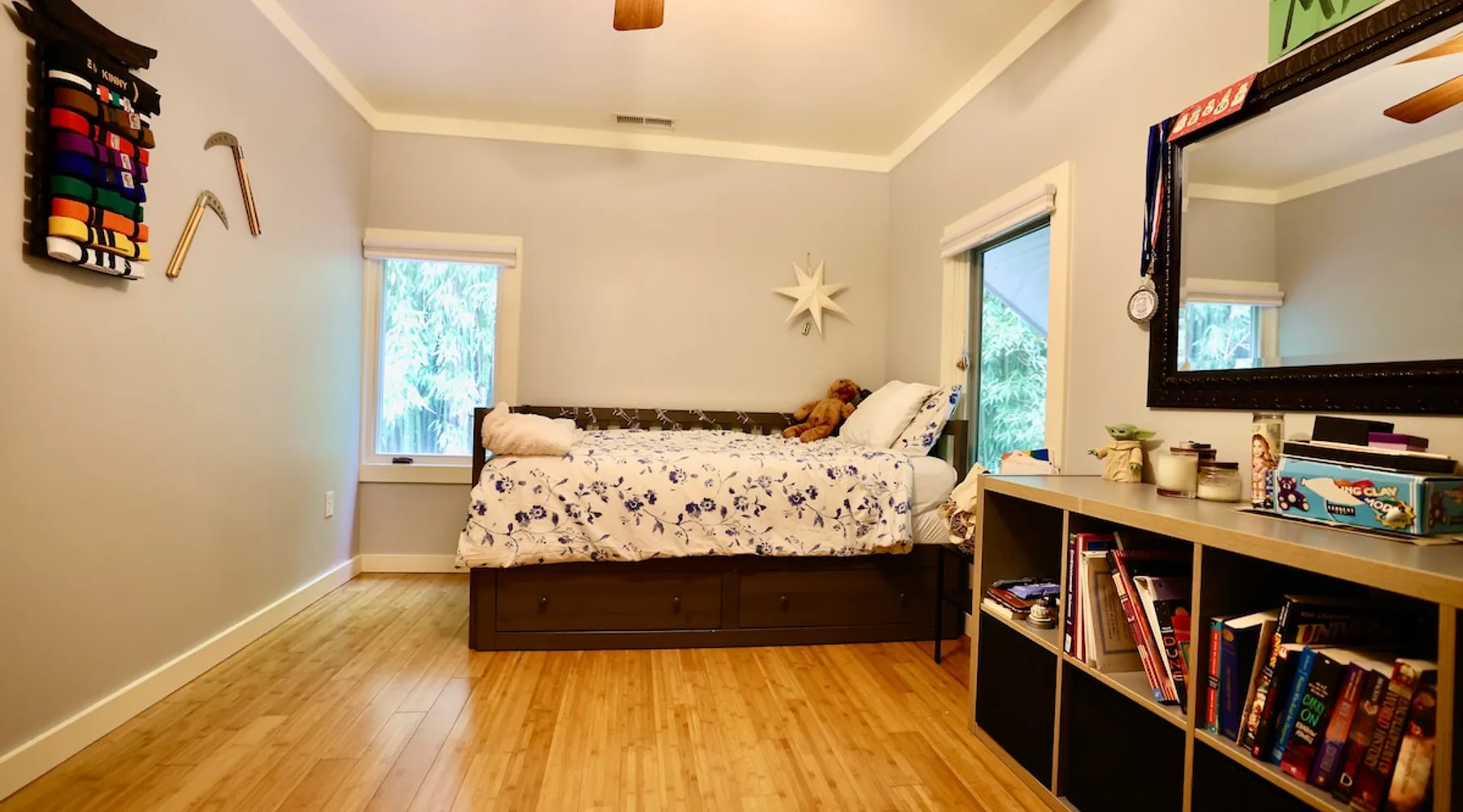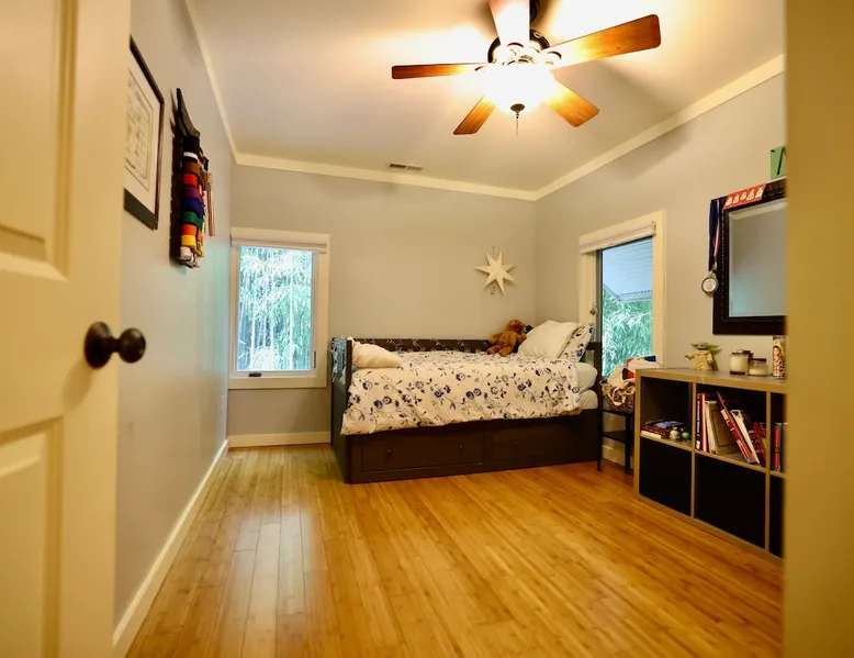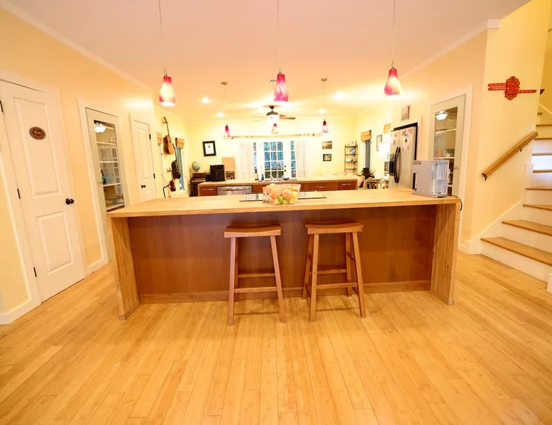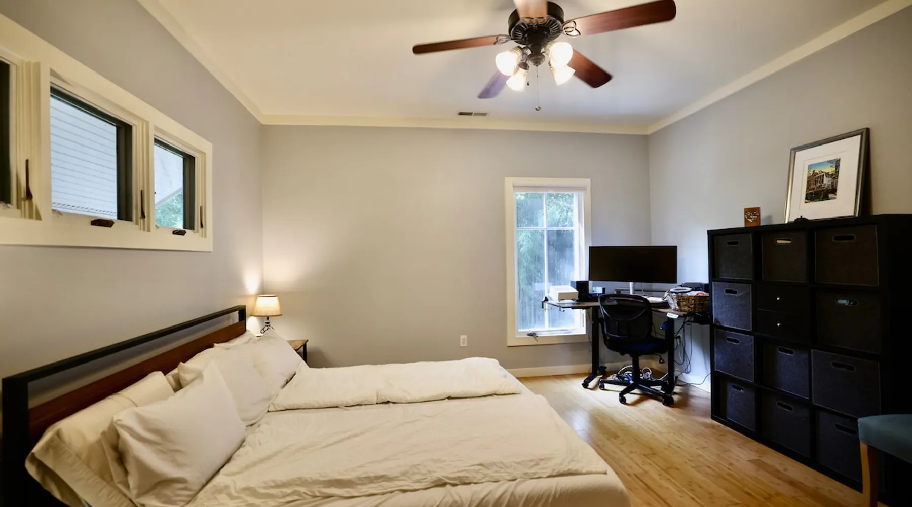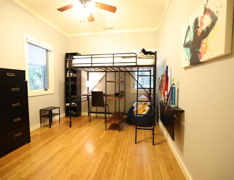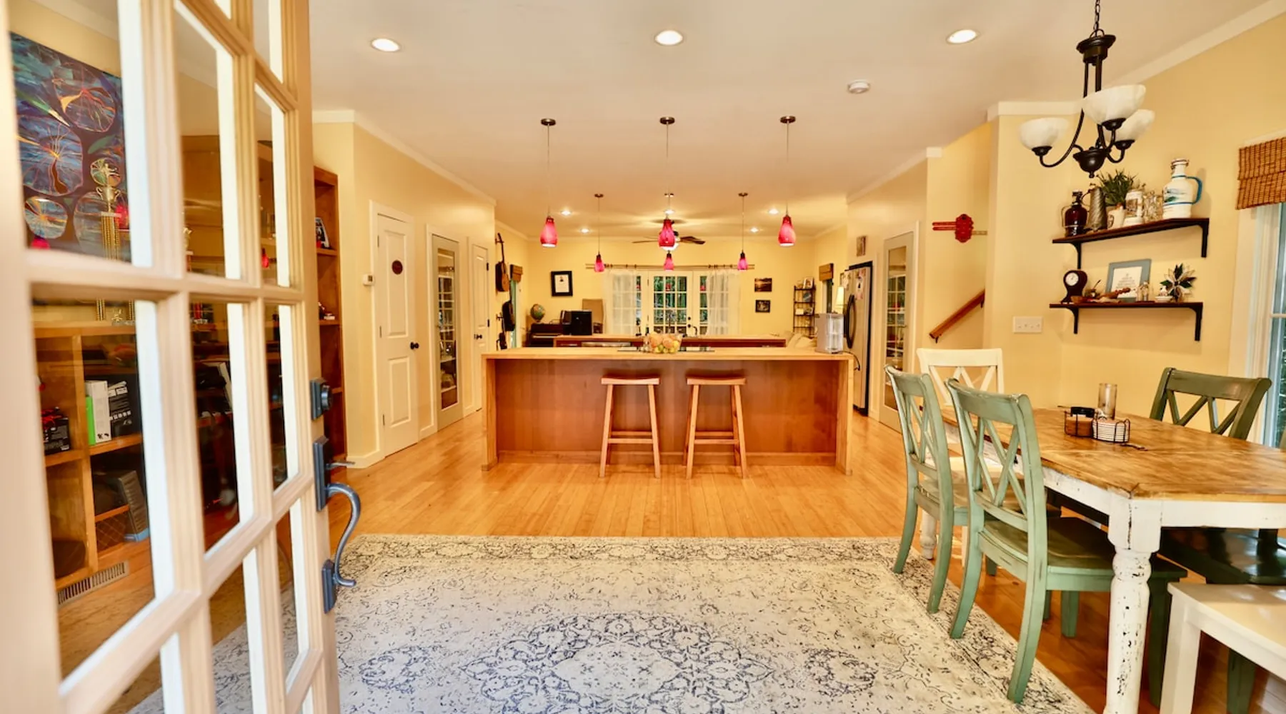 Welcome to our serene, family-oriented neighborhood! Experience privacy in our stunning modern home, which has an open floor plan ideal for family gatherings. Abundant windows fill the space with natural light. Surrounded by bamboo, the back porch offers a secluded spot for your morning coffee or after-work glass of wine. Enjoy this tranquil oasis just seven minutes from downtown Asheville. The space Discover the charm of our inviting two-story home, perfect for your family. The sunlit open first floor fosters connection and ample space for everyone. Upstairs, three bedrooms and two bathrooms provide privacy with comfortable beds. Outside, the spacious and private area offers ample parking, alfresco dining, and a designated workout space. Experience comfort and room to spread out! Guest access Welcome to our spacious three-bedroom home! While the primary bedroom's closet and our private holiday items in the attic are reserved, the remainder of this delightful house is at your disposal. Explore the stocked pantry and enjoy the starter kit of kitchen, laundry, and cleaning supplies. Additionally, inquire in advance to access the outdoor cold plunge tub—an added amenity for your group. We look forward to ensuring your stay is both comfortable and enjoyable. Other things to note Experience home entertainment on our large living room screen, utilizing our projector for TV access at your convenience. Benefit from our high-speed internet, accommodating multiple streaming devices simultaneously without any issues—perfect for gaming enthusiasts, as our teen can attest to never facing slow internet problems. The bedrooms are all upstairs. You must be able to climb stairs to enter the home and access the bedrooms. Our private yard isn't fenced; if you bring your beloved family dog, we suggest a long leash line.