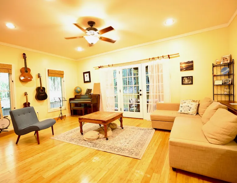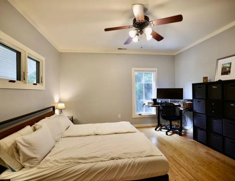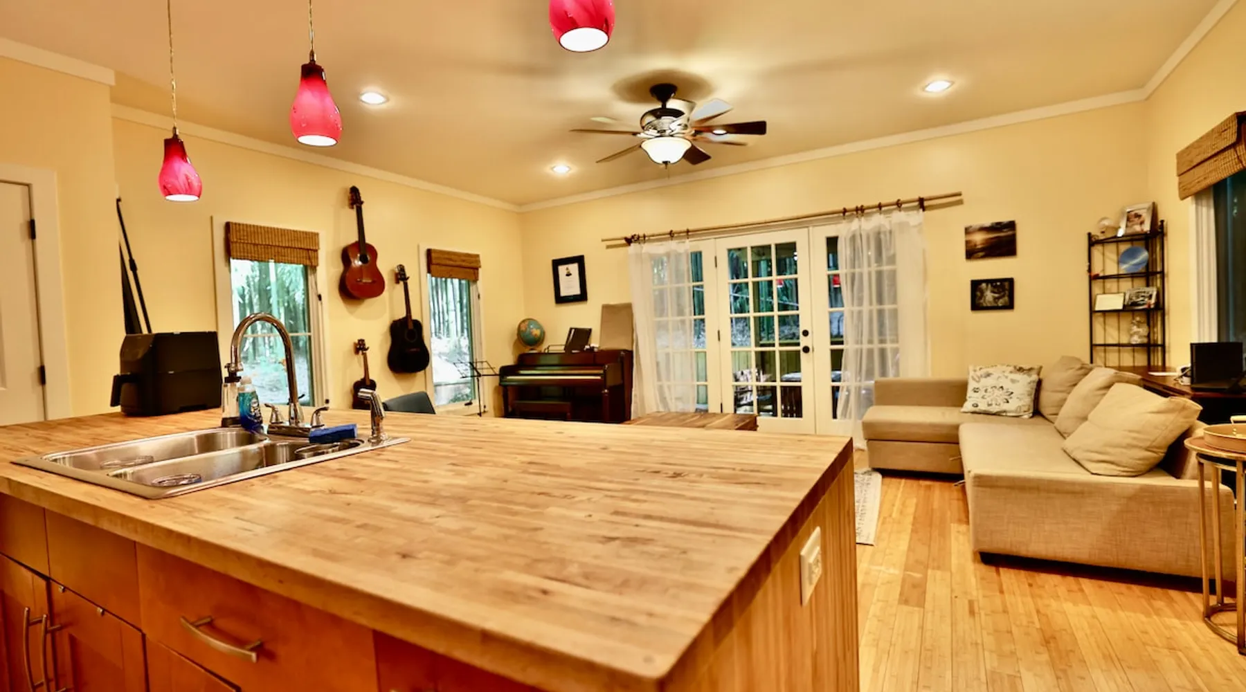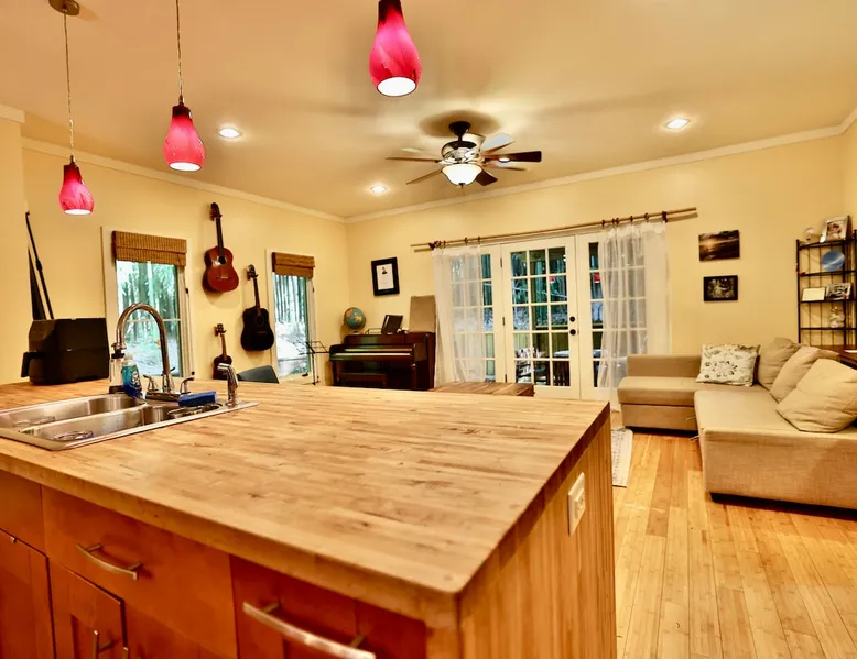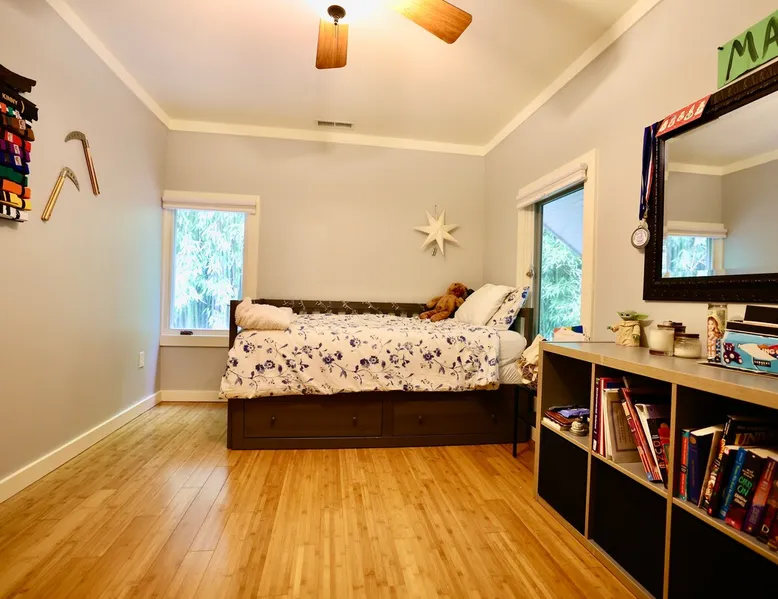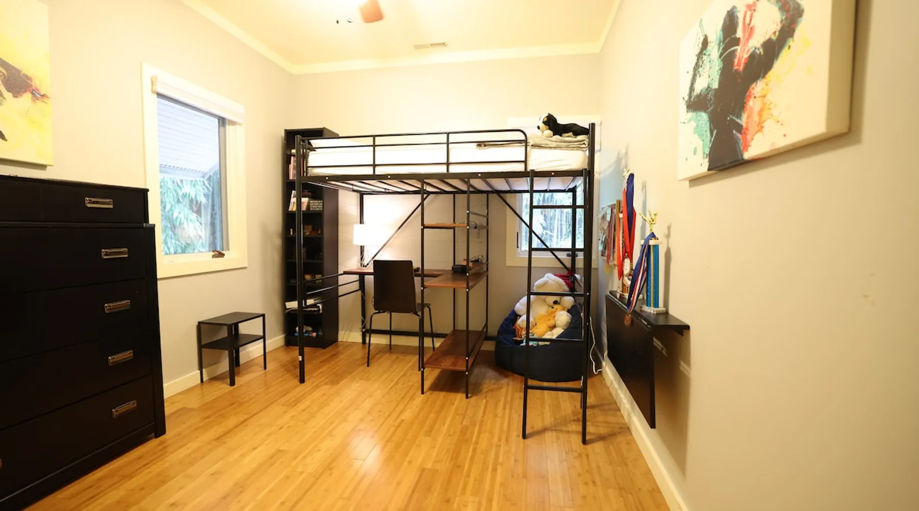Welcome to our serene, family-oriented neighborhood! Experience privacy in our stunning modern home, which has an open floor plan ideal for family gatherings. Abundant windows fill the space with natural light. Surrounded by bamboo, the back porch offers a secluded spot for your morning coffee or after-work glass of wine. Enjoy this tranquil oasis just seven minutes from downtown Asheville. The space Discover the charm of our inviting two-story home, perfect for your family. The sunlit open first floor fosters connection and ample space for everyone. Upstairs, three bedrooms and two bathrooms provide privacy with comfortable beds. Outside, the spacious and private area offers ample parking, alfresco dining, and a designated workout space. Experience comfort and room to spread out! Guest access Welcome to our spacious three-bedroom home! While the primary bedroom's closet and our private holiday items in the attic are reserved, the remainder of this delightful house is at your disposal. Explore the stocked pantry and enjoy the starter kit of kitchen, laundry, and cleaning supplies. Additionally, inquire in advance to access the outdoor cold plunge tub—an added amenity for your group. We look forward to ensuring your stay is both comfortable and enjoyable. Other things to note Experience home entertainment on our large living room screen, utilizing our projector for TV access at your convenience. Benefit from our high-speed internet, accommodating multiple streaming devices simultaneously without any issues—perfect for gaming enthusiasts, as our teen can attest to never facing slow internet problems. The bedrooms are all upstairs. You must be able to climb stairs to enter the home and access the bedrooms. Our private yard isn't fenced; if you bring your beloved family dog, we suggest a long leash line.