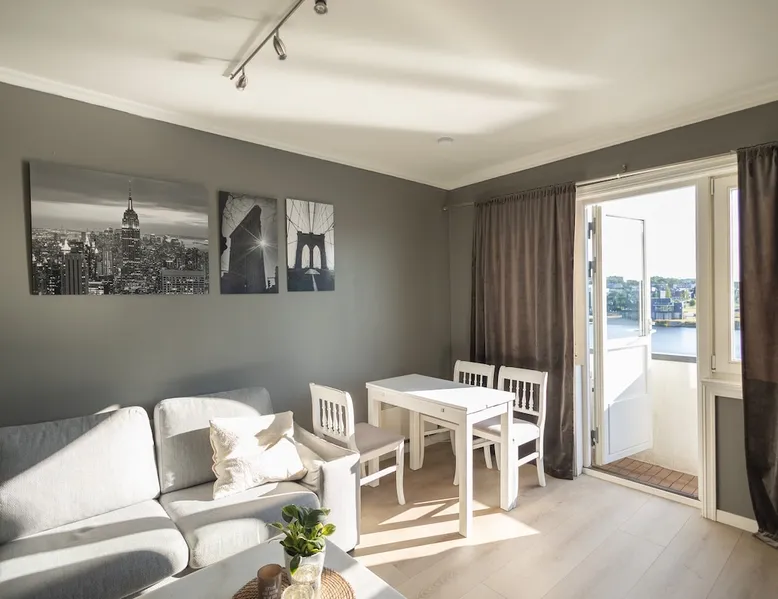 Central location with short distance to everything Kristiansand has to offer. From the top floor you have great views of Otra and Lund. Walking distance to the city beach, Markens, Odderøya and Baneheia. About 15 minutes by car to the zoo and Sørlandssenteret. Parking possibility for a fee on the outside of the building. Apartment is equipped with bathroom, living room, kitchen, balcony and one bedroom. Bedroom has a double bed, room for 2. In case of emergency, the sofa can be used to sleep on, but it is not recommended.