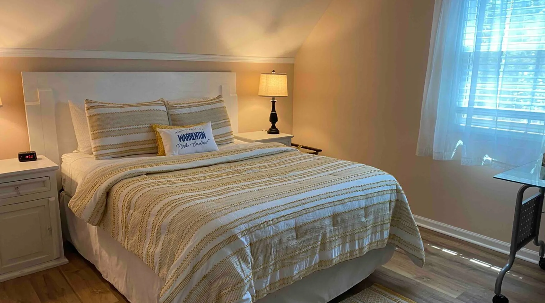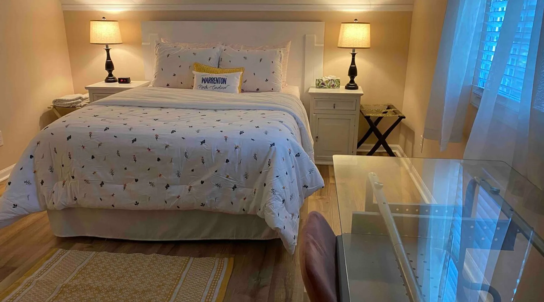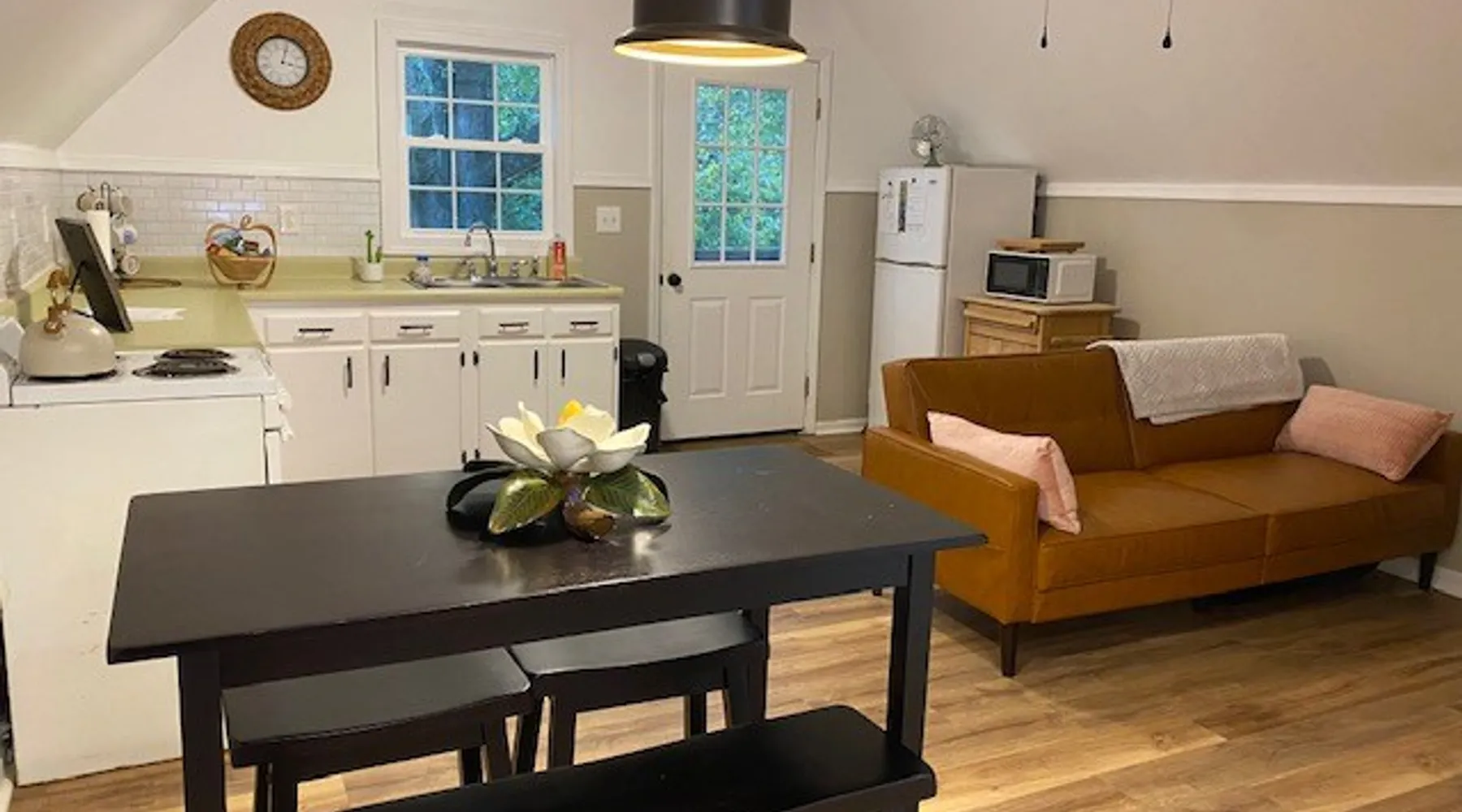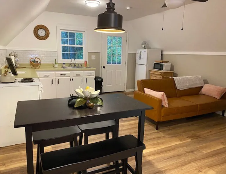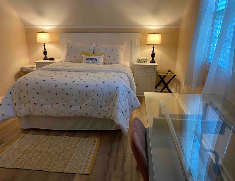 Charming historic neighborhood setting within walking distance of Lake Gaston Coffee, Locorum Distillery, Bragging Rooster, and other great downtown Warrenton sights! This 2nd floor loft apartment is private, spacious, and overlooks beautiful flower gardens. Enjoy the spacious modern interiors and central location for seeing the beautiful quaint town of Warrenton! The space The Garden Loft is a 2nd floor guest apartment overlooking our beautiful flower garden. Cozy space with free street parking and private entrance. Small kitchen, desk area, bathroom, and spacious bedroom! Sleeps two adults comfortably, can sleep two more adults with use of Queen size air mattress (available upon request for an additional charge of $75) with a full-size futon in the living room. Let us know if you're bringing little ones - we can provide a Pack N Play upon request. If you are using our Pack N Play, we do not provide a sheet so please plan to bring your own. Guest access The Garden Loft is an entire one bedroom guest apartment on the 2nd floor above our detached garage in the backyard of the historic Ford Cottage (circa 1850s).