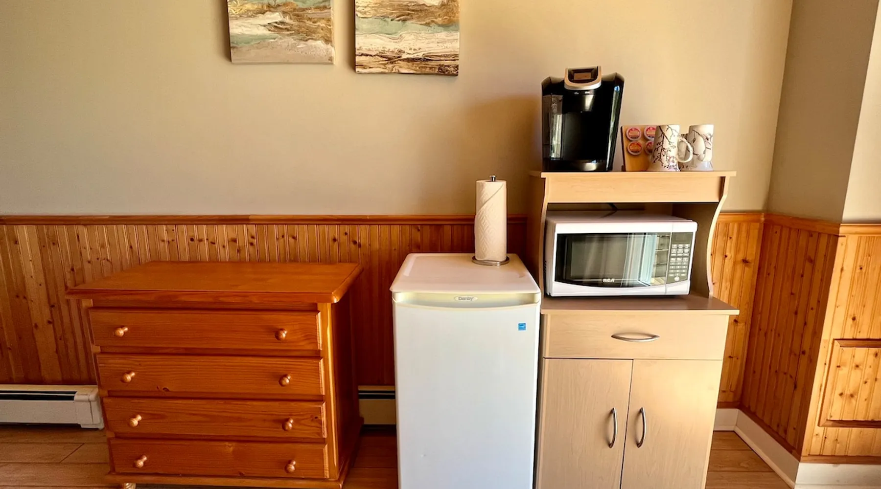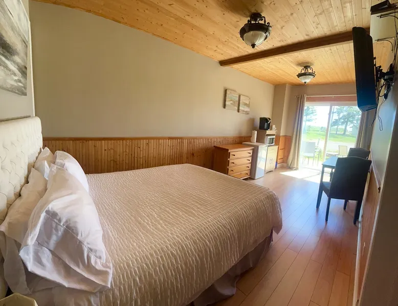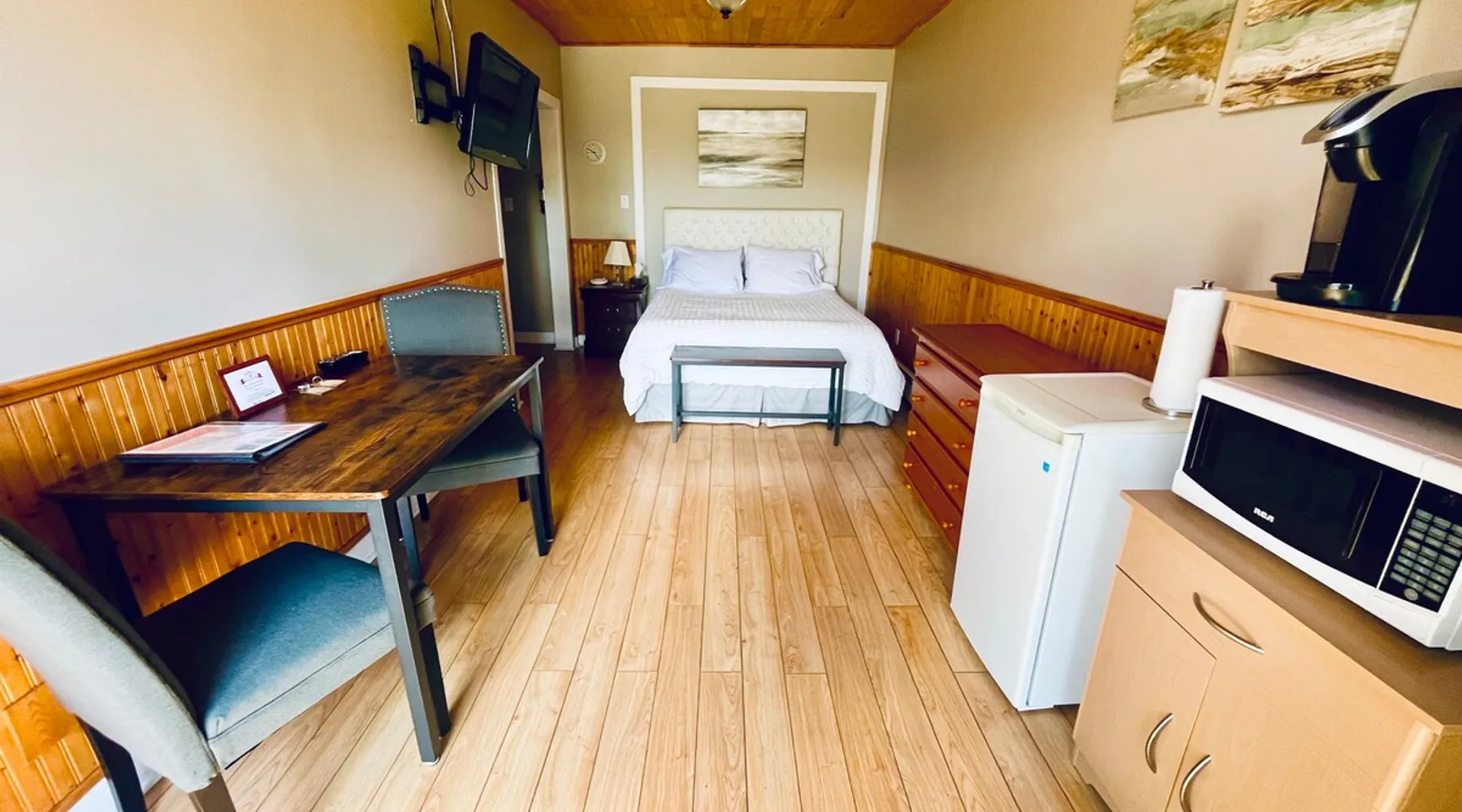 The Scallop Bed - A single bedroom unit at Alma Shore Lane Suites & Cottages that features a queen bed, kitchenette with mini fridge, microwave, coffee and tea. It has a small dining area as well as a flat screen tv with satellite channels and free wifi. The bathroom has a stand up shower. Other things to note Alma Shore Lane is located just 1/2 a kilometre from the entrance to Fundy National Park. Fundy Park offers a variety of activities all year round. In the spring, and fall park visitors enjoy various hiking and biking trails, the golf course, and may playgrounds. Additionally in the summer months the heated salt water pool is open, there are boat, paddle board and water bike rentals at Bennett lake, as well as equipment rentals for soccer, lawn bowling, tennis and more. In the winter months some of the trails are groomed for cross country skiing, snowshoeing, and fat bikes. Other Local Attractions include (May - September) Hopewell Rocks - 35 minute drive on the 114 towards Moncton Cape Enrage - 25 minute drive on the scenic route 915 Fresh Air Adventures - Bay of Fundy Kayak Tours - 5 minute walk Alma has direct access to the NBSFC snowmobile trail system in the winter months and NBATVF - All Terrain Vehicle trails Spring through Fall.