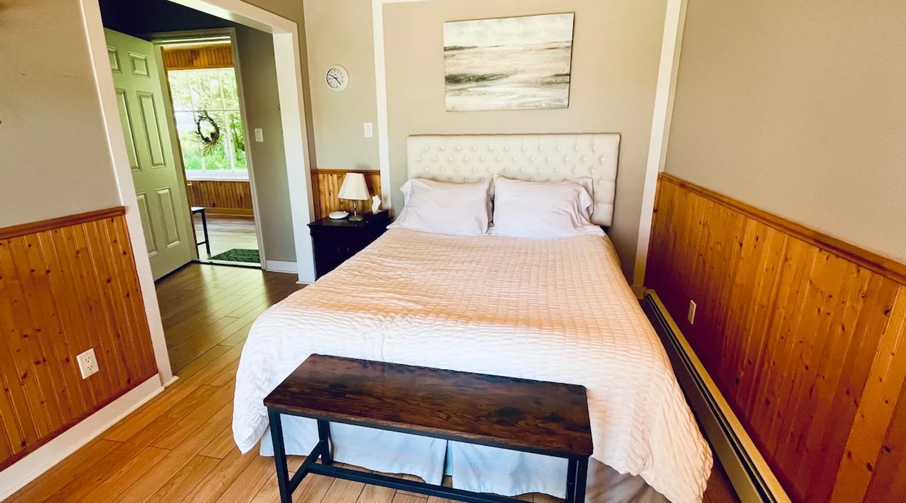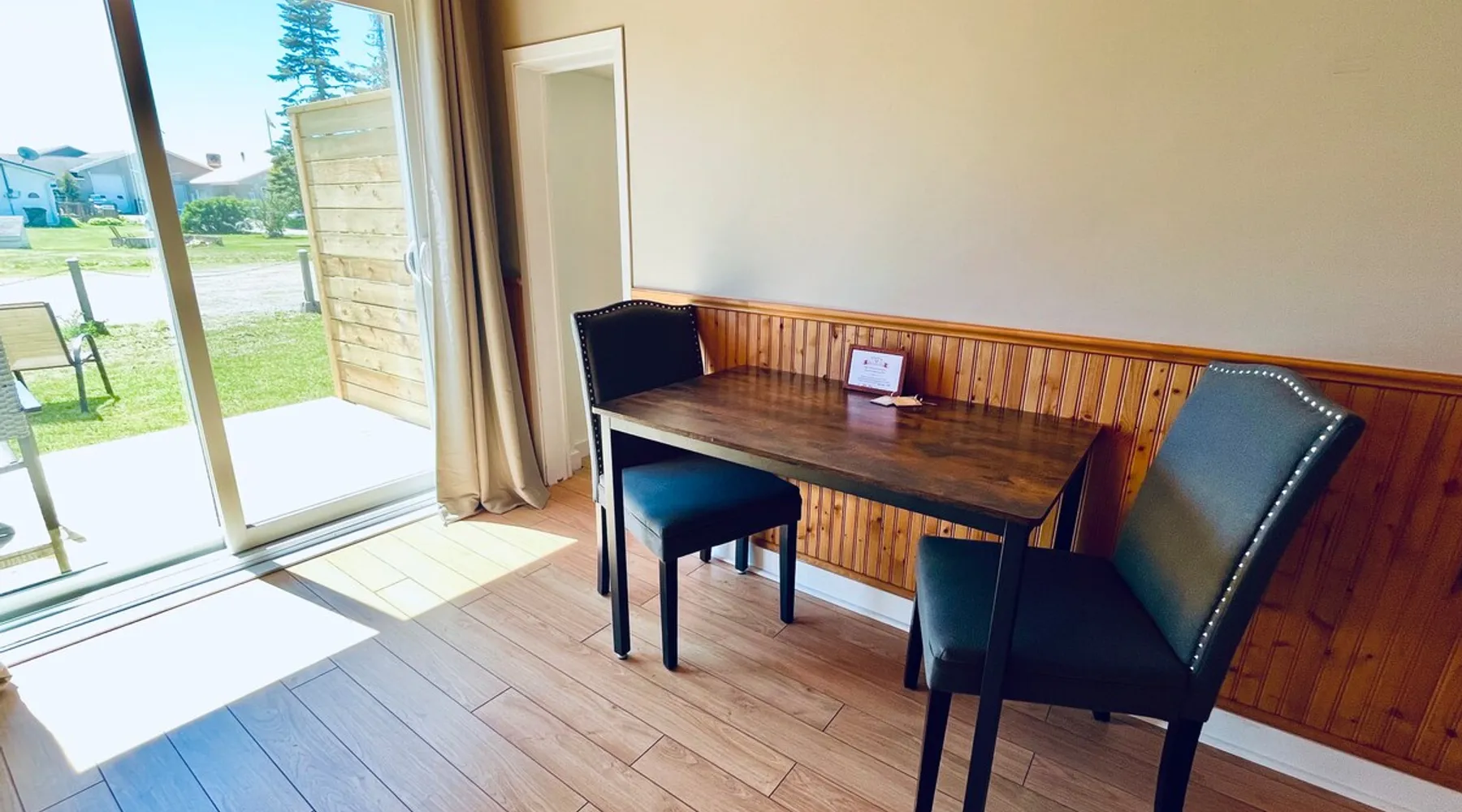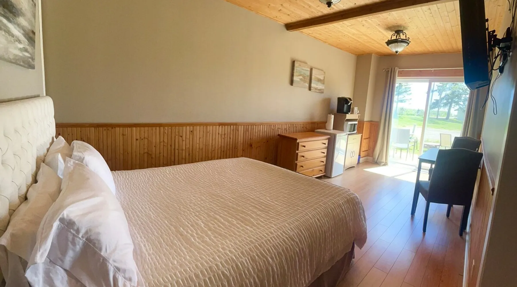 The Scallop Bed - A single bedroom unit at Alma Shore Lane Suites & Cottages that features a queen bed, kitchenette with mini fridge, microwave, coffee and tea. It has a small dining area as well as a flat screen tv with satellite channels and free wifi. The bathroom has a stand up shower. Other things to note Alma Shore Lane is located just 1/2 a kilometre from the entrance to Fundy National Park. Fundy Park offers a variety of activities all year round. In the spring, and fall park visitors enjoy various hiking and biking trails, the golf course, and may playgrounds. Additionally in the summer months the heated salt water pool is open, there are boat, paddle board and water bike rentals at Bennett lake, as well as equipment rentals for soccer, lawn bowling, tennis and more. In the winter months some of the trails are groomed for cross country skiing, snowshoeing, and fat bikes. Other Local Attractions include (May - September) Hopewell Rocks - 35 minute drive on the 114 towards Moncton Cape Enrage - 25 minute drive on the scenic route 915 Fresh Air Adventures - Bay of Fundy Kayak Tours - 5 minute walk Alma has direct access to the NBSFC snowmobile trail system in the winter months and NBATVF - All Terrain Vehicle trails Spring through Fall.