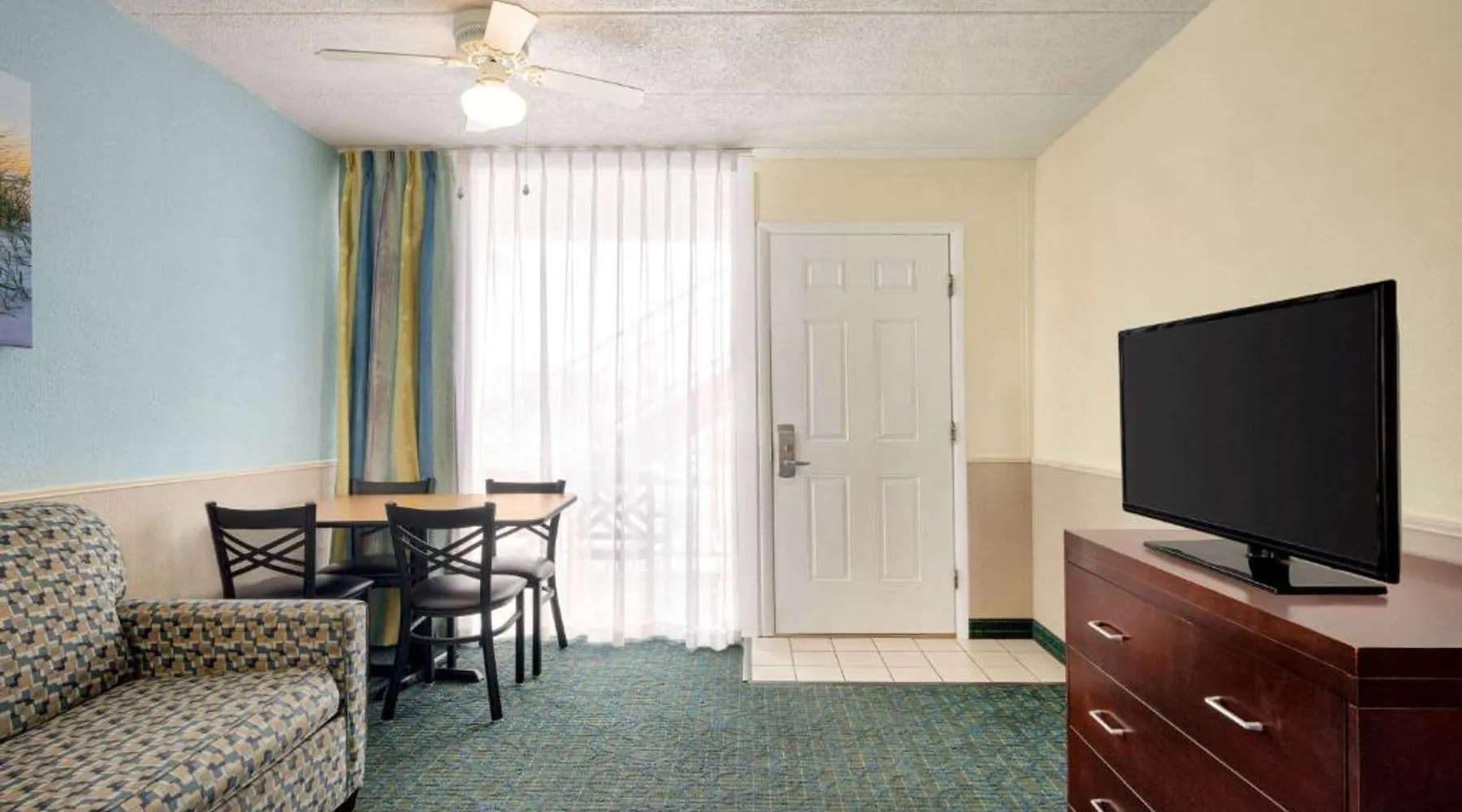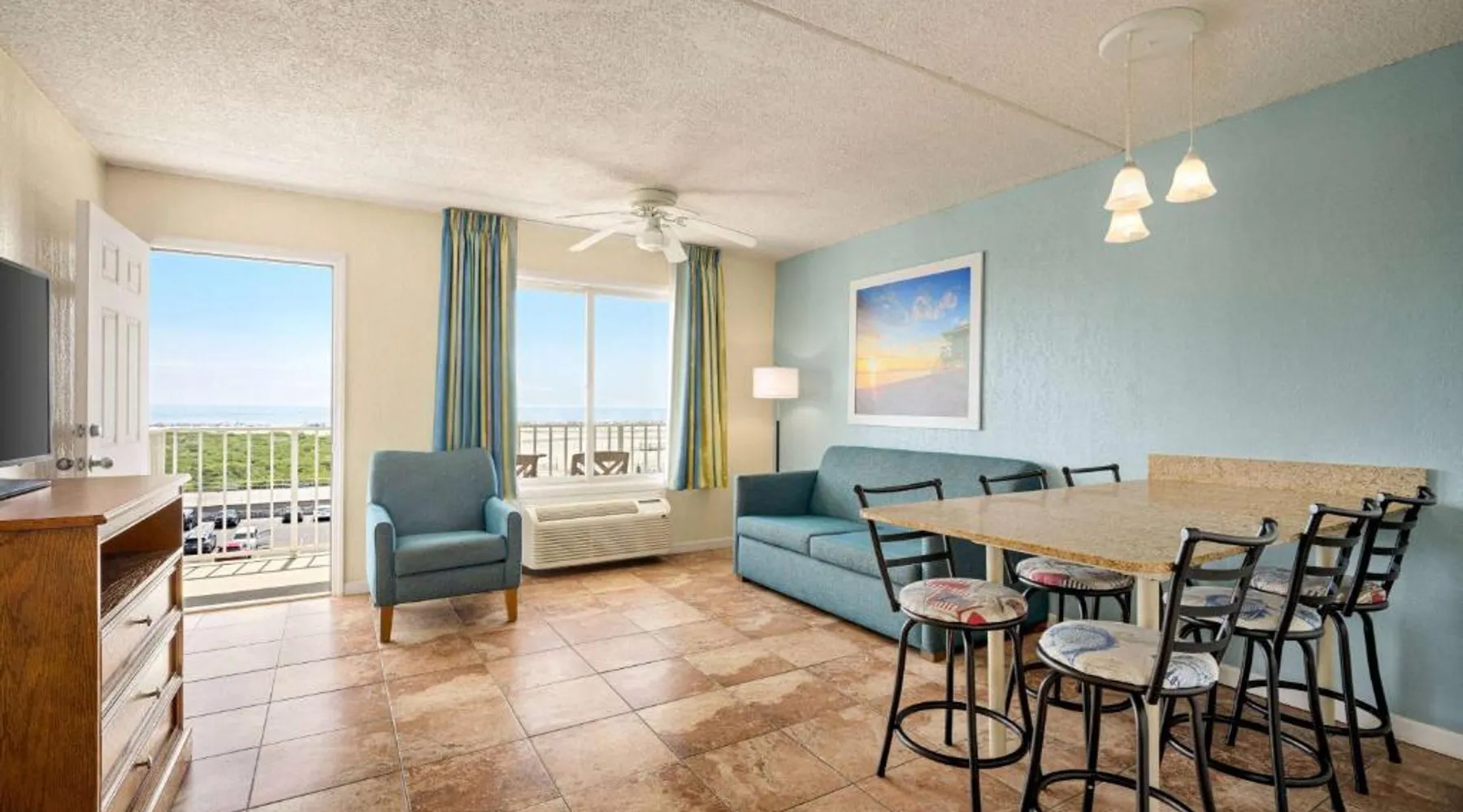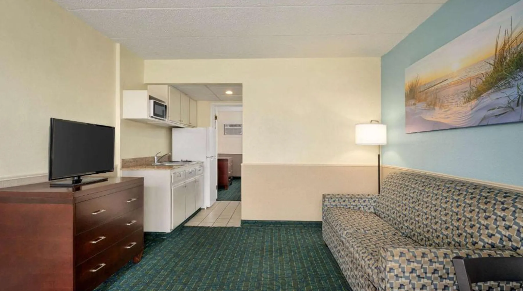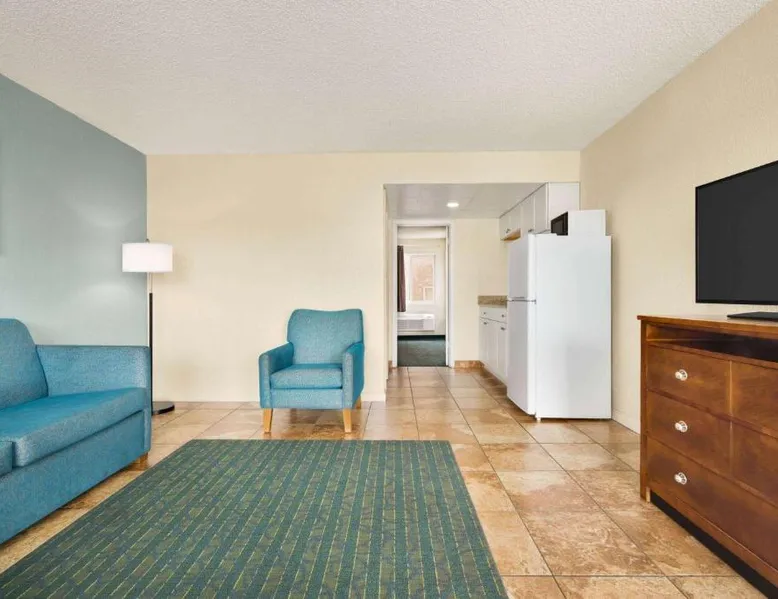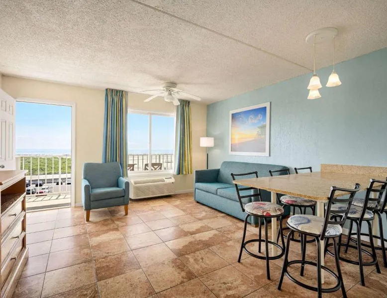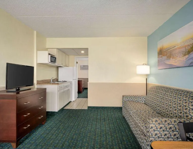 Conveniently located opposite the Wildwood Convention Center and the Wildwood boardwalk, this motel offers free WiFi, 2 heated outdoor pools and rooms with 2 flat-screen cable TVs. All rooms at Days Inn & Suites by Wyndham Wildwood provide a kitchenette with a microwave, refrigerator and a coffee machine. Ironing facilities, an in-room safe and a balcony is included. Select rooms feature ocean views. Free parking is available. A variety of dining options are accessible to guests such as Uncle Bill’s Pancake House, Bandannas Mexican Grille and Urie’s Waterfront Restaurant which serve seafood entrees are all within 5 minutes’ walk away. Splash Zone Waterpark is 11 minutes’ walk away. Hereford Inlet Lighthouse is 2.5 mi from the motel. This suite consists of 1 living room, 2 separate bedrooms and 2 bathrooms with a bath and free toiletries. The well-fitted kitchenette features a stovetop, a refrigerator, a microwave and a toaster. This air-conditioned suite includes a dining area, a TV with cable channels a tea and coffee maker and a balcony. The unit offers 4 beds.