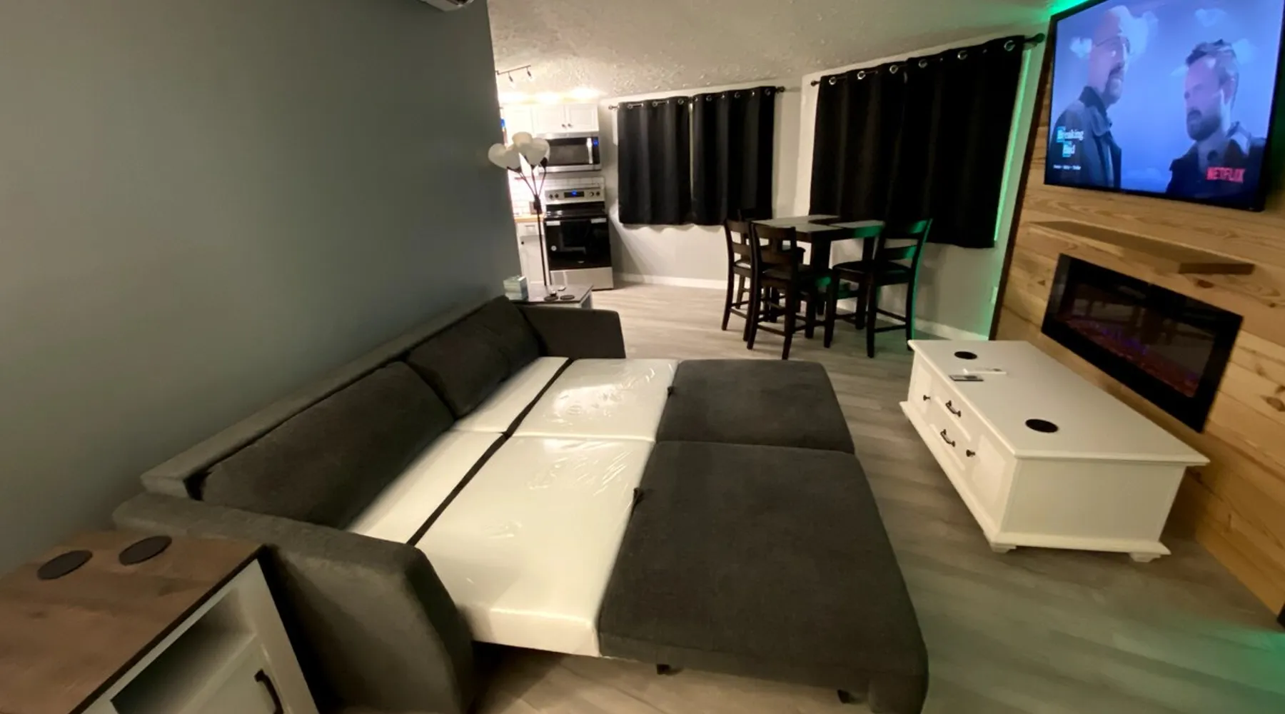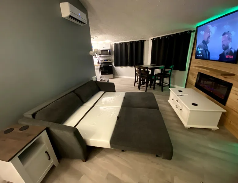 Riverfront Roundhouse is a 1 bedroom, 1 bath cabin on the Watauga river. It is located in the Mill Ridge community between Banner Elk and Boone, NC. There is also a king size sofa bed. You will have all the comfort of modern amenities (internet, 65” Roku TV, Netflix, full kitchen, coffee maker) but retaining the mountian cabin feel. From the rear deck you can enjoy the Watauga River. Minimum age to rent place is 25 unless guest has good reviews from other hosts.