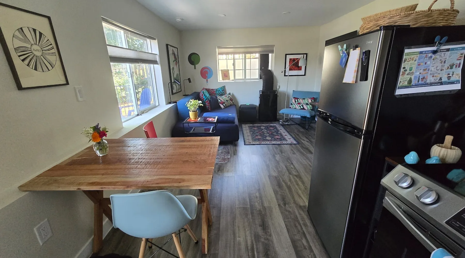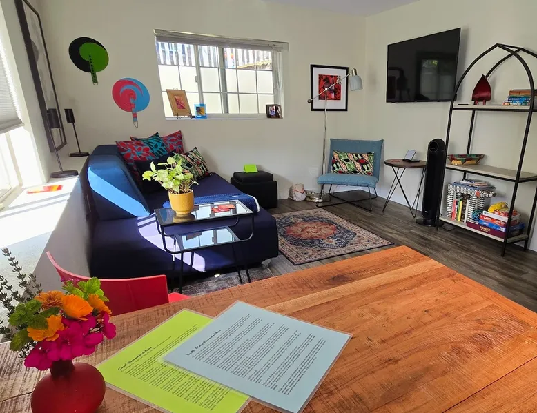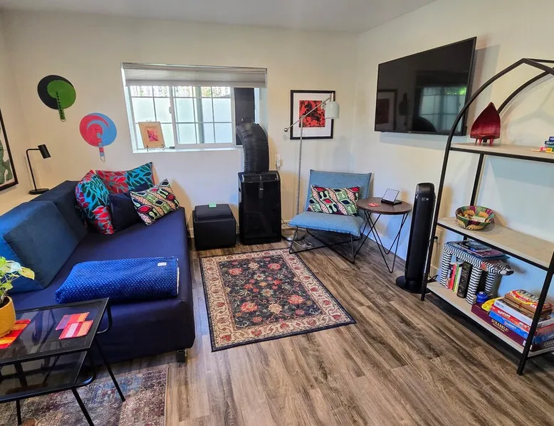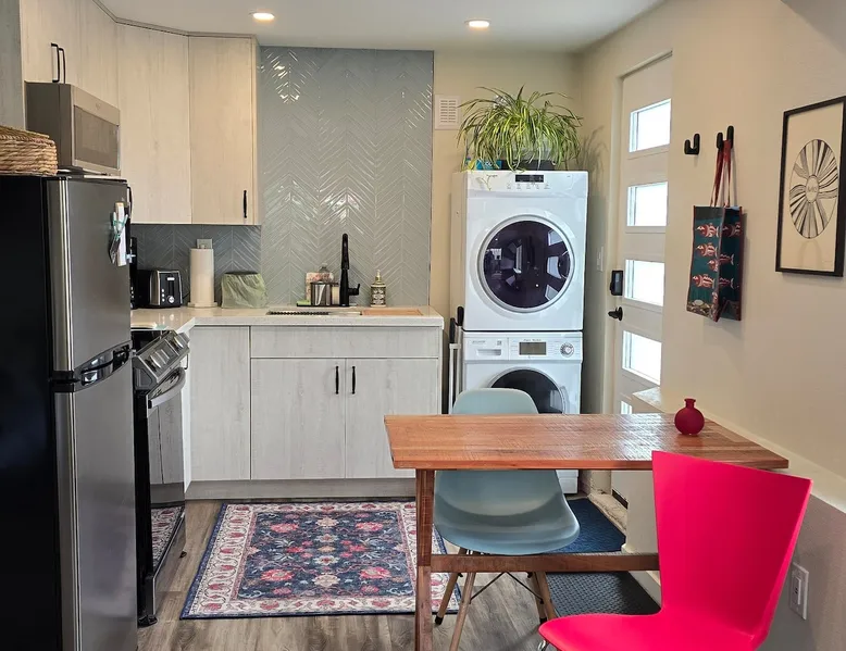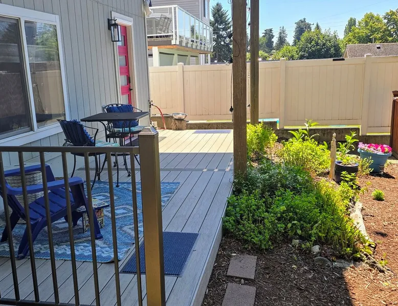 We are thrilled to welcome guests to our urban oasis, centrally located in one of Seattle’s most vibrant and diverse neighborhoods. We offer a peaceful neighborhood vibe and easy connection via bus, light rail or car to the sports stadiums, downtown and all the Seattle sights and sounds. We are also the perfect home base for exploring what the rest of the PNW has to offer and a nice, cozy spot for remote work. Our goal is to create a gracious, peaceful and creative environment for our guests. The space Where is it? The apartment is located in the daylight basement of our home and has a completely separate outside entrance. The space itself is about 475 sq ft with a large attached deck adjacent to the backyard garden. The entrance to the space is in the backyard of the house, accessed via 10 concrete steps and a woodchip covered path. Guests with balance or mobility issues may have difficulty with the path and/or stairs. What is is like? The space is brand new with bright, modern fixtures and reflects our colorful global style. There is a large deck overlooking the backyard garden, a fully equipped kitchen, large living area with a dedicated dining/workspace, separate bedroom and large spa-like bathroom. Where do I/we sleep? There is a separate bedroom with a queen size bed, wall mounted TV and closet off of the main living area. 100% cotton linens. The living room sofa also doubles as XXL twin size bed (find linens folded in the black foot stool). We welcome kids and have a pack-n-play and basket of toys, just let us know and we'll leave them for you for you. What else can I expect? Find wall mounted smart TVs in both the living and bedroom and excellent WIFI. The bathroom is spacious with plenty of towels, a hair dryer, shampoo/conditioner/soap and first aid supplies. The kitchen is well stocked with dish, glass and silverware, cooking pots/pans, utensils and essentials for four and coffee supplies to accommodate a variety of brewing styles and fresh coffee beans and teas. There is also a washer/dryer and ironing board and iron for your use. What about my pet/s? If you are traveling with a pet, this is not the place for you. We invite you to find another host who is pet-friendly and welcome you when you are traveling without them. Guest access Parking We reserve the left-hand parking spot in our driveway for guests. Free street parking is also available on Morgan (our cross street). Oasis Entry There is an electronic keypad on the door. We will send you your unique code before you arrive. We also have a physical key available upon request. Please enjoy the backyard garden, snip fresh herbs and enjoy what else is in season. Other things to note Public Transit There are two reloadable Orca transit cards on the fridge. You are welcome to use reload and use them during your stay. Put them back on the fridge before you leave. They are reloadable online, via the app or at any light rail station. Please note: Guests occasionally forget to return the cards, and we aren't able to replace them in time for the next guests. Registration Details STR-OPLI-23-000818