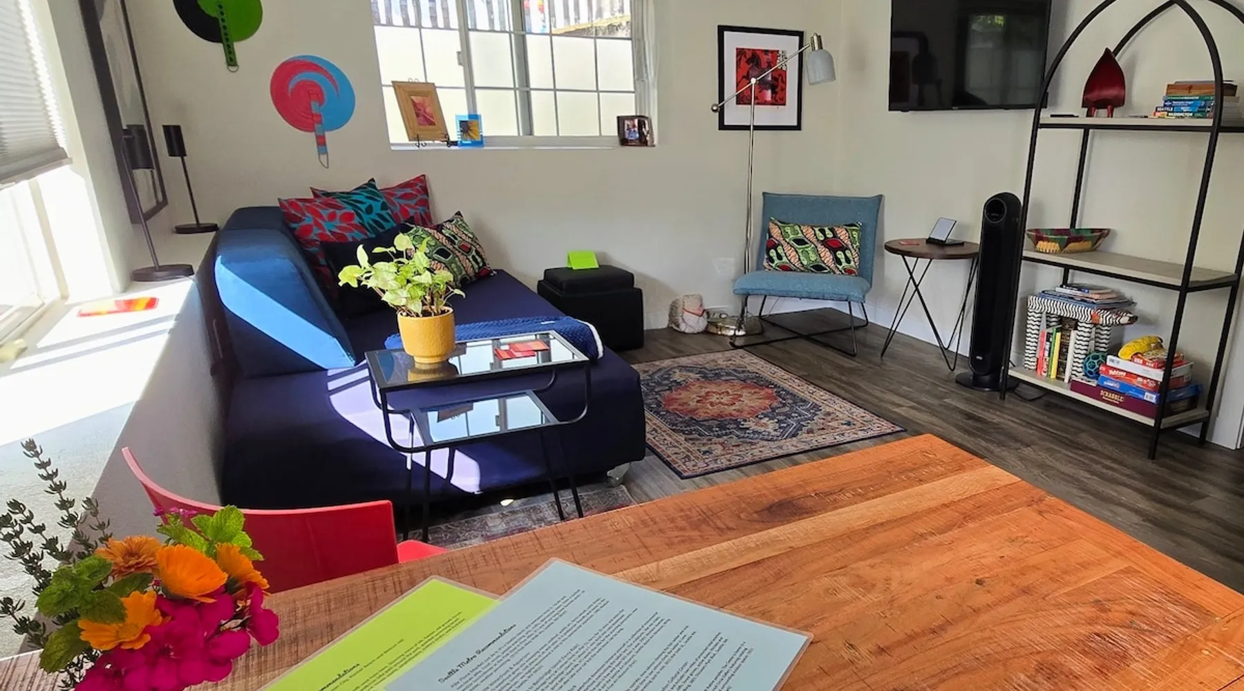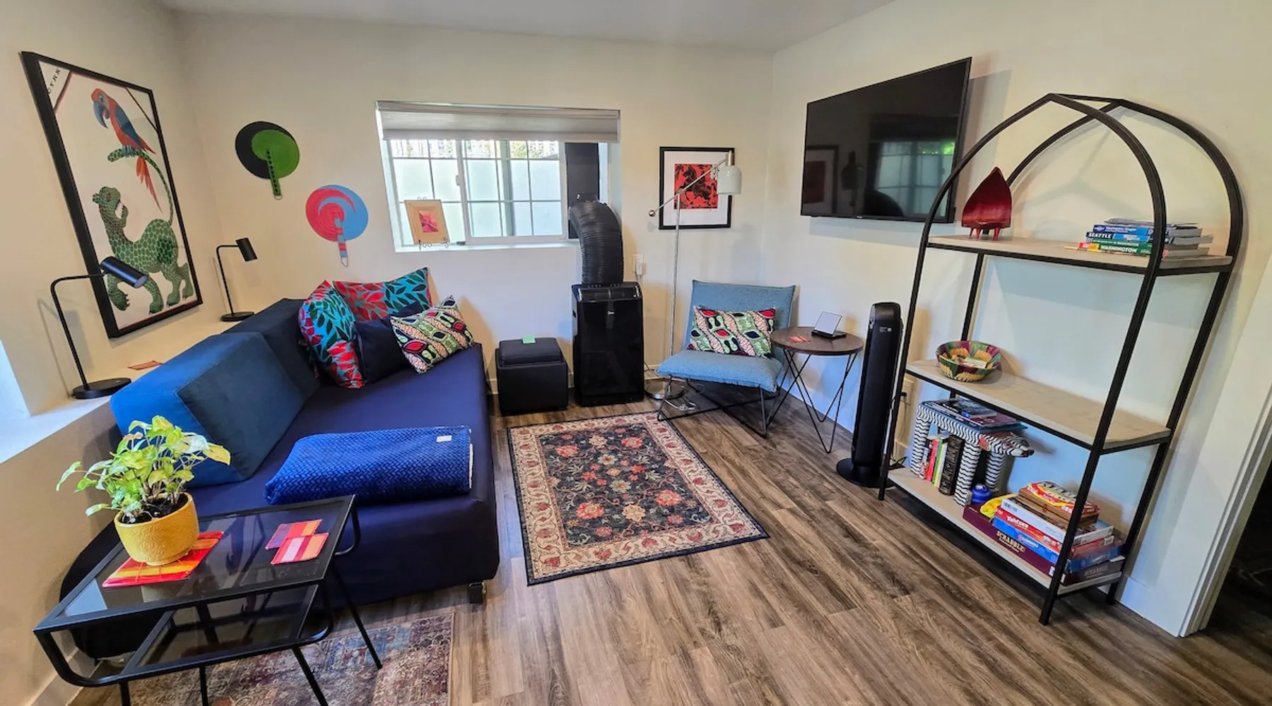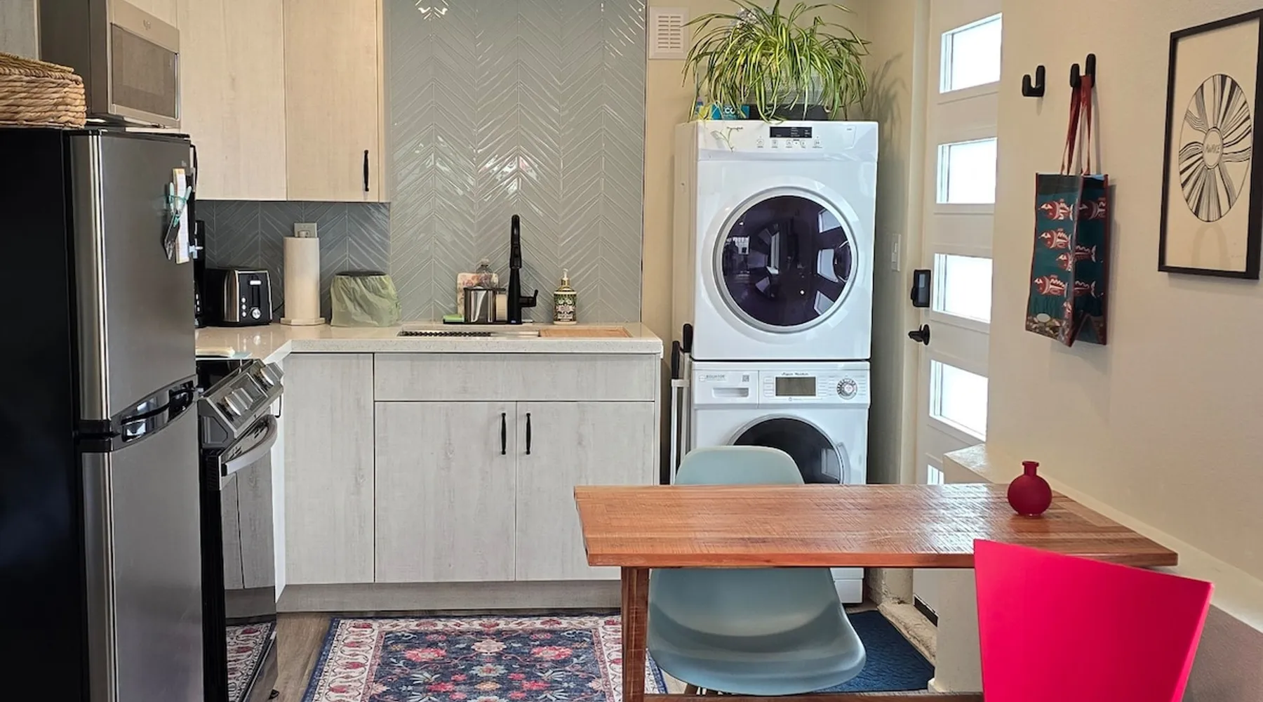 We are thrilled to welcome guests to our urban oasis, centrally located in one of Seattle’s most vibrant and diverse neighborhoods. We offer a peaceful neighborhood vibe and easy connection via bus, light rail or car to the sports stadiums, downtown and all the Seattle sights and sounds. We are also the perfect home base for exploring what the rest of the PNW has to offer and a nice, cozy spot for remote work. Our goal is to create a gracious, peaceful and creative environment for our guests. The space Where is it? The apartment is located in the daylight basement of our home and has a completely separate outside entrance. The space itself is about 475 sq ft with a large attached deck adjacent to the backyard garden. The entrance to the space is in the backyard of the house, accessed via 10 concrete steps and a woodchip covered path. Guests with balance or mobility issues may have difficulty with the path and/or stairs. What is is like? The space is brand new with bright, modern fixtures and reflects our colorful global style. There is a large deck overlooking the backyard garden, a fully equipped kitchen, large living area with a dedicated dining/workspace, separate bedroom and large spa-like bathroom. Where do I/we sleep? There is a separate bedroom with a queen size bed, wall mounted TV and closet off of the main living area. 100% cotton linens. The living room sofa also doubles as XXL twin size bed (find linens folded in the black foot stool). We welcome kids and have a pack-n-play and basket of toys, just let us know and we'll leave them for you for you. What else can I expect? Find wall mounted smart TVs in both the living and bedroom and excellent WIFI. The bathroom is spacious with plenty of towels, a hair dryer, shampoo/conditioner/soap and first aid supplies. The kitchen is well stocked with dish, glass and silverware, cooking pots/pans, utensils and essentials for four and coffee supplies to accommodate a variety of brewing styles and fresh coffee beans and teas. There is also a washer/dryer and ironing board and iron for your use. What about my pet/s? If you are traveling with a pet, this is not the place for you. We invite you to find another host who is pet-friendly and welcome you when you are traveling without them. Guest access Parking We reserve the left-hand parking spot in our driveway for guests. Free street parking is also available on Morgan (our cross street). Oasis Entry There is an electronic keypad on the door. We will send you your unique code before you arrive. We also have a physical key available upon request. Please enjoy the backyard garden, snip fresh herbs and enjoy what else is in season. Other things to note Public Transit There are two reloadable Orca transit cards on the fridge. You are welcome to use reload and use them during your stay. Put them back on the fridge before you leave. They are reloadable online, via the app or at any light rail station. Please note: Guests occasionally forget to return the cards, and we aren't able to replace them in time for the next guests. Registration Details STR-OPLI-23-000818