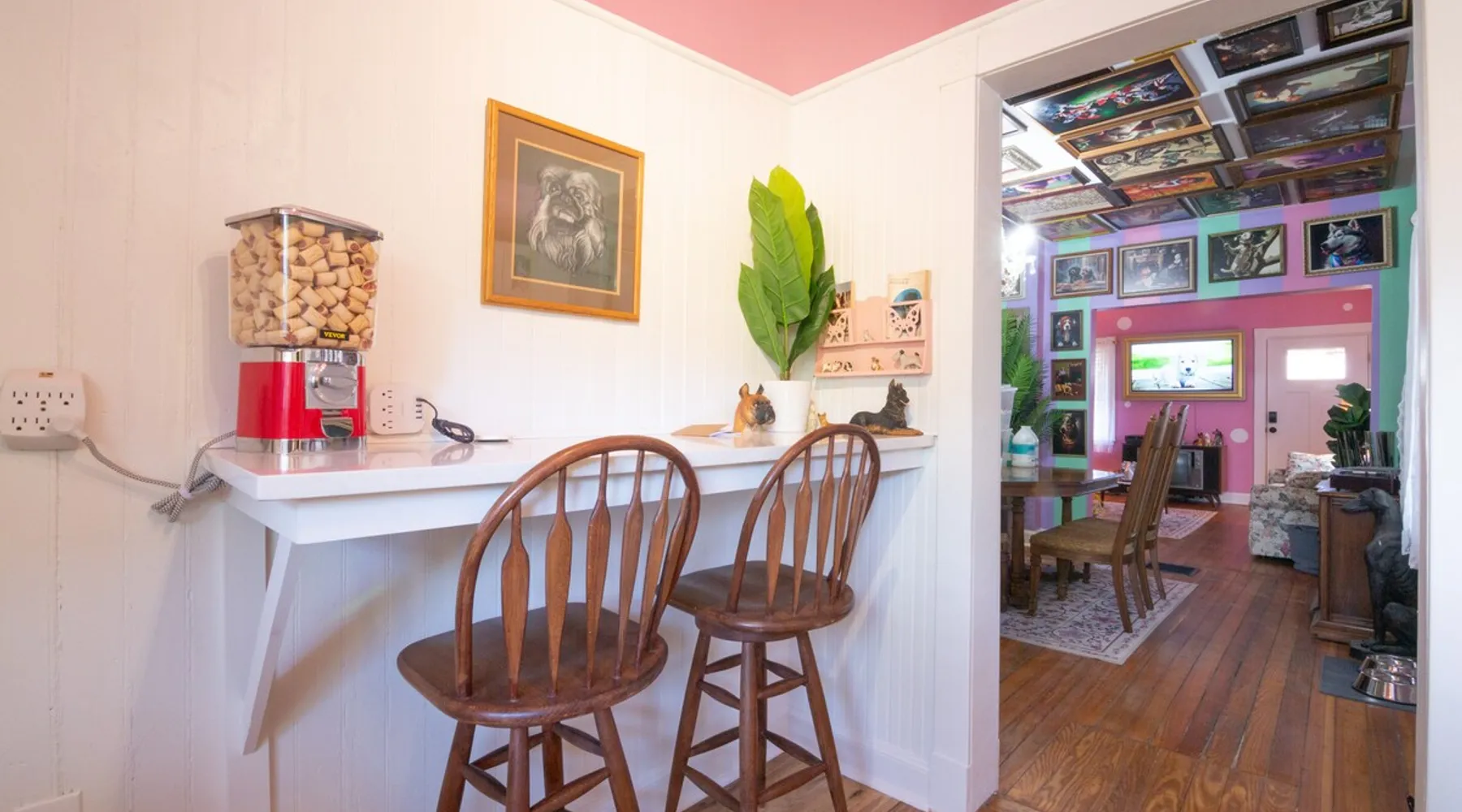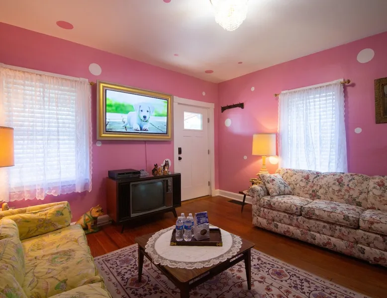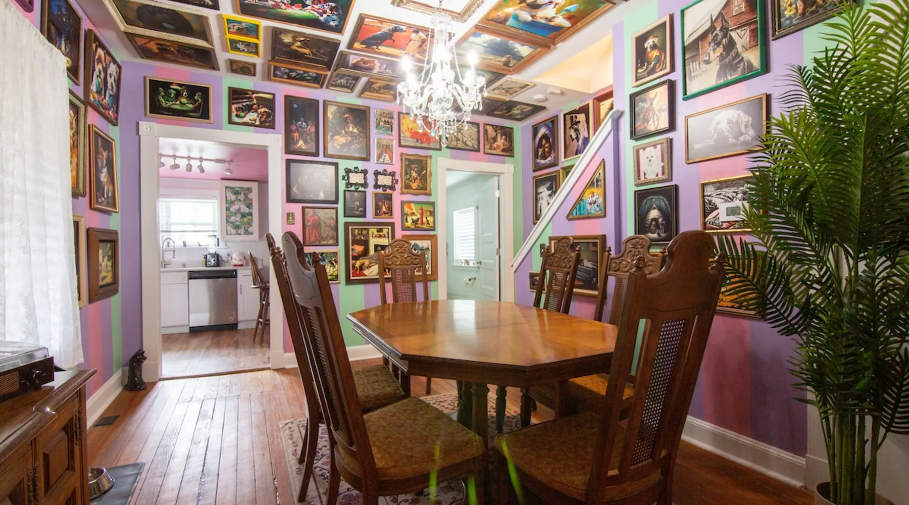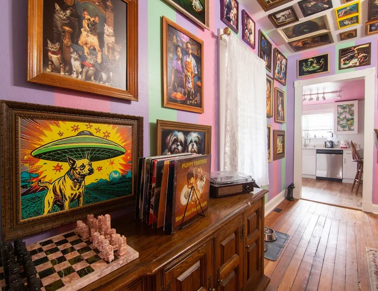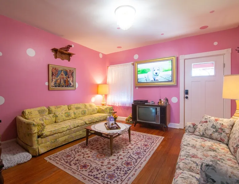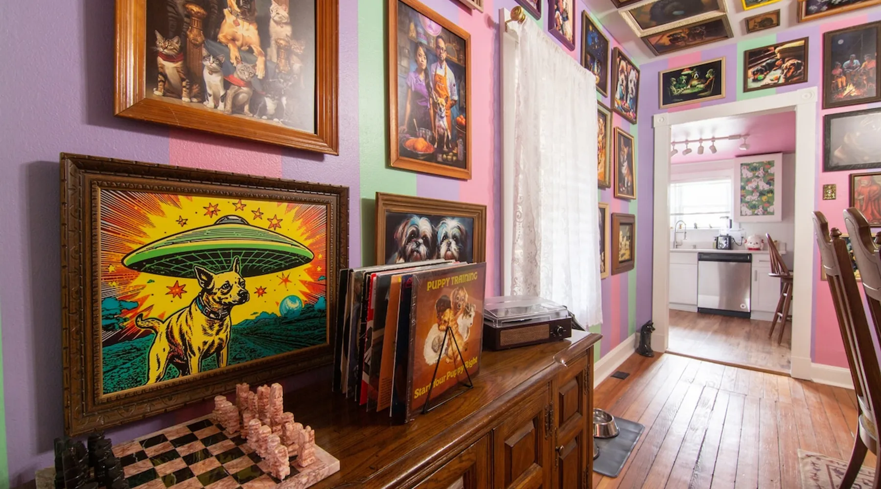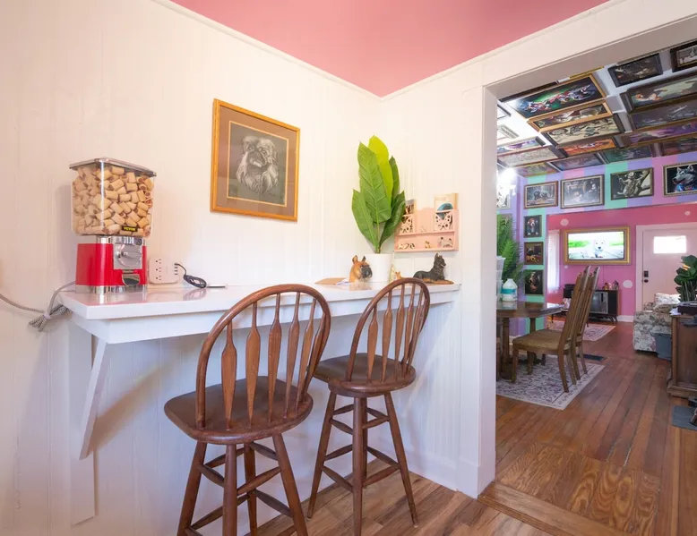 ONE OF A KIND HOUSE - Welcome to Granny's Dog House! This cozy 2BR/1BA retreat, designed for dog lovers, offers a king bed in BR1, two twin beds in BR2, and charming dog-themed décor. Enjoy our fully-equipped kitchen, pristine bathroom, & fenced backyard for your furry friends. Unwind in a lovingly curated home, surrounded by dog photos, sculptures, and the warmth of canine camaraderie. Experience love, laughter, and wagging tails at our house for you and your four-legged family members! The space Welcome to Grandma's Dog House, your cozy and charming home-away-from-home, nestled in the peaceful Tower Grove South neighborhood in south St Louis! Embrace the warmth of a lovingly curated dog-themed retreat, designed especially for dog lovers and their furry companions. Our delightful 2-bedroom, 1-bathroom home boasts a spacious king-size bed in Bedroom 1, perfect for unwinding after a day of adventures. Bedroom 2 is ideal for siblings, friends, or children, with its two comfy twin beds. Both rooms are adorned with a delightful collection of dog pictures and heartwarming dog sculptures, each with their unique story that Grandma would be more than happy to share. As you step into the living area, you'll be greeted by an array of beautifully framed dog photos and charming dog-themed knickknacks, reflecting Grandma's love for her canine friends. Sink into the plush sofa and let the gentle ambiance of our dog-friendly haven envelop you in comfort. Our fully-equipped kitchen is at your disposal, where you can whip up a meal while admiring the adorable dog-inspired décor, from the dog treat vending machine to the dog-shaped cookie jars. Share your culinary creations with your loved ones at the vintage dining table, surrounded by the warmth of family and the joy of canine companionship. The pristine bathroom, stocked with fresh towels and essential toiletries, features even more of grandma’s favorite knickknacks, adding a touch of whimsy to your daily routine. The fenced backyard is a doggy paradise, where your furry friends can frolic and play safely while you and your family make s’mores at the fire pit.. Relax on the patio with a cup of tea, as you marvel at the vibrant flowers and the gentle hum of visiting bees. Grandma's Dog House welcomes all well-behaved dogs with open arms and treats galore. Your stay with us will be a memorable experience, filled with love, laughter, and wagging tails. So, pack your bags and bring yourself to Grandma's Dog House and create everlasting memories for you and your furry family member. Guest access Guests have full access to entire house (except the cleaners area which is located in the basement). Other things to note Our gaming system includes over 6900 retro games from Atari to Playstation.