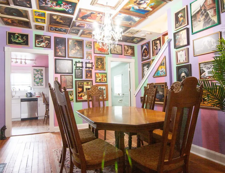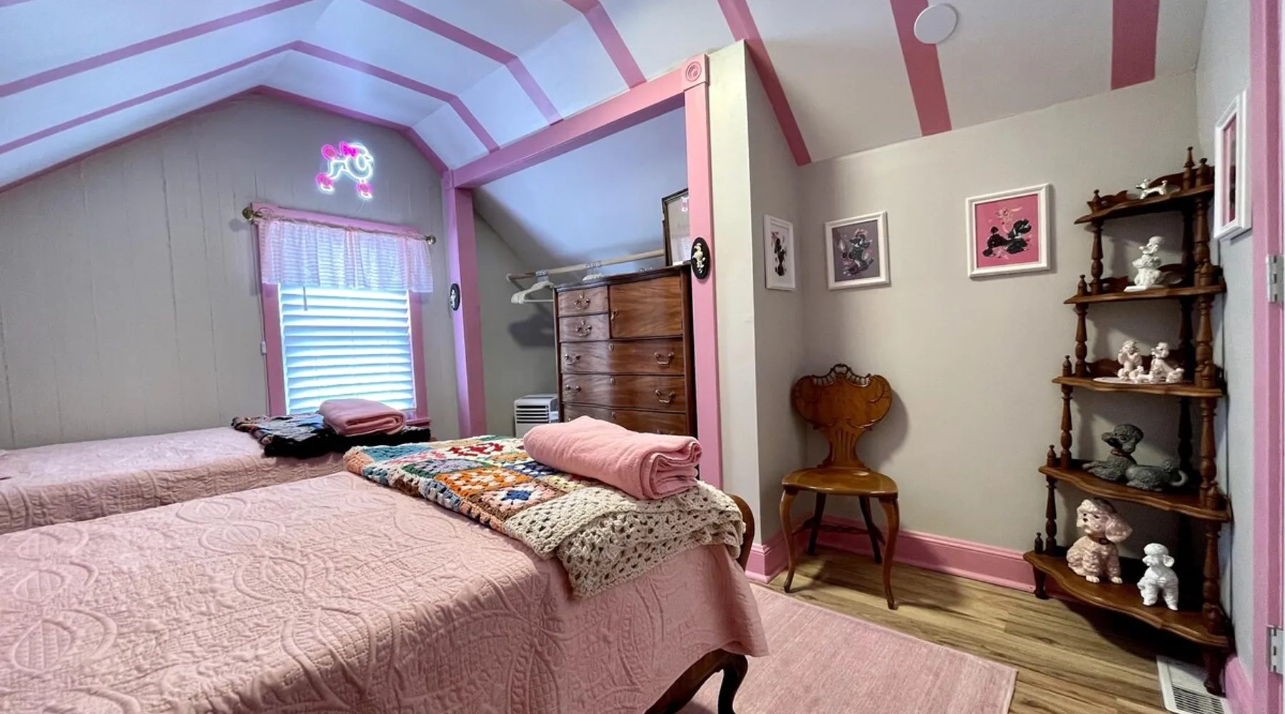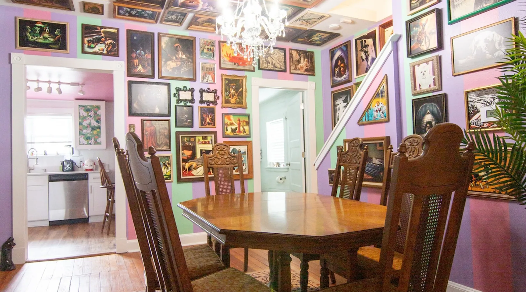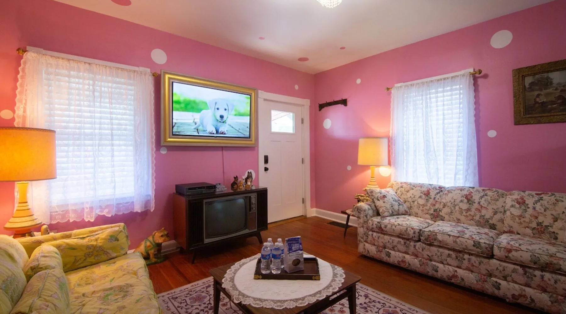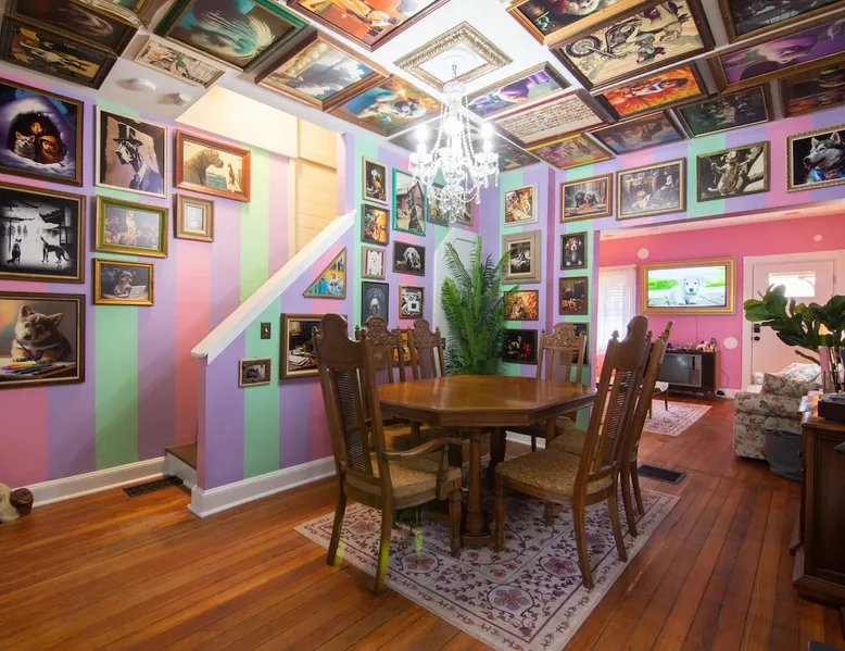 ONE OF A KIND HOUSE - Welcome to Granny's Dog House! This cozy 2BR/1BA retreat, designed for dog lovers, offers a king bed in BR1, two twin beds in BR2, and charming dog-themed décor. Enjoy our fully-equipped kitchen, pristine bathroom, & fenced backyard for your furry friends. Unwind in a lovingly curated home, surrounded by dog photos, sculptures, and the warmth of canine camaraderie. Experience love, laughter, and wagging tails at our house for you and your four-legged family members! The space Welcome to Grandma's Dog House, your cozy and charming home-away-from-home, nestled in the peaceful Tower Grove South neighborhood in south St Louis! Embrace the warmth of a lovingly curated dog-themed retreat, designed especially for dog lovers and their furry companions. Our delightful 2-bedroom, 1-bathroom home boasts a spacious king-size bed in Bedroom 1, perfect for unwinding after a day of adventures. Bedroom 2 is ideal for siblings, friends, or children, with its two comfy twin beds. Both rooms are adorned with a delightful collection of dog pictures and heartwarming dog sculptures, each with their unique story that Grandma would be more than happy to share. As you step into the living area, you'll be greeted by an array of beautifully framed dog photos and charming dog-themed knickknacks, reflecting Grandma's love for her canine friends. Sink into the plush sofa and let the gentle ambiance of our dog-friendly haven envelop you in comfort. Our fully-equipped kitchen is at your disposal, where you can whip up a meal while admiring the adorable dog-inspired décor, from the dog treat vending machine to the dog-shaped cookie jars. Share your culinary creations with your loved ones at the vintage dining table, surrounded by the warmth of family and the joy of canine companionship. The pristine bathroom, stocked with fresh towels and essential toiletries, features even more of grandma’s favorite knickknacks, adding a touch of whimsy to your daily routine. The fenced backyard is a doggy paradise, where your furry friends can frolic and play safely while you and your family make s’mores at the fire pit.. Relax on the patio with a cup of tea, as you marvel at the vibrant flowers and the gentle hum of visiting bees. Grandma's Dog House welcomes all well-behaved dogs with open arms and treats galore. Your stay with us will be a memorable experience, filled with love, laughter, and wagging tails. So, pack your bags and bring yourself to Grandma's Dog House and create everlasting memories for you and your furry family member. Guest access Guests have full access to entire house (except the cleaners area which is located in the basement). Other things to note Our gaming system includes over 6900 retro games from Atari to Playstation.