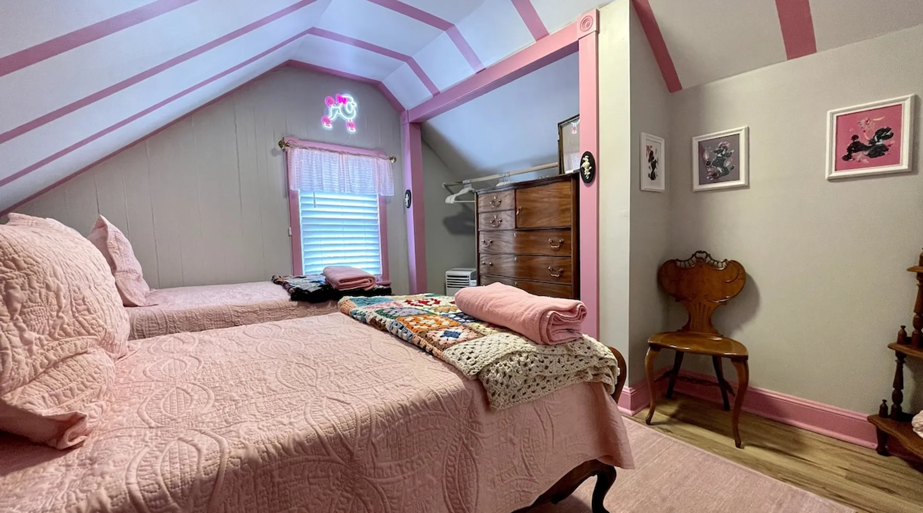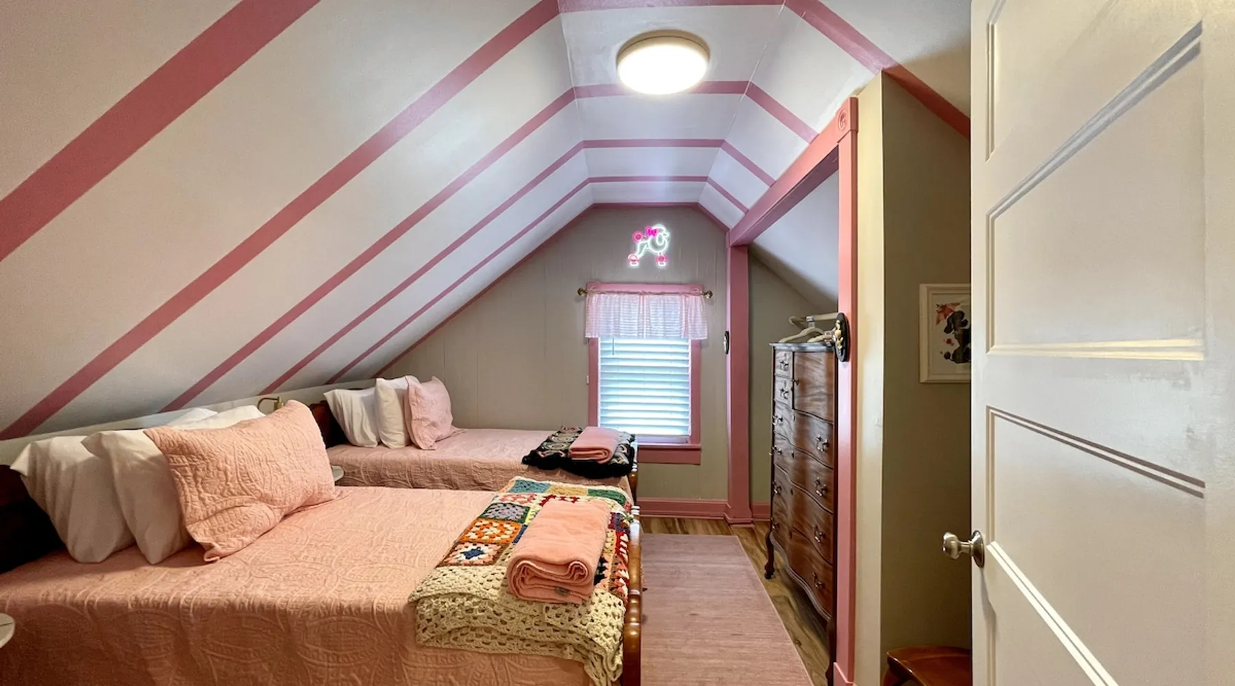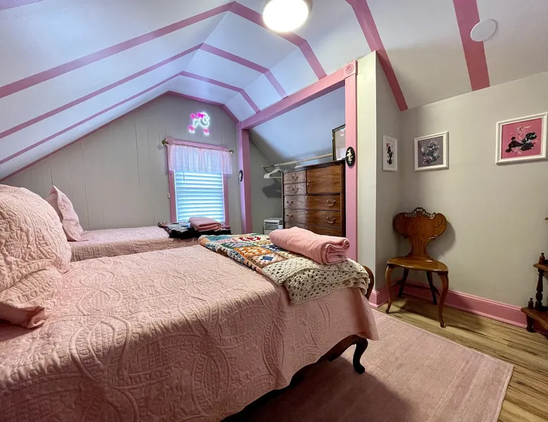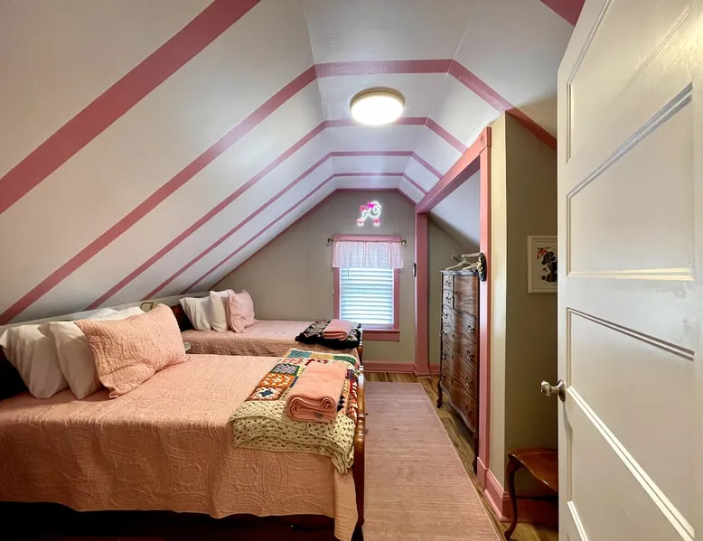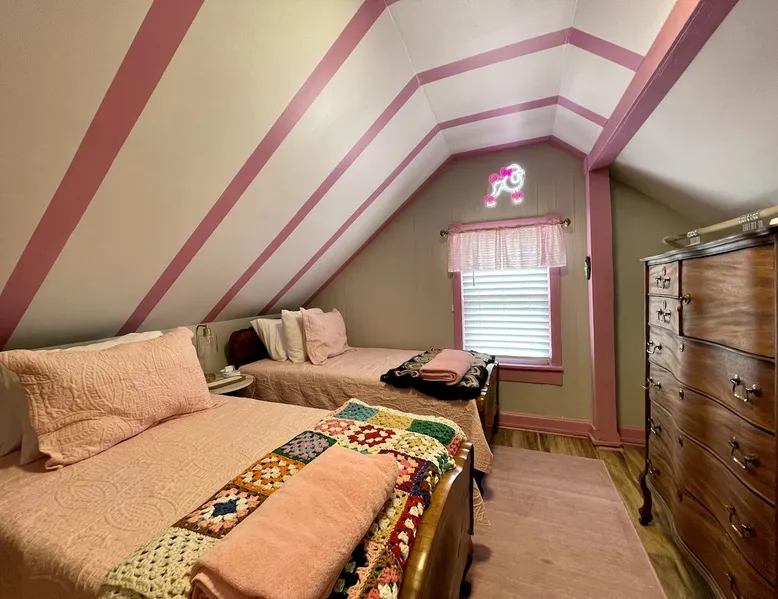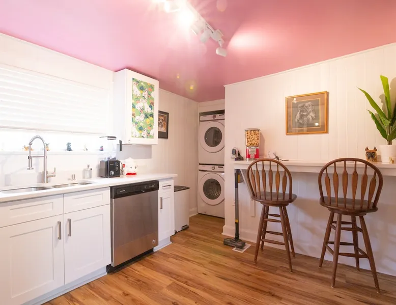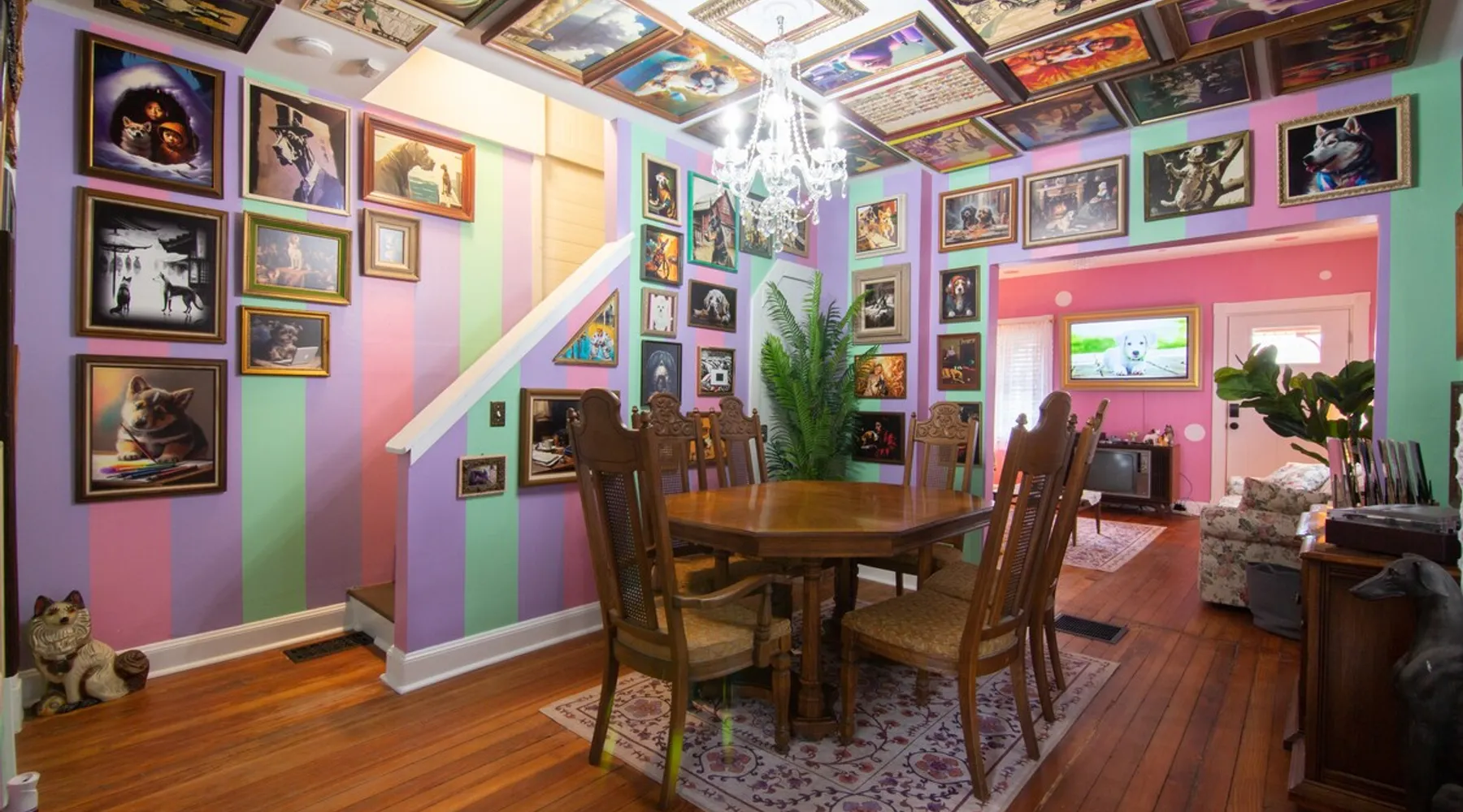 ONE OF A KIND HOUSE - Welcome to Granny's Dog House! This cozy 2BR/1BA retreat, designed for dog lovers, offers a king bed in BR1, two twin beds in BR2, and charming dog-themed décor. Enjoy our fully-equipped kitchen, pristine bathroom, & fenced backyard for your furry friends. Unwind in a lovingly curated home, surrounded by dog photos, sculptures, and the warmth of canine camaraderie. Experience love, laughter, and wagging tails at our house for you and your four-legged family members! The space Welcome to Grandma's Dog House, your cozy and charming home-away-from-home, nestled in the peaceful Tower Grove South neighborhood in south St Louis! Embrace the warmth of a lovingly curated dog-themed retreat, designed especially for dog lovers and their furry companions. Our delightful 2-bedroom, 1-bathroom home boasts a spacious king-size bed in Bedroom 1, perfect for unwinding after a day of adventures. Bedroom 2 is ideal for siblings, friends, or children, with its two comfy twin beds. Both rooms are adorned with a delightful collection of dog pictures and heartwarming dog sculptures, each with their unique story that Grandma would be more than happy to share. As you step into the living area, you'll be greeted by an array of beautifully framed dog photos and charming dog-themed knickknacks, reflecting Grandma's love for her canine friends. Sink into the plush sofa and let the gentle ambiance of our dog-friendly haven envelop you in comfort. Our fully-equipped kitchen is at your disposal, where you can whip up a meal while admiring the adorable dog-inspired décor, from the dog treat vending machine to the dog-shaped cookie jars. Share your culinary creations with your loved ones at the vintage dining table, surrounded by the warmth of family and the joy of canine companionship. The pristine bathroom, stocked with fresh towels and essential toiletries, features even more of grandma’s favorite knickknacks, adding a touch of whimsy to your daily routine. The fenced backyard is a doggy paradise, where your furry friends can frolic and play safely while you and your family make s’mores at the fire pit.. Relax on the patio with a cup of tea, as you marvel at the vibrant flowers and the gentle hum of visiting bees. Grandma's Dog House welcomes all well-behaved dogs with open arms and treats galore. Your stay with us will be a memorable experience, filled with love, laughter, and wagging tails. So, pack your bags and bring yourself to Grandma's Dog House and create everlasting memories for you and your furry family member. Guest access Guests have full access to entire house (except the cleaners area which is located in the basement). Other things to note Our gaming system includes over 6900 retro games from Atari to Playstation.