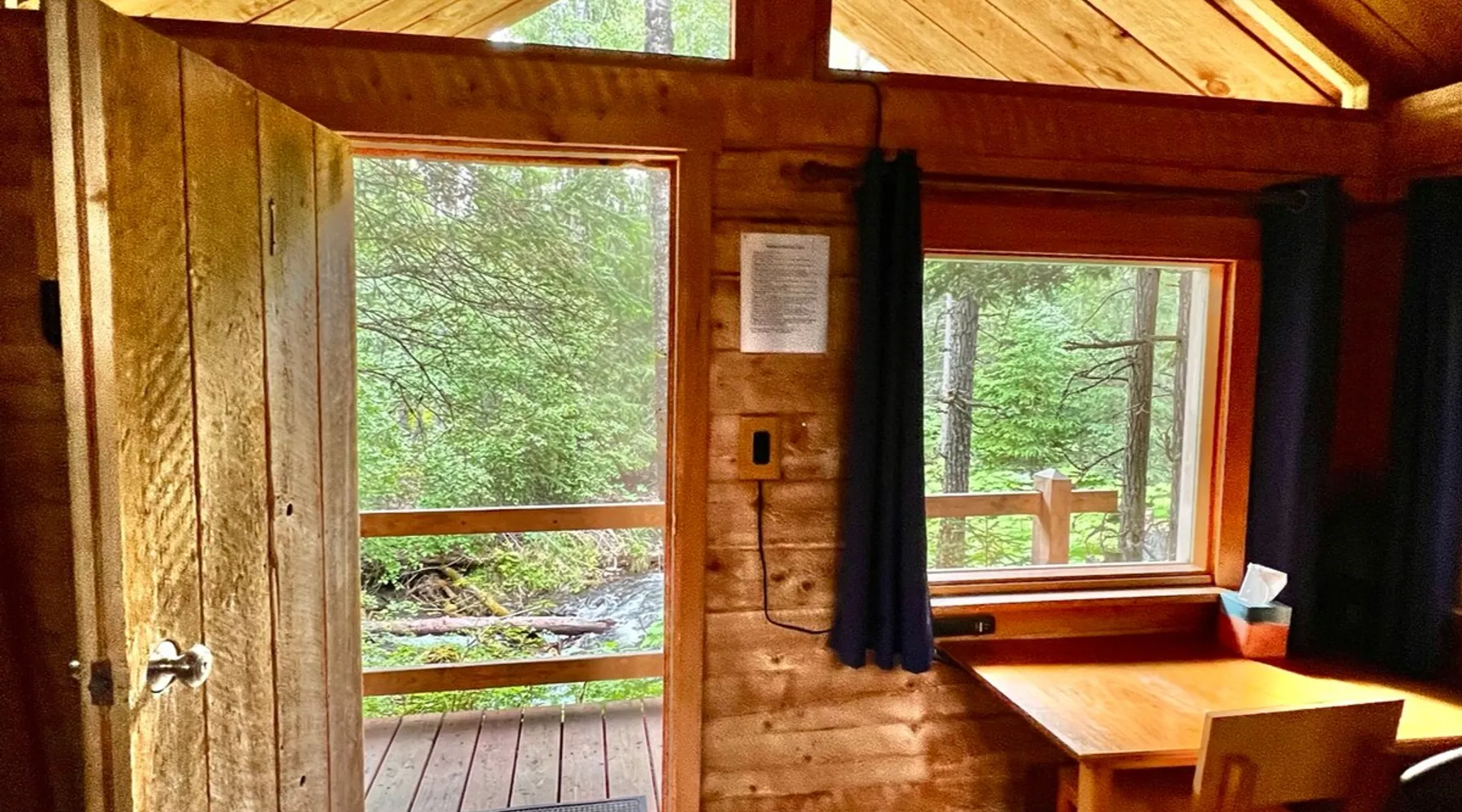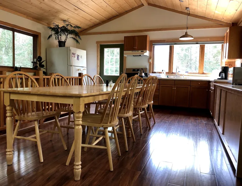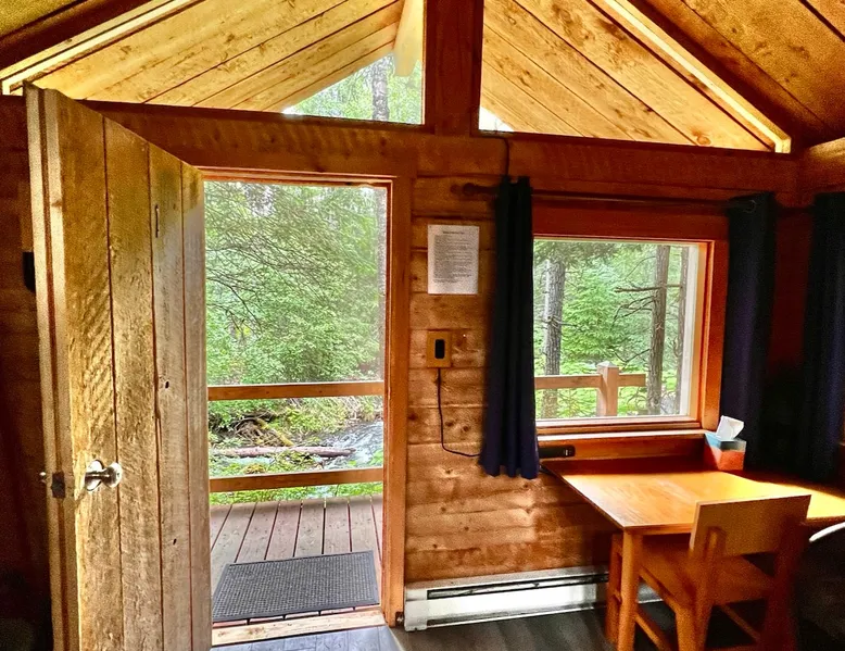 Tucked in the woods, off the main road, Discovery Cabins is the perfect Alaskan getaway. With your own deck right on the creek deeply nestled in the woods, and a shared lodge with all the necessities, we're convinced you will love this place as much as we do. The space Discovery Cabins are located off the main road but within a mile of historic downtown Hope. When you arrive you will first see the main lodge that has two bathrooms, a washer/dryer, a full kitchen, and a large sunny deck, all shared spaces. Behind the main lodge are 5 small 12x14 log cabins with electric, heat, and small private deck overlooking Bear Creek. The 5 cabins are small, rustic, and similar in design. They do not have their own bathrooms but instead share two bathrooms in the main lodge located behind your cabin. Guest access The lodge and grounds are open to all guests at Discovery Cabins. There is a fire ring in the yard and a Solo Stove in the gazebo, they are open to all guests. Feel free to wander around but please be courteous of others privacy in their own individual cabins. During your stay We do not live on property but are located just up the road. We are in and out cleaning cabins and checking on things in general but feel free to contact us with any questions or concerns. We have an extensive knowledge of the area and its trails and we love to talk about Hope. Other things to note Your cabin is its own unit. The lodge is a shared space, it has two bathrooms, a kitchen, and a deck. No pets allowed in the main lodge.