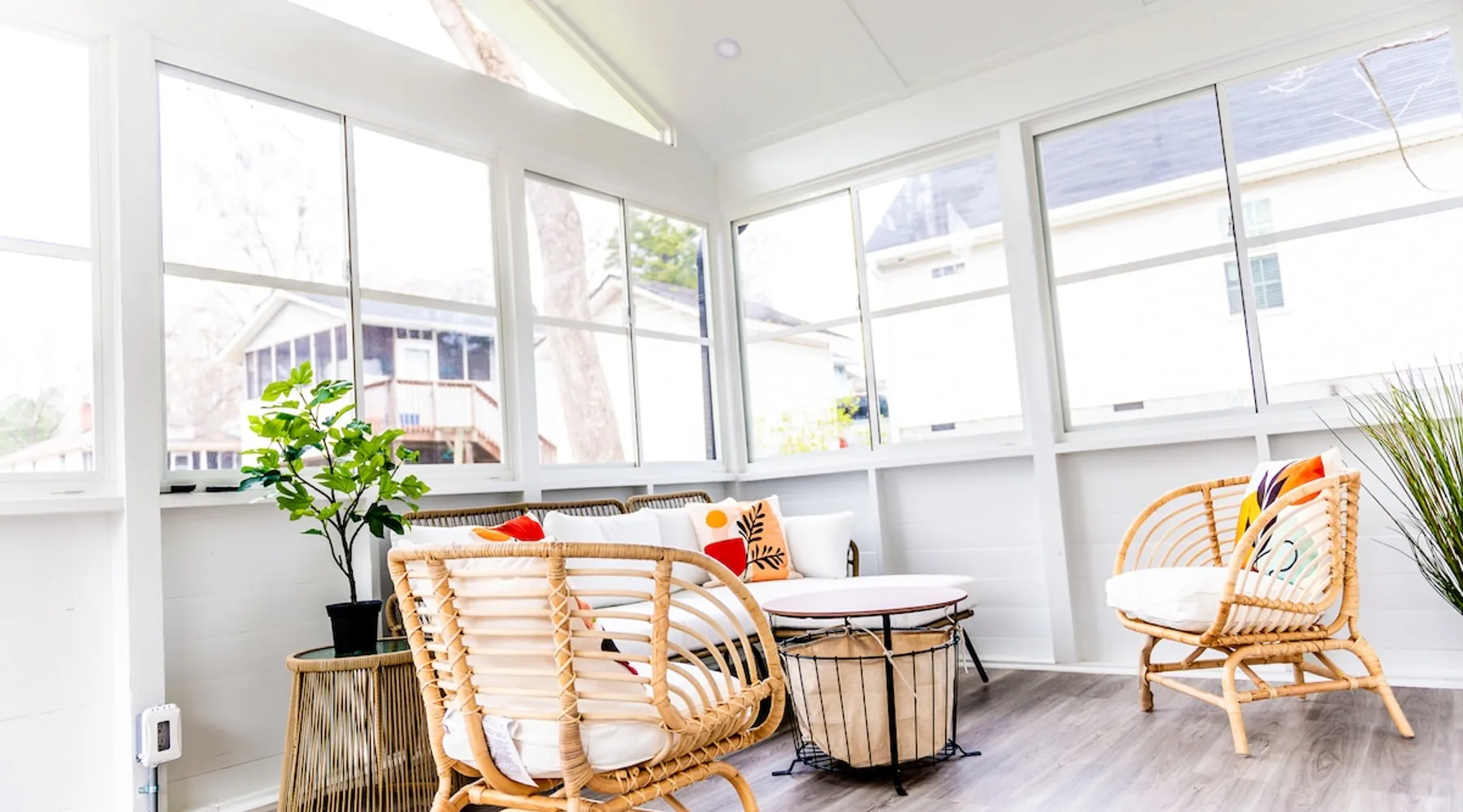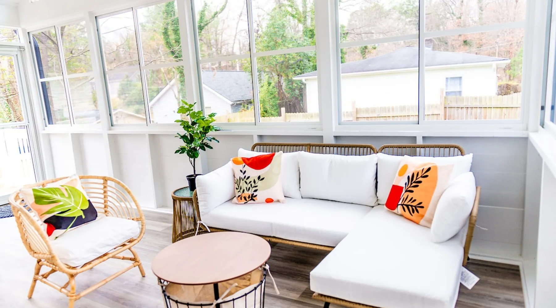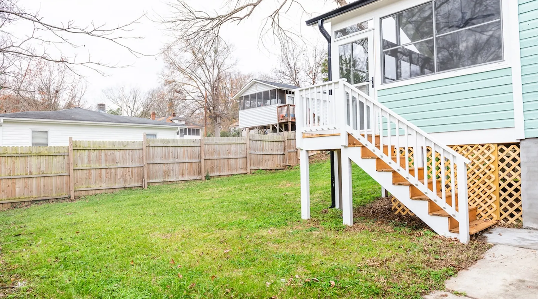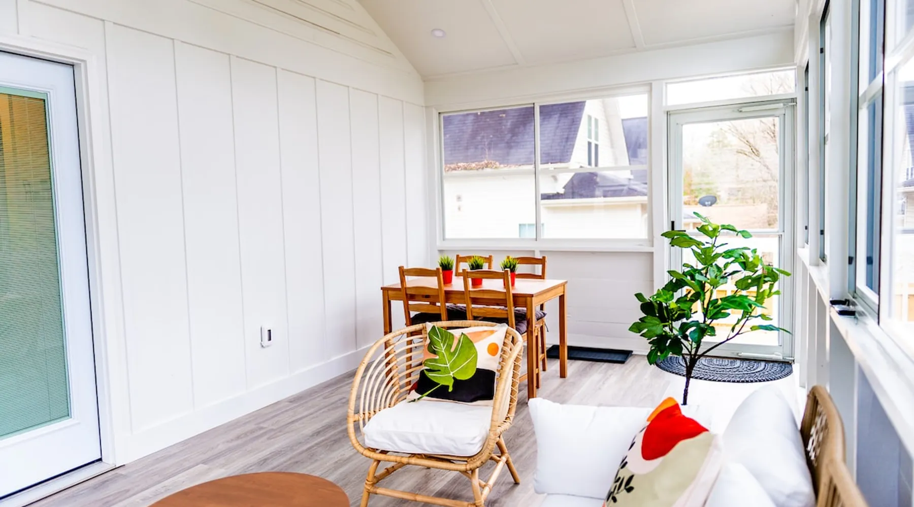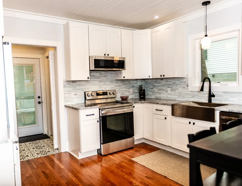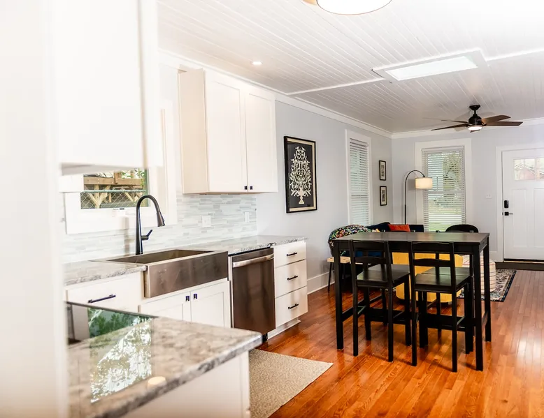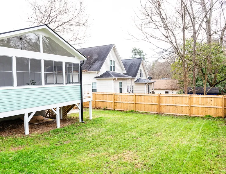 Charming and comfortable one story 2BR/1BA bungalow. All new appliances, HVAC, roof, flooring, paint, etc. Driveway parking for up to 3 cars. Fenced in backyard. Large three season enclosed porch with seating and dining area. Walk to two grocery stores and a few restaurants. Easy bike/scooter to Duke's campus or downtown. TVs in living area and front bedroom. Bring your own Firestick or login for Netflix. One block from a community center with an indoor basketball court and track. The space The house is one story, with two bedrooms off the main living area and a large three season porch off the back, which has a standalone AC & heat unit, a ceiling fan, and windows that open with screens. Guest access Guest has access the entire property. Other things to note Person who books the listing must stay on-site, unless pre-approved by us first. Parent or guardian must stay on-site with children under age 18. All guests must be noted by name on the reservation. No pets. We are trying to maintain a pet hair free environment.