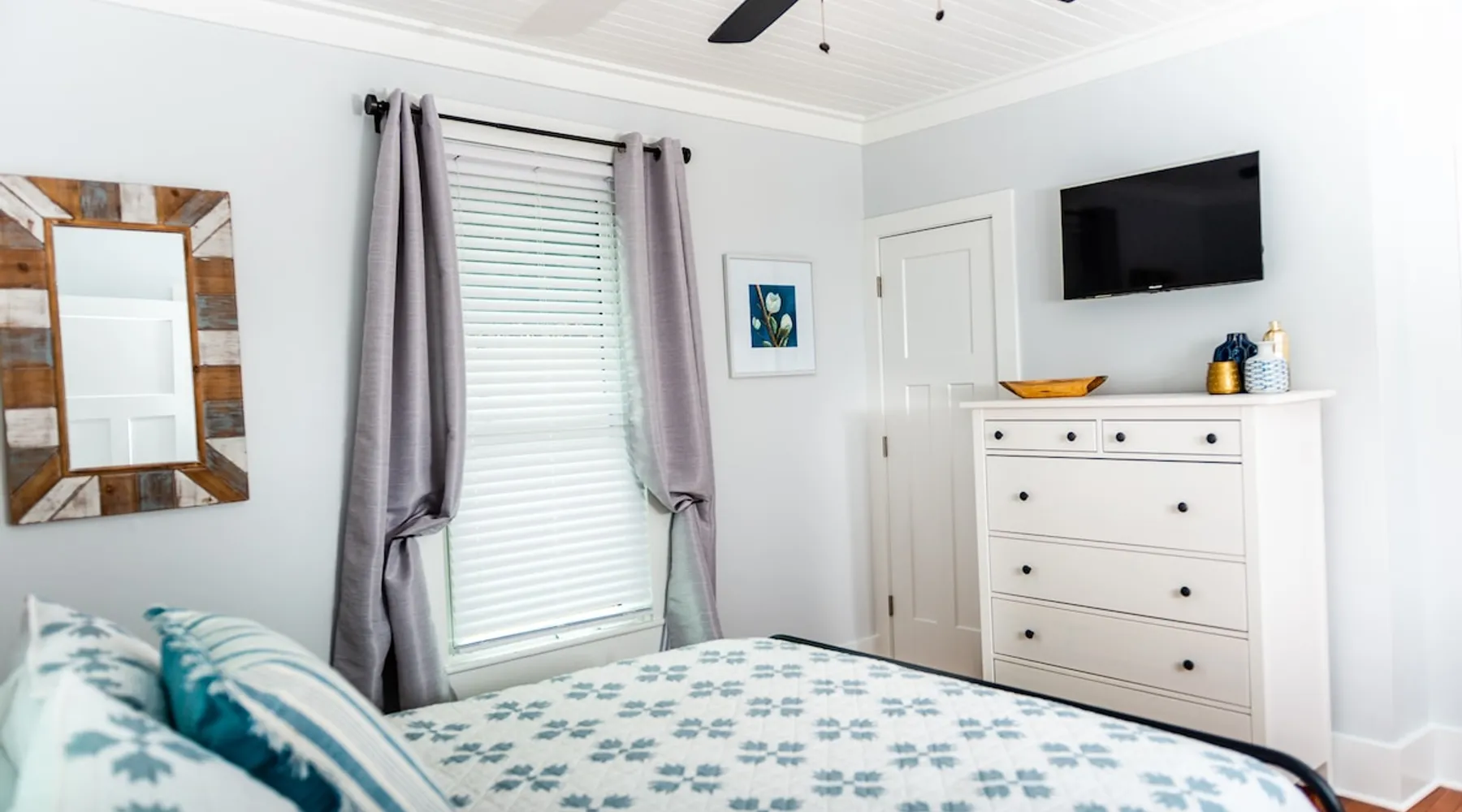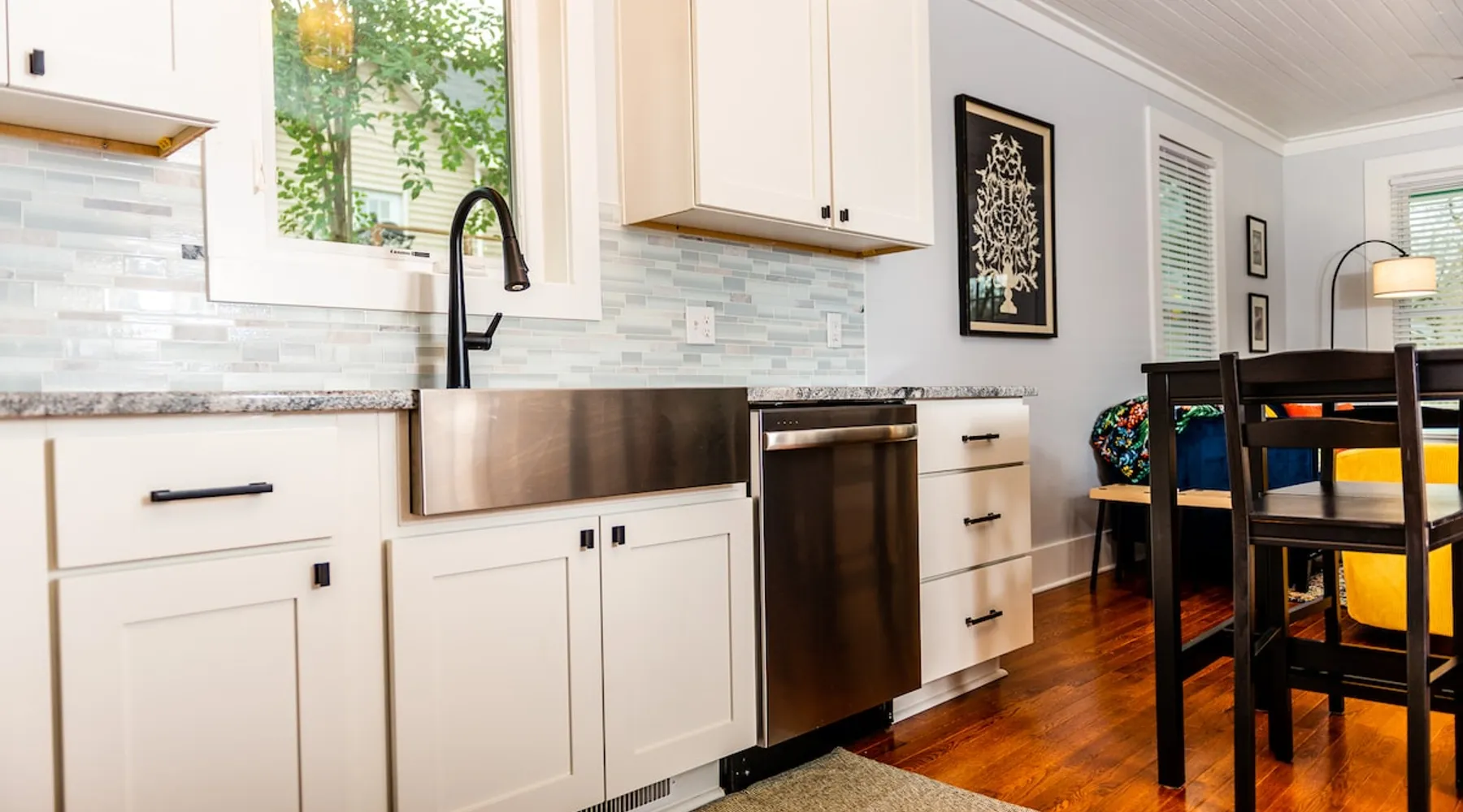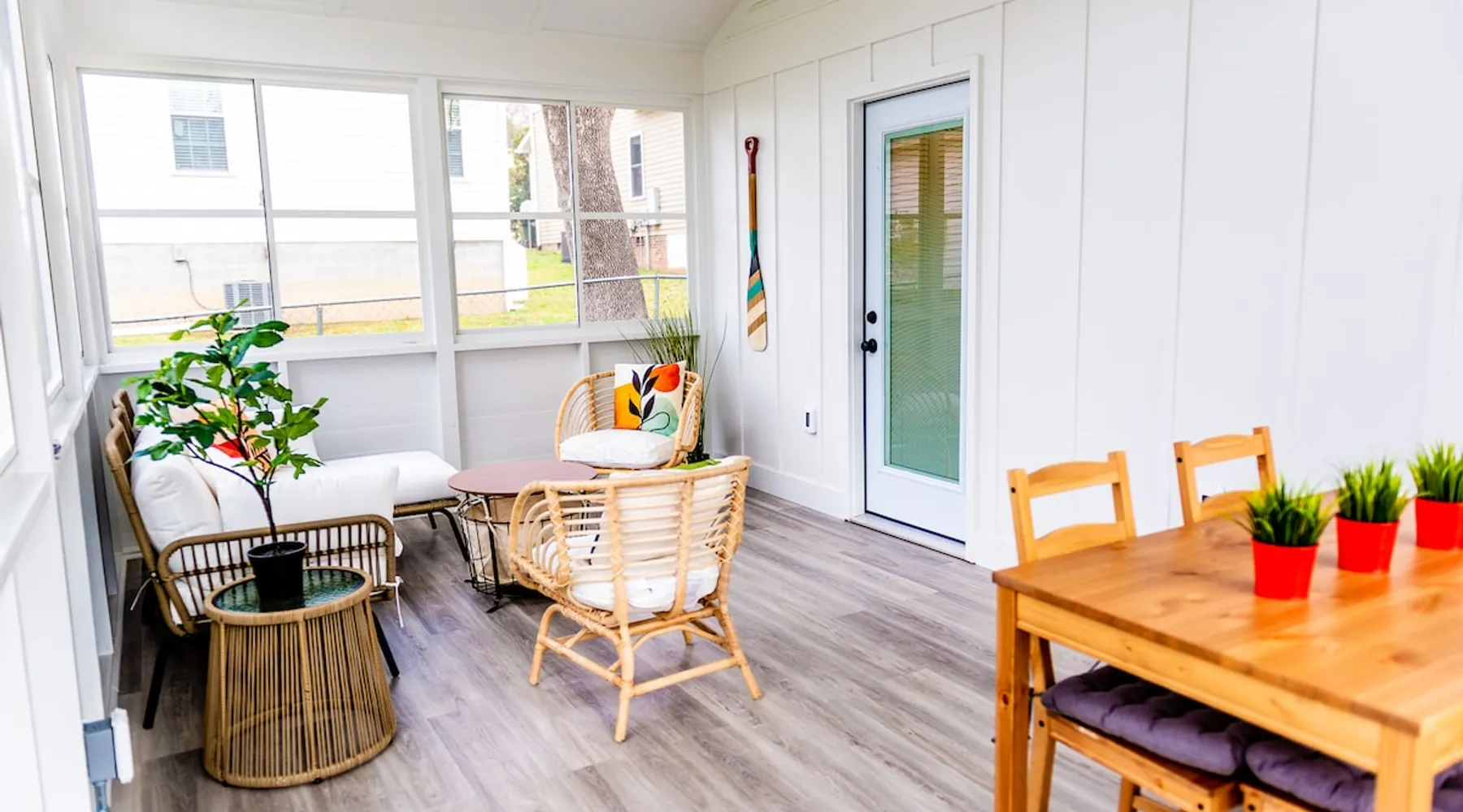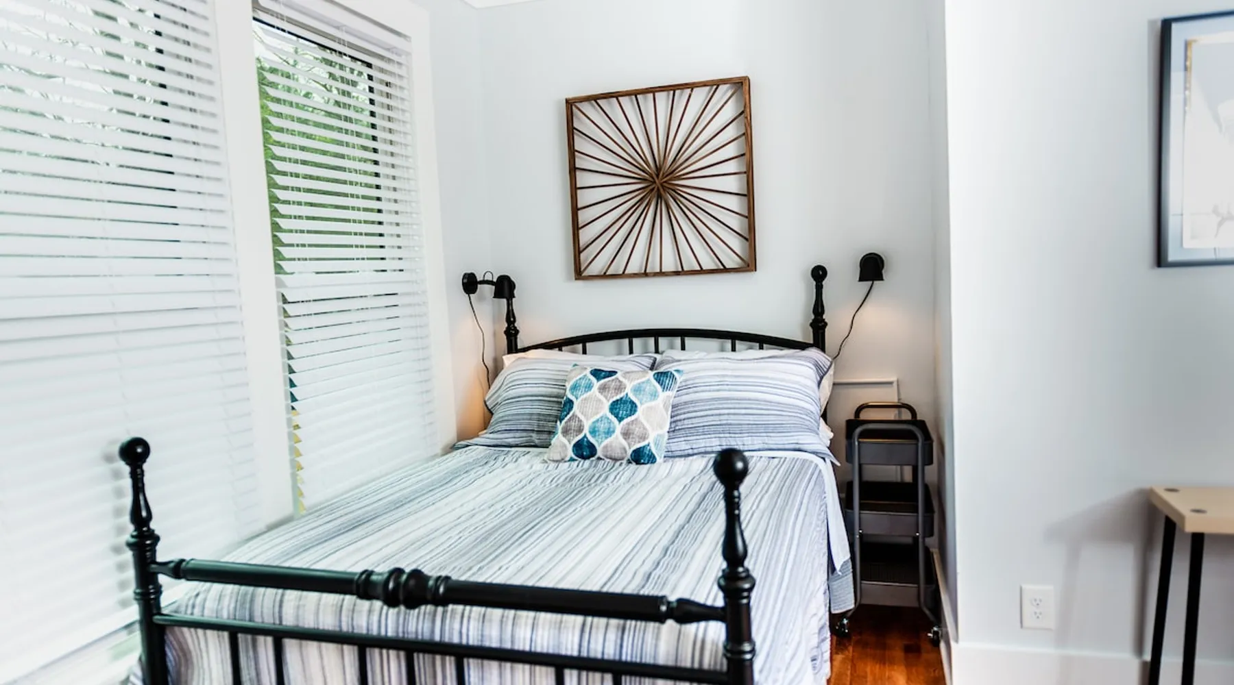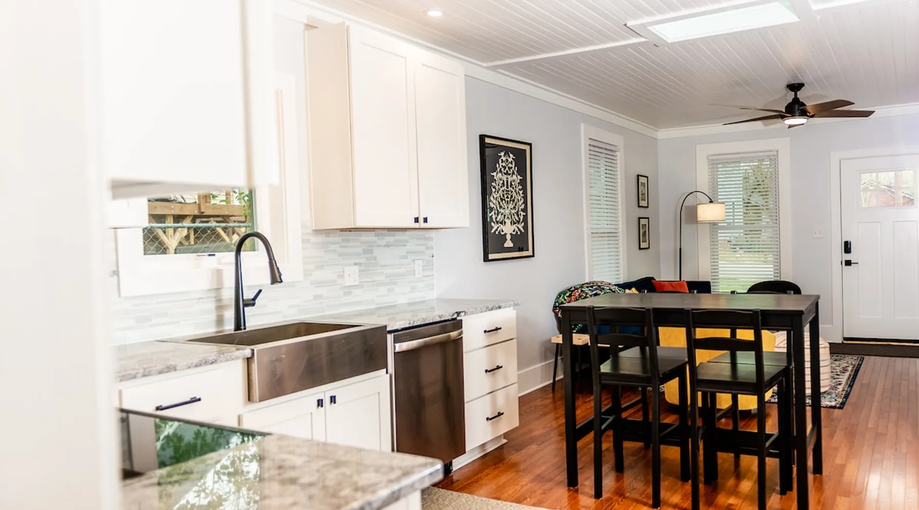 Charming and comfortable one story 2BR/1BA bungalow. All new appliances, HVAC, roof, flooring, paint, etc. Driveway parking for up to 3 cars. Fenced in backyard. Large three season enclosed porch with seating and dining area. Walk to two grocery stores and a few restaurants. Easy bike/scooter to Duke's campus or downtown. TVs in living area and front bedroom. Bring your own Firestick or login for Netflix. One block from a community center with an indoor basketball court and track. The space The house is one story, with two bedrooms off the main living area and a large three season porch off the back, which has a standalone AC & heat unit, a ceiling fan, and windows that open with screens. Guest access Guest has access the entire property. Other things to note Person who books the listing must stay on-site, unless pre-approved by us first. Parent or guardian must stay on-site with children under age 18. All guests must be noted by name on the reservation. No pets. We are trying to maintain a pet hair free environment.