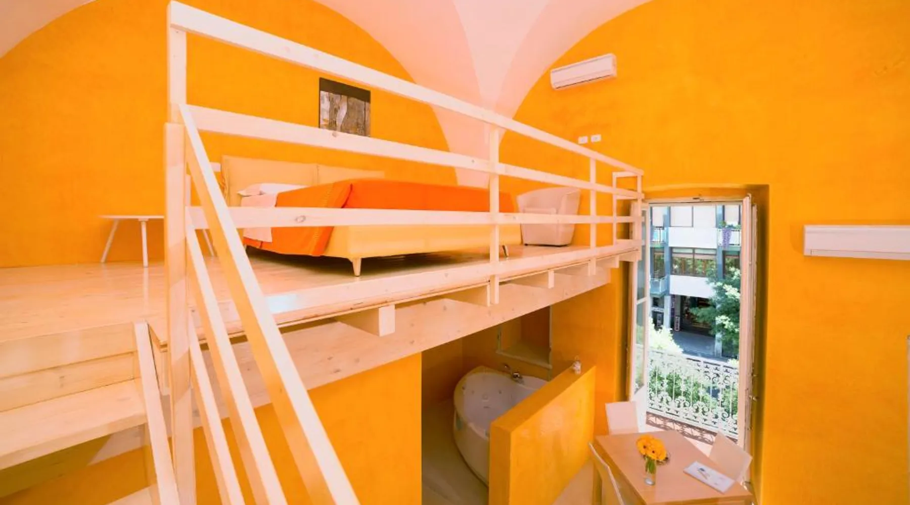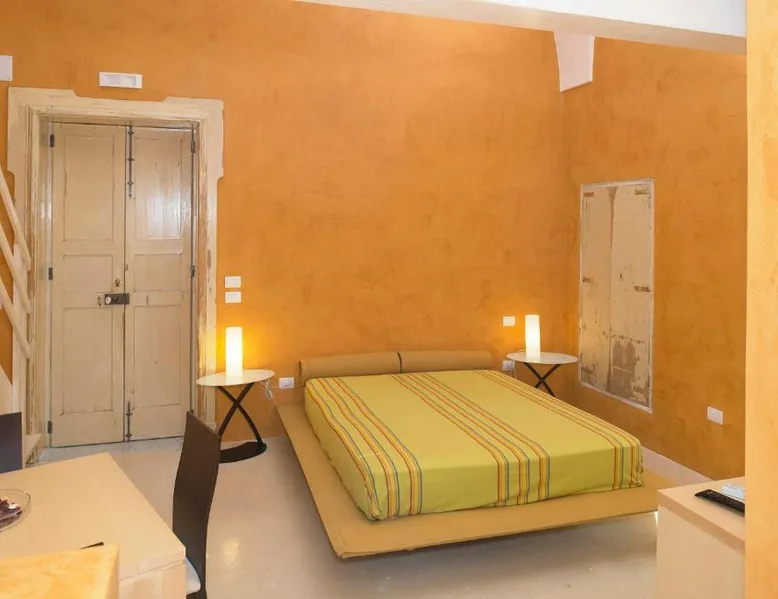 Set in the center of Gallipoli, Relais Carlo V is a 19th-century building with a shared lounge featuring vaulted ceilings with frescoes. Offering free Wi-Fi, it also has air-conditioned rooms and a terrace. With views of the town, rooms are colorful and include a seating area and a private bathroom with hairdryer. A breakfast buffet consisting of pastries, cold cuts and juices is served daily. Gallipoli Train Station and a bus stop which has links to Lecce are 5 minutes’ walk from Carlo V Relais, while the seaside is 2461 feet away. With a balcony, this air-conditioned room comes with colorful furniture, a seating area with 1 table and 4 chairs and a private bathroom with spa bath and a large shower. Can fit up to 2 extra beds on request.