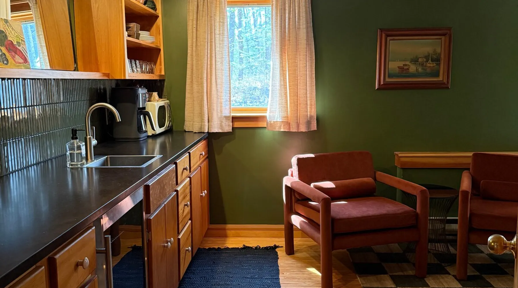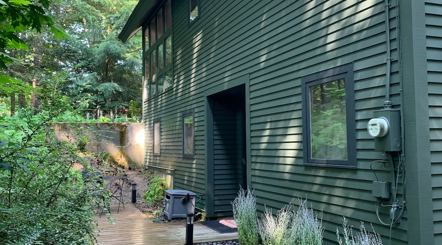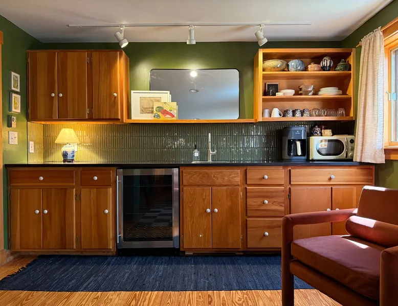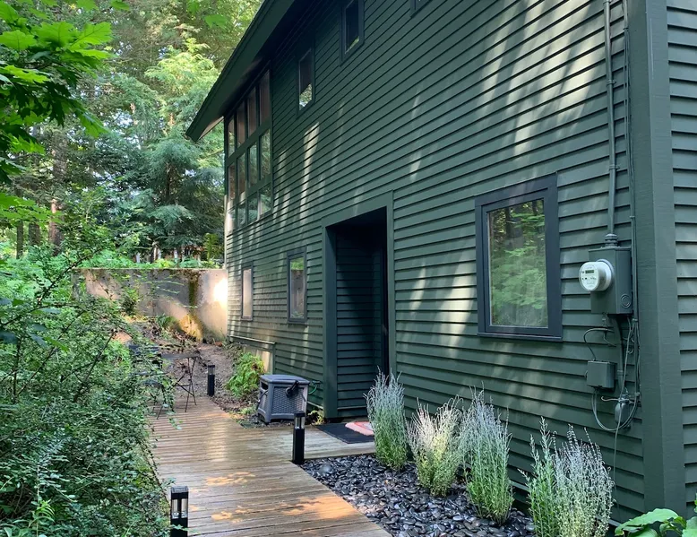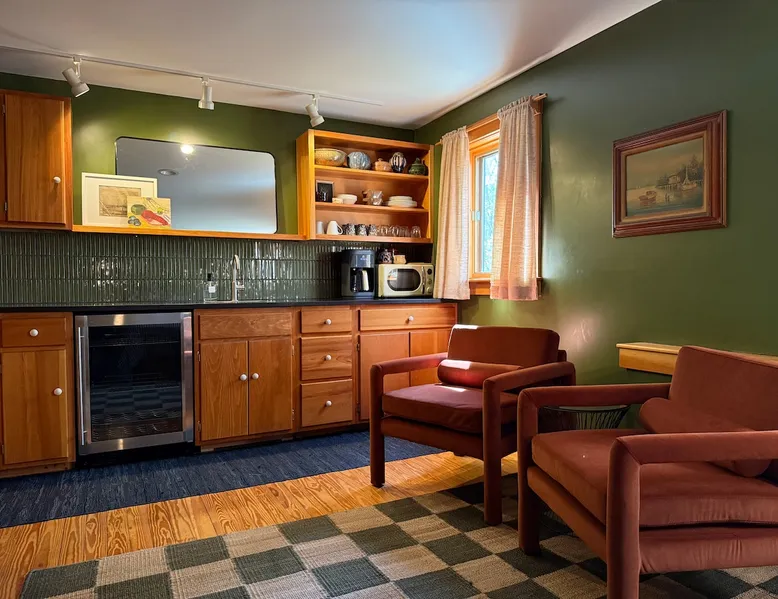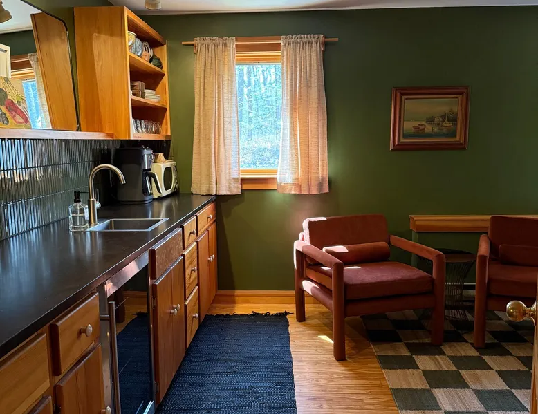 Kick back and relax in this comfortable and spacious one-bedroom guesthouse "Where the Mountains Meet the Sea". With towering trees and luscious ferns, live like a local in a quiet Camden neighborhood. Unbeatable location with lakes, rivers, and mountains all within walking distance, plus historic downtown Camden and harbor are just a 3 minute drive away. Perfect for a weekend getaway, business trip, staycation, or cozy home base while exploring everything Mid-Coast Maine has to offer. The space Our guest quarters is completely separate but attached to the main house with private entry and parking area. The space can most comfortably accommodate 2 people with a queen-sized bed fitted with a 4 inch memory foam mattress, pillow top pad, and hotel linens. The kitchenette is sufficiently equipped to meet your needs; coffeemaker, refrigerator, microwave, sink, and electric kettle. We provide complimentary coffee, tea, and half & half. The bathroom has plenty of soft towels, shampoo, conditioner, & body wash, along with the full use of your own, brand new washer and dryer. High speed wifi and large, flat screen TV with Apple TV are also provided so you can sign in to your favorite apps. A picnic basket, blanket, and 2 large beach towels are also included. Small, private patio space with bistro set. No smoking allowed inside or outside, please. Our family lives on the 2 levels above and you may hear us from time to time. We try to be very quiet before 9am and after 9pm. We also have 2 very friendly dogs that live on the property but you probably won't see them. Guest access You'll have your own, private parking area and private, no contact entry.