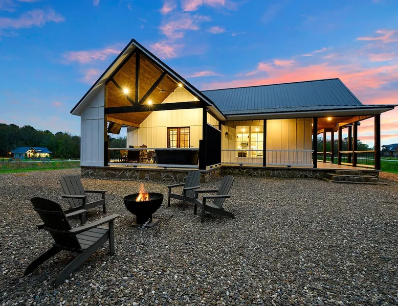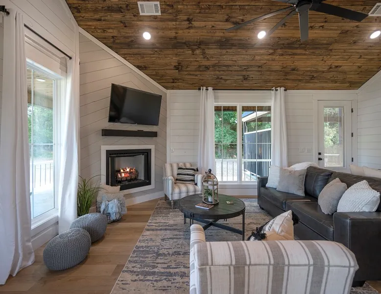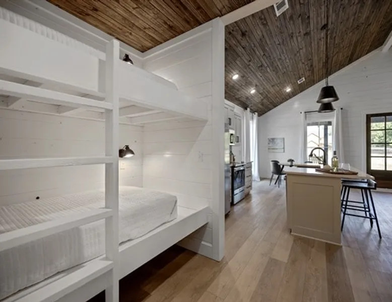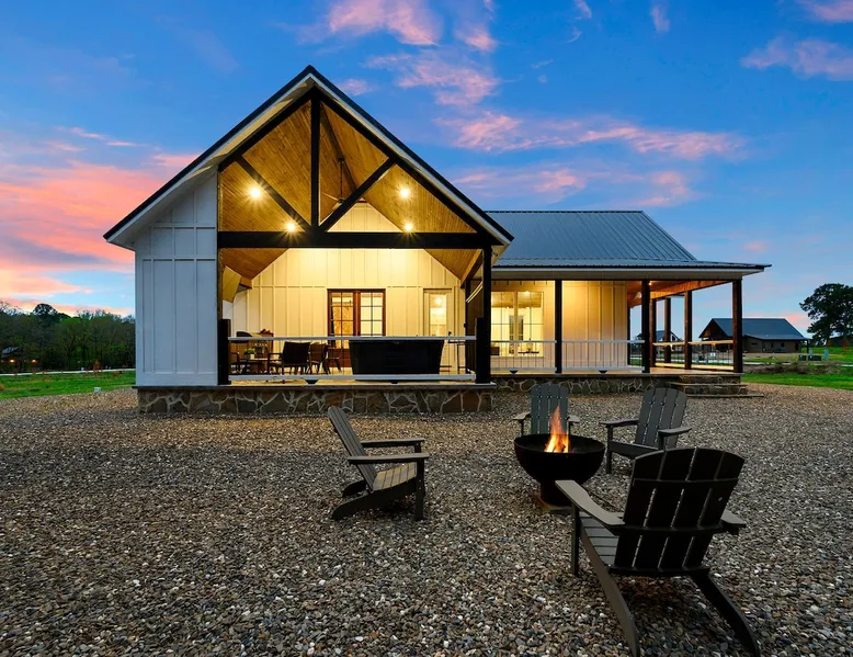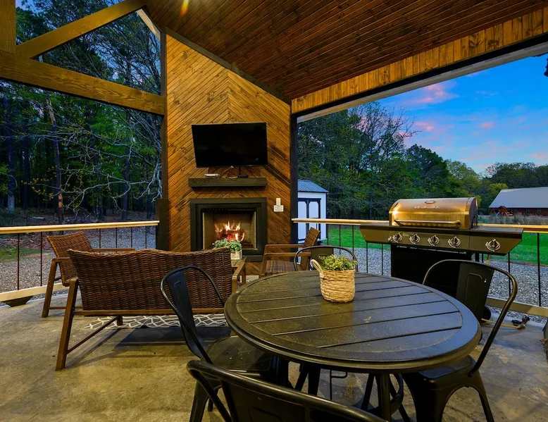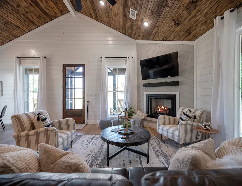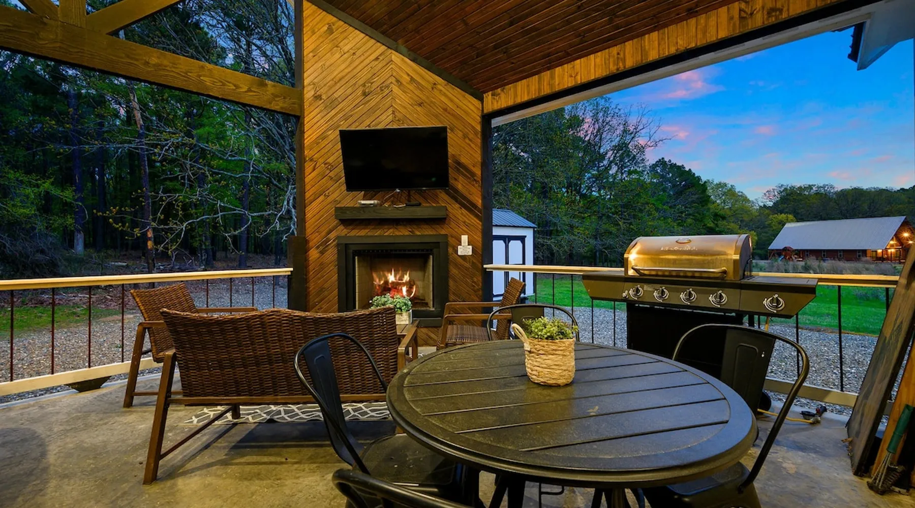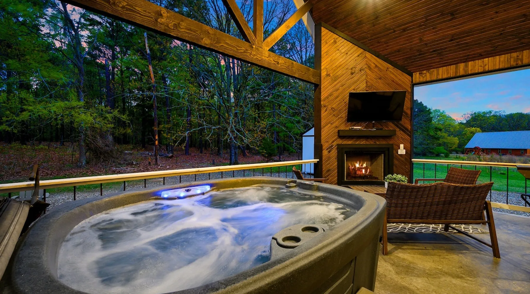 🏡 Welcome to 2 Hearts Cabin Experience a modern getaway with a charming farmhouse feel at 2 Hearts Cabin in Broken Bow. The cabin offers a range of amenities to ensure a relaxing stay, including a hot tub, a gas grill, disc golf, fireplaces both inside and out, a luxurious bathroom, and a furnished back deck where you can unwind and enjoy the peaceful surroundings. The space 🛋️ Living Room Relax in a spacious and inviting living area featuring: Large sleeper sofa Two comfortable chairs + two poufs Bench seating behind the couch Gas fireplace Big-screen HDTV for movie nights 🍽️ Kitchen & Dining Fully stocked for all your cooking needs: Dining table with seating for 4 Kitchen island with seating for 2 Coffee pot & K-Cup machine Kettle, toaster, blender Dishes, cookware, bakeware, grilling tools 🛏️ Bedrooms & Sleeping Arrangements Master Suite King-size bed Nightstands & bench Closet with hangers Direct access to patio Big-screen TV Ensuite bathroom with: Soaker tub Oversized walk-in shower with rainfall showerhead Private toilet Bunk Nook Twin-over-twin bunk bed is located just off the kitchen Ideal for kids or extra guests Adjacent to a half bath 🌳 Outdoor Features Enjoy the great outdoors without leaving home: Disc golf Furnished back deck with seating for 4 Outdoor gas fireplace & big-screen TV Hot tub Gas grill (hard-lined to the main tank of the property) Fire pit with seating for 4 Front porch rocking chairs. 🐾 Pet Friendly Up to 2 dogs under 50 lbs. each $125 per pet fee applies. 📌 General Information Full-size washer & dryer Seasonal fireplaces: Available Oct–May 15 Surveillance: Exterior cameras face entrances only, monitored at check-in for occupancy compliance Free Wi-Fi Max occupancy: 6 guests – NO EXCEPTIONS Guest access Entire Cabin Other things to note It is located near all the best restaurants, activities, and park amenities. It is just a short drive to Broken Bow Lake, Beavers Bend State Park, popular hiking trails, restaurants, breweries, wineries, and downtown Hochatown, and access to all the outdoors activities you want – boating, hiking, fly-fishing, kayaking, zip-lining, ATV trails, horseback riding, Cedar Creek Golf Course, Choctaw Landing Casino, mini-golf, helicopter rides, mining for gold, train rides, go-carts, and a great petting zoo. Don’t forget these items when you come to visit: • Rain gear and light jackets (Our average rainfall is 55″-60″ each year). • We have beautiful scenic trails; good hiking boots are a must. • Water shoes for our vast shorelines and streams. • Insect repellent, sunblock, and other first-aid supplies. • Coffee and filters – enjoy this while sitting on the deck in the early morning. • Condiments - A starter supply of coffee/filters, paper towels, toilet paper, bath soap, dish soap, dishwasher tablets, trash bags, and laundry soap is provided. Still, guests may need to bring additional supplies. For your convenience, we can help you arrange: • Special requests (i.e., flowers, wine, etc.) • In-cabin chef recommendations • In-cabin massages recommendations If we are missing something or you have a question we haven't answered, please feel free to reach out to us directly at Bravo Cabin Rentals and we will personally respond as soon as possible. We look forward to making your next vacation in Broken Bow/Hochatown one you won’t forget!