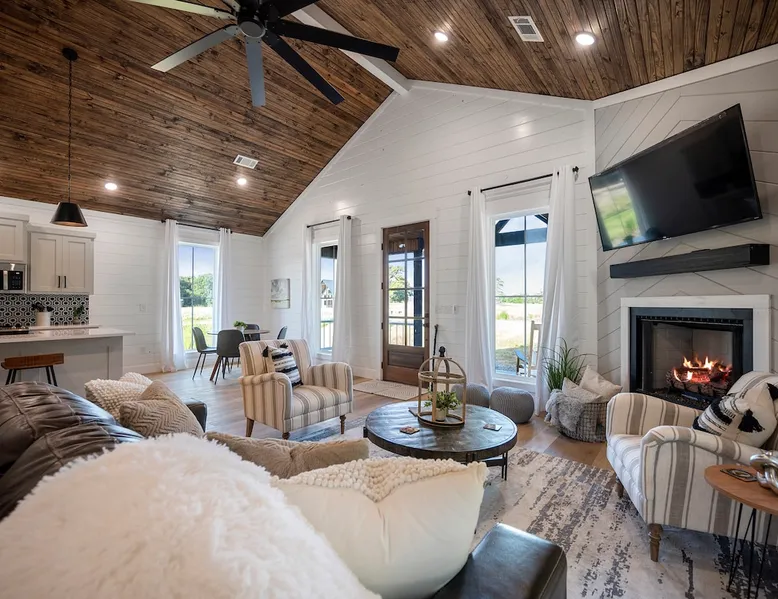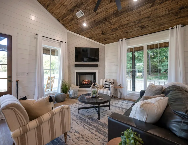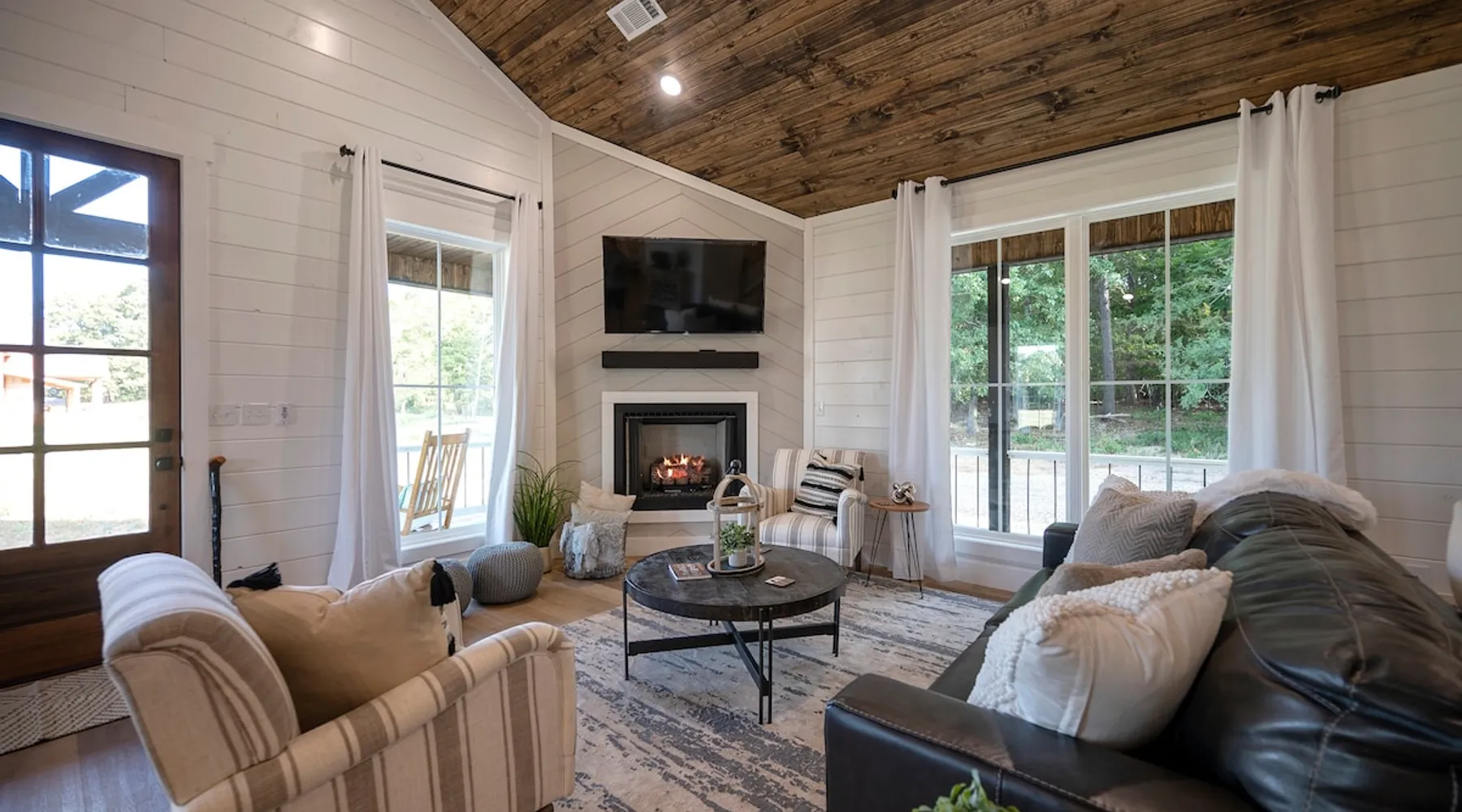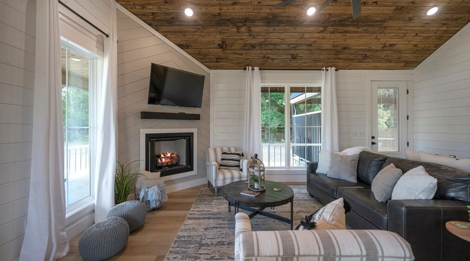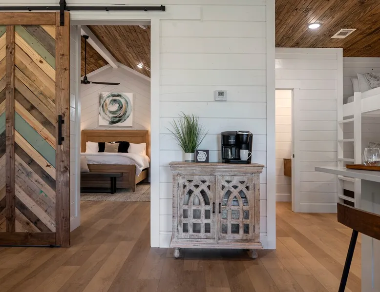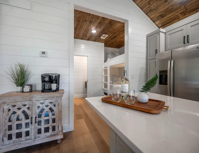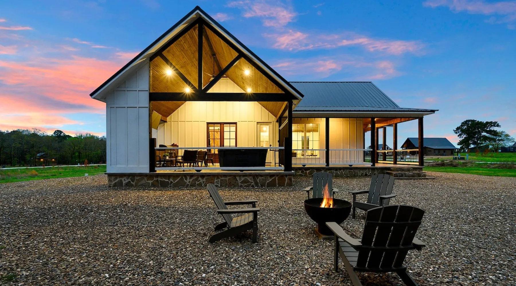 🏡 Welcome to 2 Hearts Cabin Experience a modern getaway with a charming farmhouse feel at 2 Hearts Cabin in Broken Bow. The cabin offers a range of amenities to ensure a relaxing stay, including a hot tub, a gas grill, disc golf, fireplaces both inside and out, a luxurious bathroom, and a furnished back deck where you can unwind and enjoy the peaceful surroundings. The space 🛋️ Living Room Relax in a spacious and inviting living area featuring: Large sleeper sofa Two comfortable chairs + two poufs Bench seating behind the couch Gas fireplace Big-screen HDTV for movie nights 🍽️ Kitchen & Dining Fully stocked for all your cooking needs: Dining table with seating for 4 Kitchen island with seating for 2 Coffee pot & K-Cup machine Kettle, toaster, blender Dishes, cookware, bakeware, grilling tools 🛏️ Bedrooms & Sleeping Arrangements Master Suite King-size bed Nightstands & bench Closet with hangers Direct access to patio Big-screen TV Ensuite bathroom with: Soaker tub Oversized walk-in shower with rainfall showerhead Private toilet Bunk Nook Twin-over-twin bunk bed is located just off the kitchen Ideal for kids or extra guests Adjacent to a half bath 🌳 Outdoor Features Enjoy the great outdoors without leaving home: Disc golf Furnished back deck with seating for 4 Outdoor gas fireplace & big-screen TV Hot tub Gas grill (hard-lined to the main tank of the property) Fire pit with seating for 4 Front porch rocking chairs. 🐾 Pet Friendly Up to 2 dogs under 50 lbs. each $125 per pet fee applies. 📌 General Information Full-size washer & dryer Seasonal fireplaces: Available Oct–May 15 Surveillance: Exterior cameras face entrances only, monitored at check-in for occupancy compliance Free Wi-Fi Max occupancy: 6 guests – NO EXCEPTIONS Guest access Entire Cabin Other things to note It is located near all the best restaurants, activities, and park amenities. It is just a short drive to Broken Bow Lake, Beavers Bend State Park, popular hiking trails, restaurants, breweries, wineries, and downtown Hochatown, and access to all the outdoors activities you want – boating, hiking, fly-fishing, kayaking, zip-lining, ATV trails, horseback riding, Cedar Creek Golf Course, Choctaw Landing Casino, mini-golf, helicopter rides, mining for gold, train rides, go-carts, and a great petting zoo. Don’t forget these items when you come to visit: • Rain gear and light jackets (Our average rainfall is 55″-60″ each year). • We have beautiful scenic trails; good hiking boots are a must. • Water shoes for our vast shorelines and streams. • Insect repellent, sunblock, and other first-aid supplies. • Coffee and filters – enjoy this while sitting on the deck in the early morning. • Condiments - A starter supply of coffee/filters, paper towels, toilet paper, bath soap, dish soap, dishwasher tablets, trash bags, and laundry soap is provided. Still, guests may need to bring additional supplies. For your convenience, we can help you arrange: • Special requests (i.e., flowers, wine, etc.) • In-cabin chef recommendations • In-cabin massages recommendations If we are missing something or you have a question we haven't answered, please feel free to reach out to us directly at Bravo Cabin Rentals and we will personally respond as soon as possible. We look forward to making your next vacation in Broken Bow/Hochatown one you won’t forget!