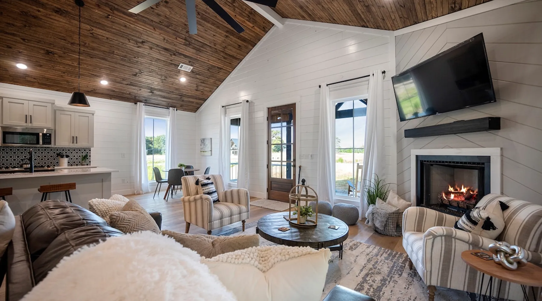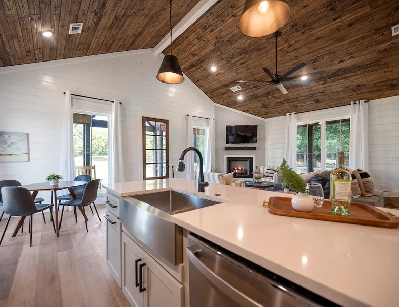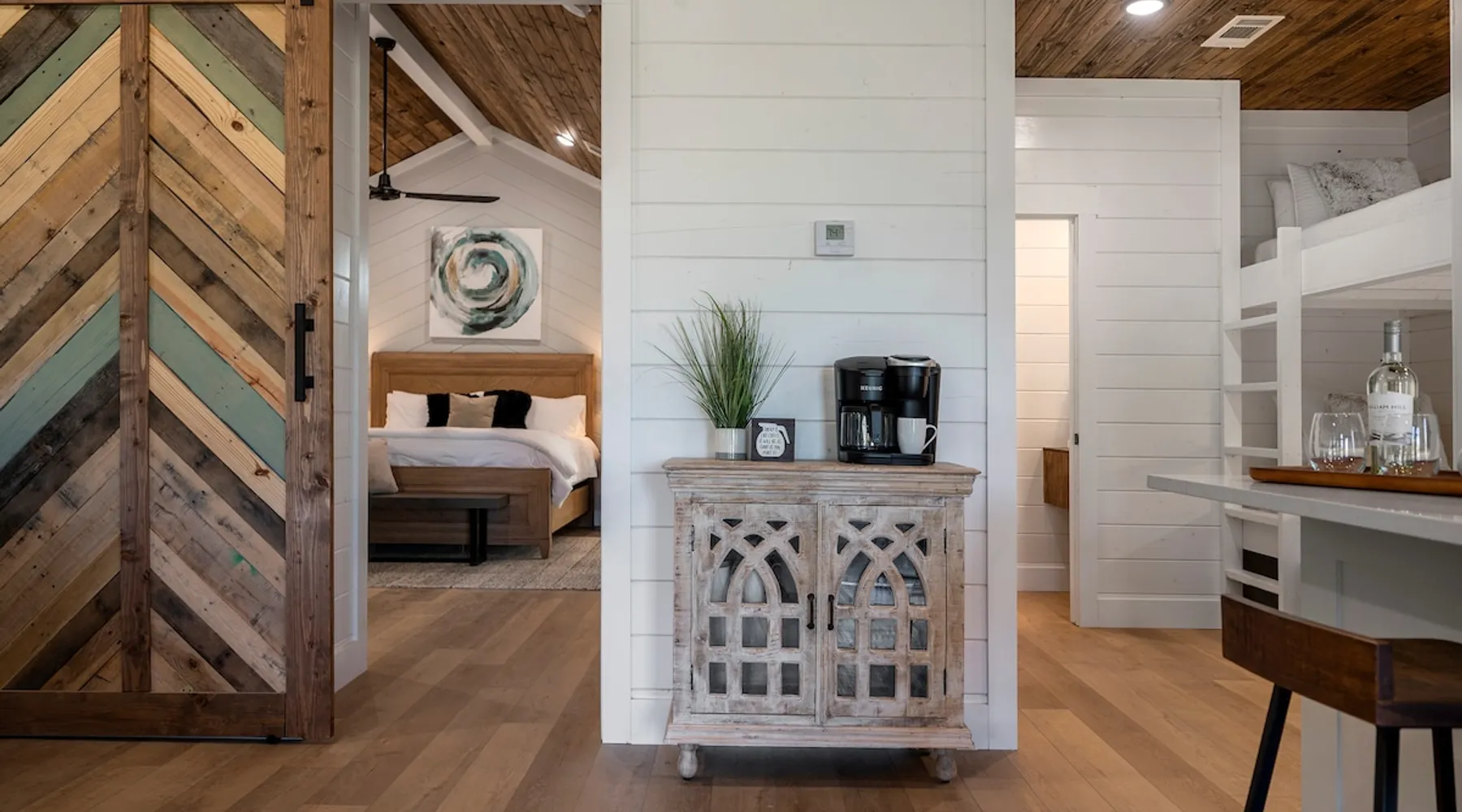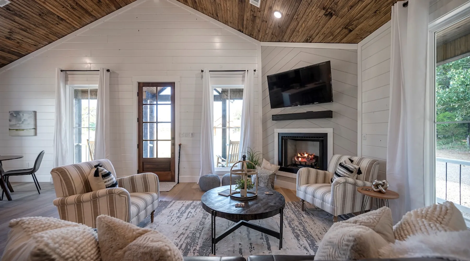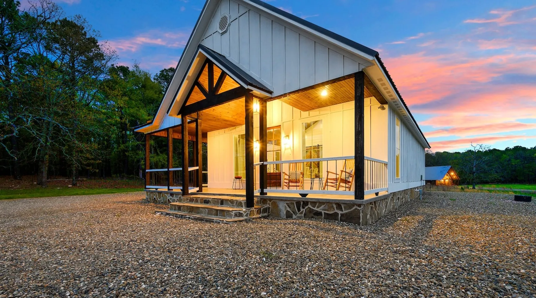 🏡 Welcome to 2 Hearts Cabin Experience a modern getaway with a charming farmhouse feel at 2 Hearts Cabin in Broken Bow. The cabin offers a range of amenities to ensure a relaxing stay, including a hot tub, a gas grill, disc golf, fireplaces both inside and out, a luxurious bathroom, and a furnished back deck where you can unwind and enjoy the peaceful surroundings. The space 🛋️ Living Room Relax in a spacious and inviting living area featuring: Large sleeper sofa Two comfortable chairs + two poufs Bench seating behind the couch Gas fireplace Big-screen HDTV for movie nights 🍽️ Kitchen & Dining Fully stocked for all your cooking needs: Dining table with seating for 4 Kitchen island with seating for 2 Coffee pot & K-Cup machine Kettle, toaster, blender Dishes, cookware, bakeware, grilling tools 🛏️ Bedrooms & Sleeping Arrangements Master Suite King-size bed Nightstands & bench Closet with hangers Direct access to patio Big-screen TV Ensuite bathroom with: Soaker tub Oversized walk-in shower with rainfall showerhead Private toilet Bunk Nook Twin-over-twin bunk bed is located just off the kitchen Ideal for kids or extra guests Adjacent to a half bath 🌳 Outdoor Features Enjoy the great outdoors without leaving home: Disc golf Furnished back deck with seating for 4 Outdoor gas fireplace & big-screen TV Hot tub Gas grill (hard-lined to the main tank of the property) Fire pit with seating for 4 Front porch rocking chairs. 🐾 Pet Friendly Up to 2 dogs under 50 lbs. each $125 per pet fee applies. 📌 General Information Full-size washer & dryer Seasonal fireplaces: Available Oct–May 15 Surveillance: Exterior cameras face entrances only, monitored at check-in for occupancy compliance Free Wi-Fi Max occupancy: 6 guests – NO EXCEPTIONS Guest access Entire Cabin Other things to note It is located near all the best restaurants, activities, and park amenities. It is just a short drive to Broken Bow Lake, Beavers Bend State Park, popular hiking trails, restaurants, breweries, wineries, and downtown Hochatown, and access to all the outdoors activities you want – boating, hiking, fly-fishing, kayaking, zip-lining, ATV trails, horseback riding, Cedar Creek Golf Course, Choctaw Landing Casino, mini-golf, helicopter rides, mining for gold, train rides, go-carts, and a great petting zoo. Don’t forget these items when you come to visit: • Rain gear and light jackets (Our average rainfall is 55″-60″ each year). • We have beautiful scenic trails; good hiking boots are a must. • Water shoes for our vast shorelines and streams. • Insect repellent, sunblock, and other first-aid supplies. • Coffee and filters – enjoy this while sitting on the deck in the early morning. • Condiments - A starter supply of coffee/filters, paper towels, toilet paper, bath soap, dish soap, dishwasher tablets, trash bags, and laundry soap is provided. Still, guests may need to bring additional supplies. For your convenience, we can help you arrange: • Special requests (i.e., flowers, wine, etc.) • In-cabin chef recommendations • In-cabin massages recommendations If we are missing something or you have a question we haven't answered, please feel free to reach out to us directly at Bravo Cabin Rentals and we will personally respond as soon as possible. We look forward to making your next vacation in Broken Bow/Hochatown one you won’t forget!