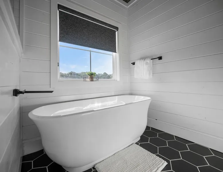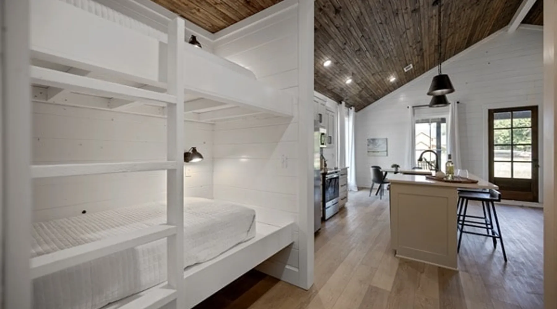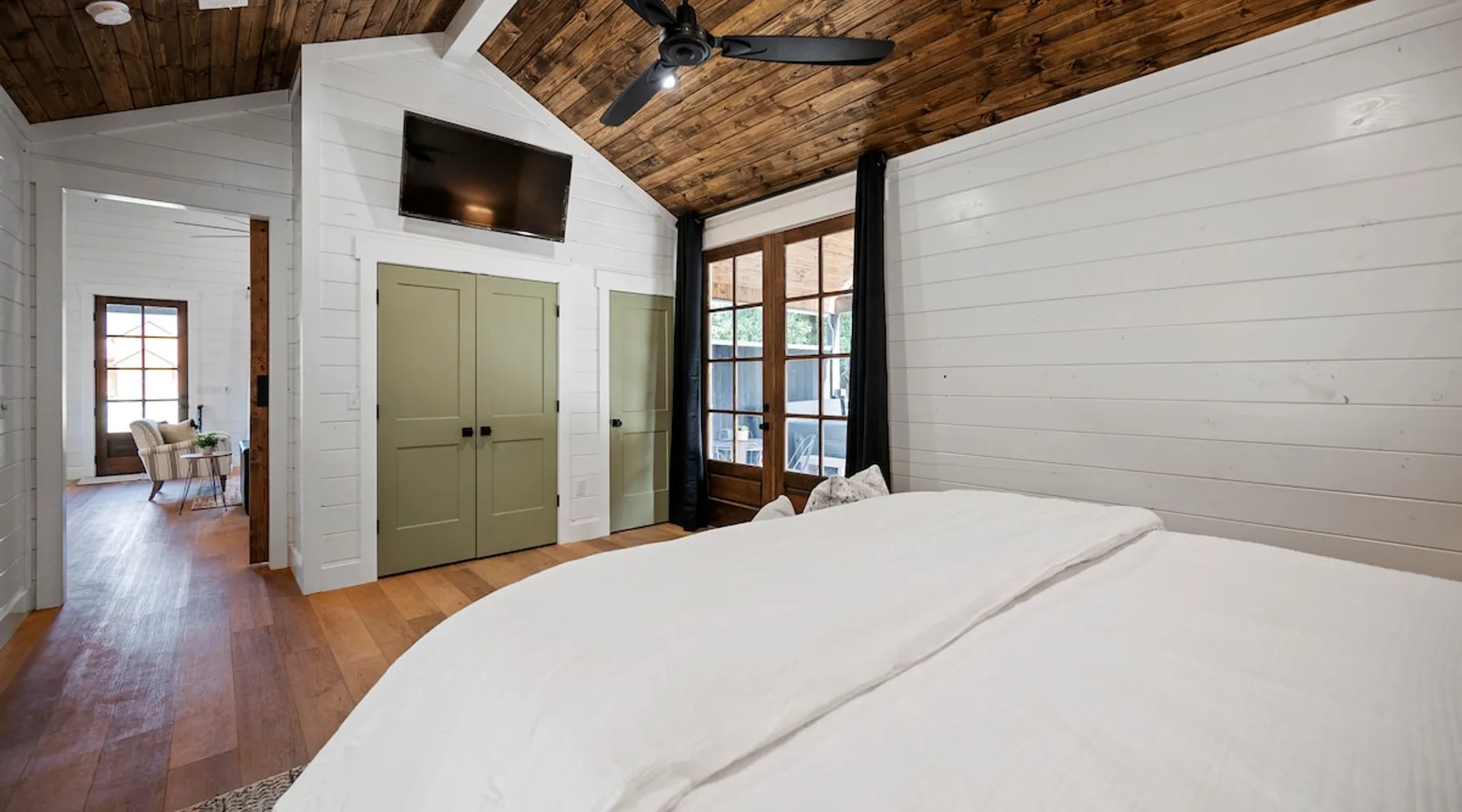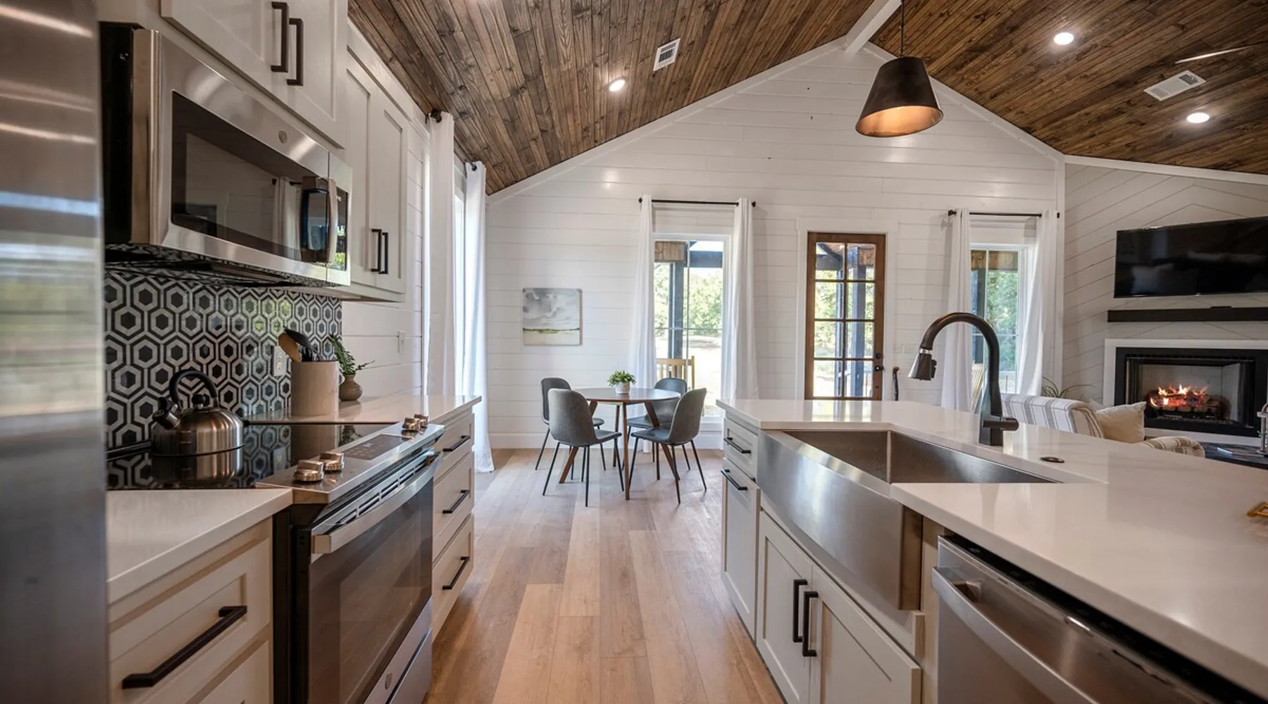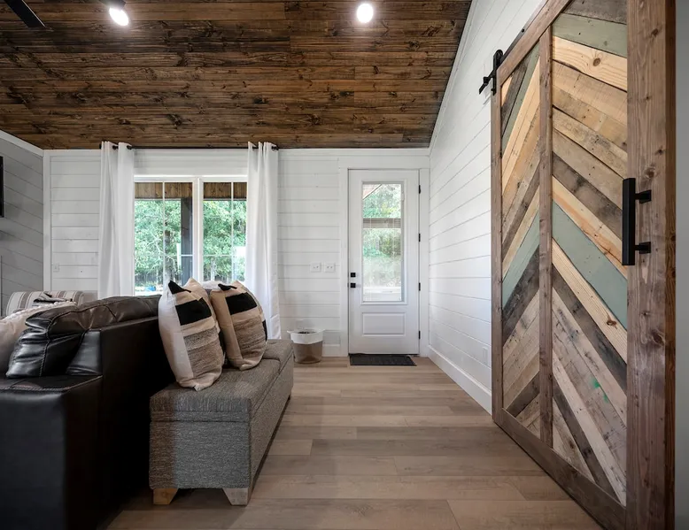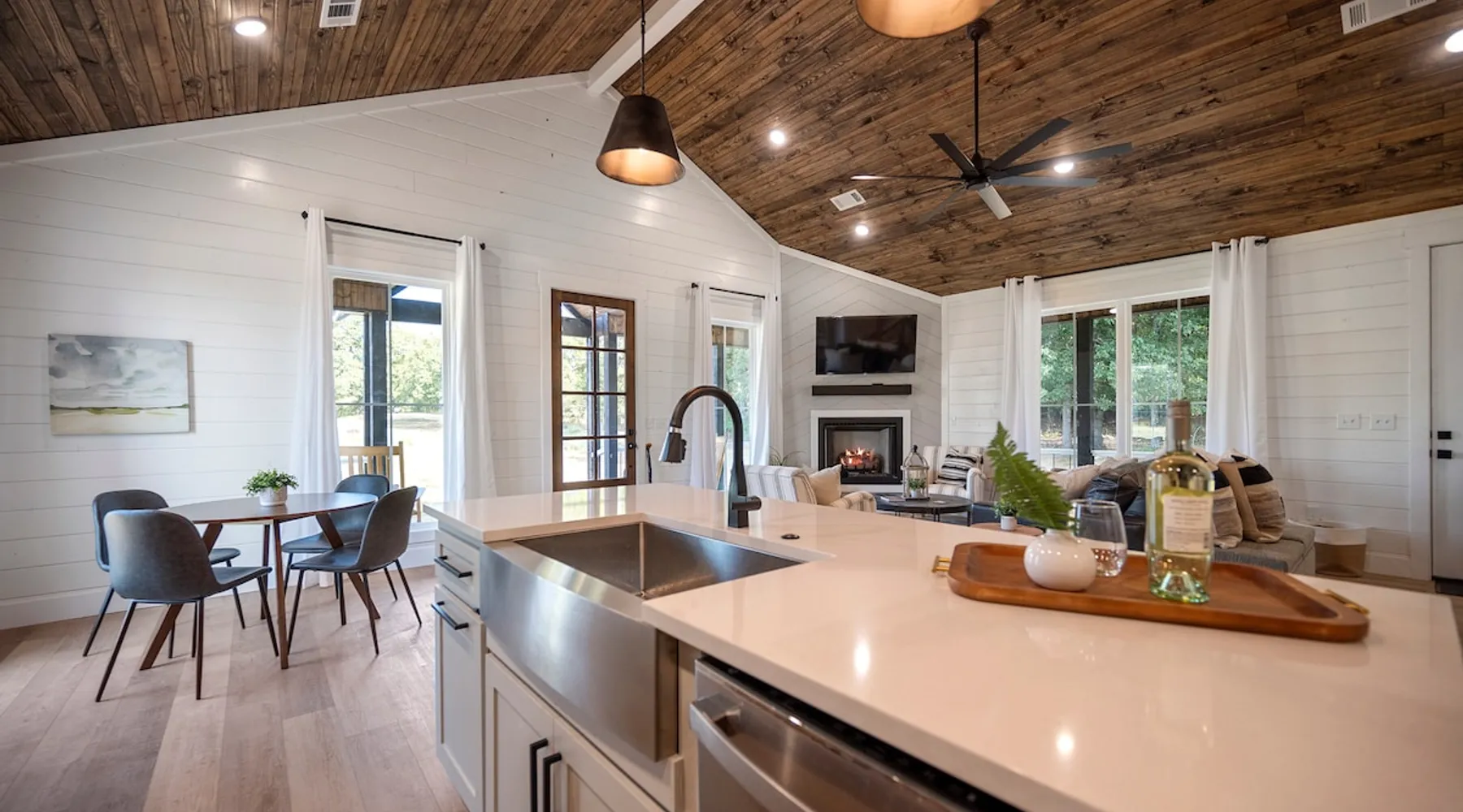 🏡 Welcome to 2 Hearts Cabin Experience a modern getaway with a charming farmhouse feel at 2 Hearts Cabin in Broken Bow. The cabin offers a range of amenities to ensure a relaxing stay, including a hot tub, a gas grill, disc golf, fireplaces both inside and out, a luxurious bathroom, and a furnished back deck where you can unwind and enjoy the peaceful surroundings. The space 🛋️ Living Room Relax in a spacious and inviting living area featuring: Large sleeper sofa Two comfortable chairs + two poufs Bench seating behind the couch Gas fireplace Big-screen HDTV for movie nights 🍽️ Kitchen & Dining Fully stocked for all your cooking needs: Dining table with seating for 4 Kitchen island with seating for 2 Coffee pot & K-Cup machine Kettle, toaster, blender Dishes, cookware, bakeware, grilling tools 🛏️ Bedrooms & Sleeping Arrangements Master Suite King-size bed Nightstands & bench Closet with hangers Direct access to patio Big-screen TV Ensuite bathroom with: Soaker tub Oversized walk-in shower with rainfall showerhead Private toilet Bunk Nook Twin-over-twin bunk bed is located just off the kitchen Ideal for kids or extra guests Adjacent to a half bath 🌳 Outdoor Features Enjoy the great outdoors without leaving home: Disc golf Furnished back deck with seating for 4 Outdoor gas fireplace & big-screen TV Hot tub Gas grill (hard-lined to the main tank of the property) Fire pit with seating for 4 Front porch rocking chairs. 🐾 Pet Friendly Up to 2 dogs under 50 lbs. each $125 per pet fee applies. 📌 General Information Full-size washer & dryer Seasonal fireplaces: Available Oct–May 15 Surveillance: Exterior cameras face entrances only, monitored at check-in for occupancy compliance Free Wi-Fi Max occupancy: 6 guests – NO EXCEPTIONS Guest access Entire Cabin Other things to note It is located near all the best restaurants, activities, and park amenities. It is just a short drive to Broken Bow Lake, Beavers Bend State Park, popular hiking trails, restaurants, breweries, wineries, and downtown Hochatown, and access to all the outdoors activities you want – boating, hiking, fly-fishing, kayaking, zip-lining, ATV trails, horseback riding, Cedar Creek Golf Course, Choctaw Landing Casino, mini-golf, helicopter rides, mining for gold, train rides, go-carts, and a great petting zoo. Don’t forget these items when you come to visit: • Rain gear and light jackets (Our average rainfall is 55″-60″ each year). • We have beautiful scenic trails; good hiking boots are a must. • Water shoes for our vast shorelines and streams. • Insect repellent, sunblock, and other first-aid supplies. • Coffee and filters – enjoy this while sitting on the deck in the early morning. • Condiments - A starter supply of coffee/filters, paper towels, toilet paper, bath soap, dish soap, dishwasher tablets, trash bags, and laundry soap is provided. Still, guests may need to bring additional supplies. For your convenience, we can help you arrange: • Special requests (i.e., flowers, wine, etc.) • In-cabin chef recommendations • In-cabin massages recommendations If we are missing something or you have a question we haven't answered, please feel free to reach out to us directly at Bravo Cabin Rentals and we will personally respond as soon as possible. We look forward to making your next vacation in Broken Bow/Hochatown one you won’t forget!