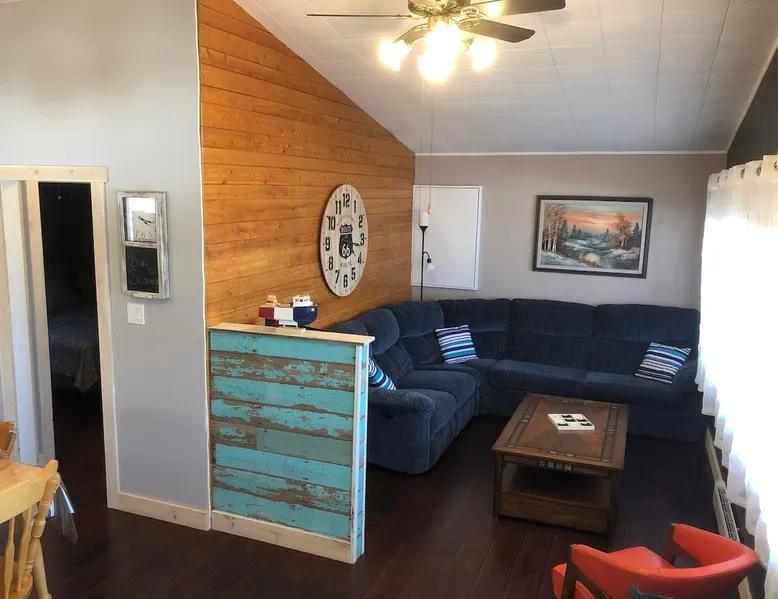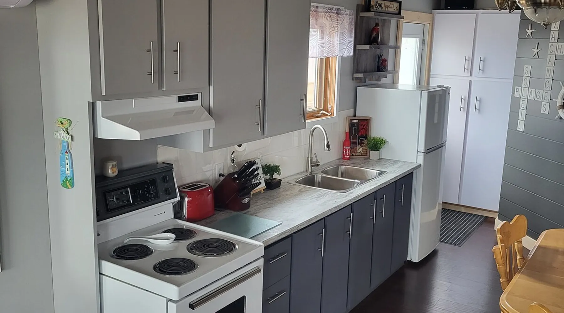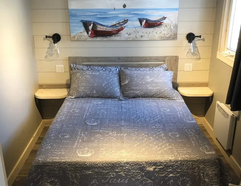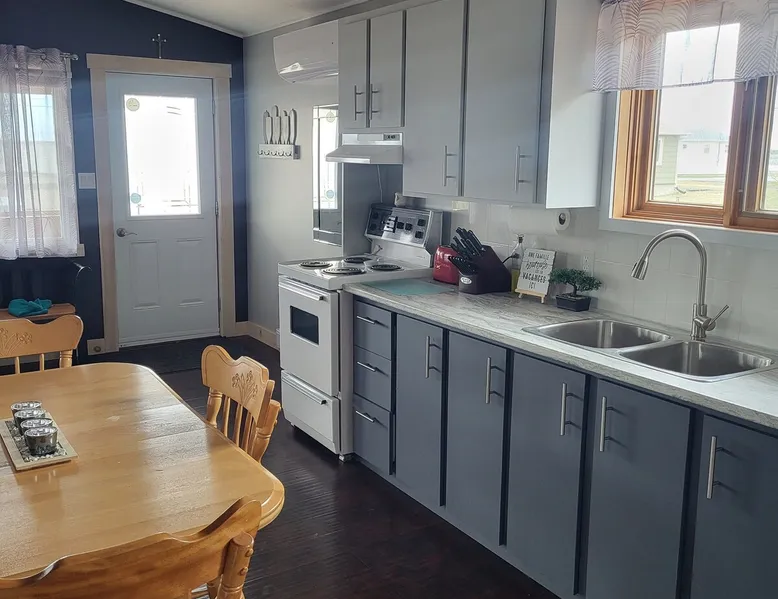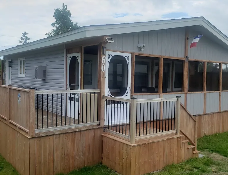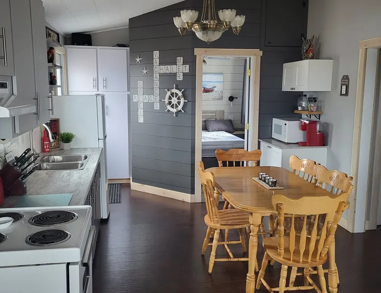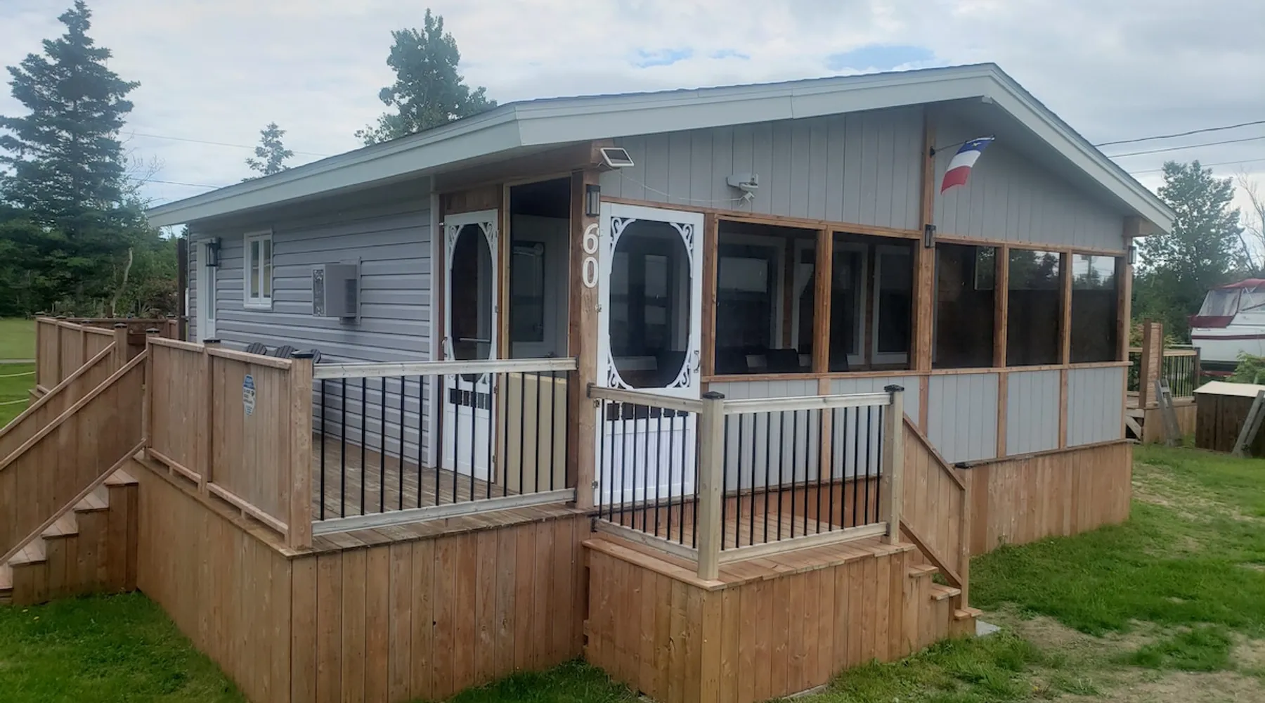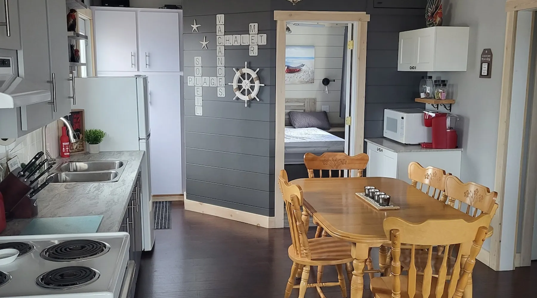 Warm, serene and 3 km from the city. With sea views but without direct access, you will still hear the sound of the sea and can savor its salty scent when you are on the large patio with a large mosquito net area. However, access is possible, very close at the end of the street. There is also a space to make a fire to liven up your evenings. Whether it's to enjoy the sun, the stunning sea views will make you dream long after you leave. The space The chalet has a beautiful sea view and is 2.8 km from the Shippagan footbridge and 3.2 km from the city. A 32-inch Smart TV with Netflix is in the living room. The sofa bed is a 54-inch. Outside on the balcony, it has a roof and a mosquito net (gazebo), a picnic table and chairs to enjoy the sun. Guest access laundry room with 2 coin-operated washing machines ($1.50) and 1 dryer ($2.00) that you will share with the tenants of cottage 2; you have a clothesline available at the cottage