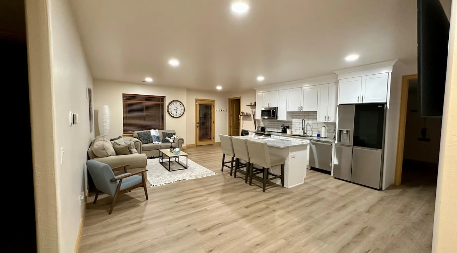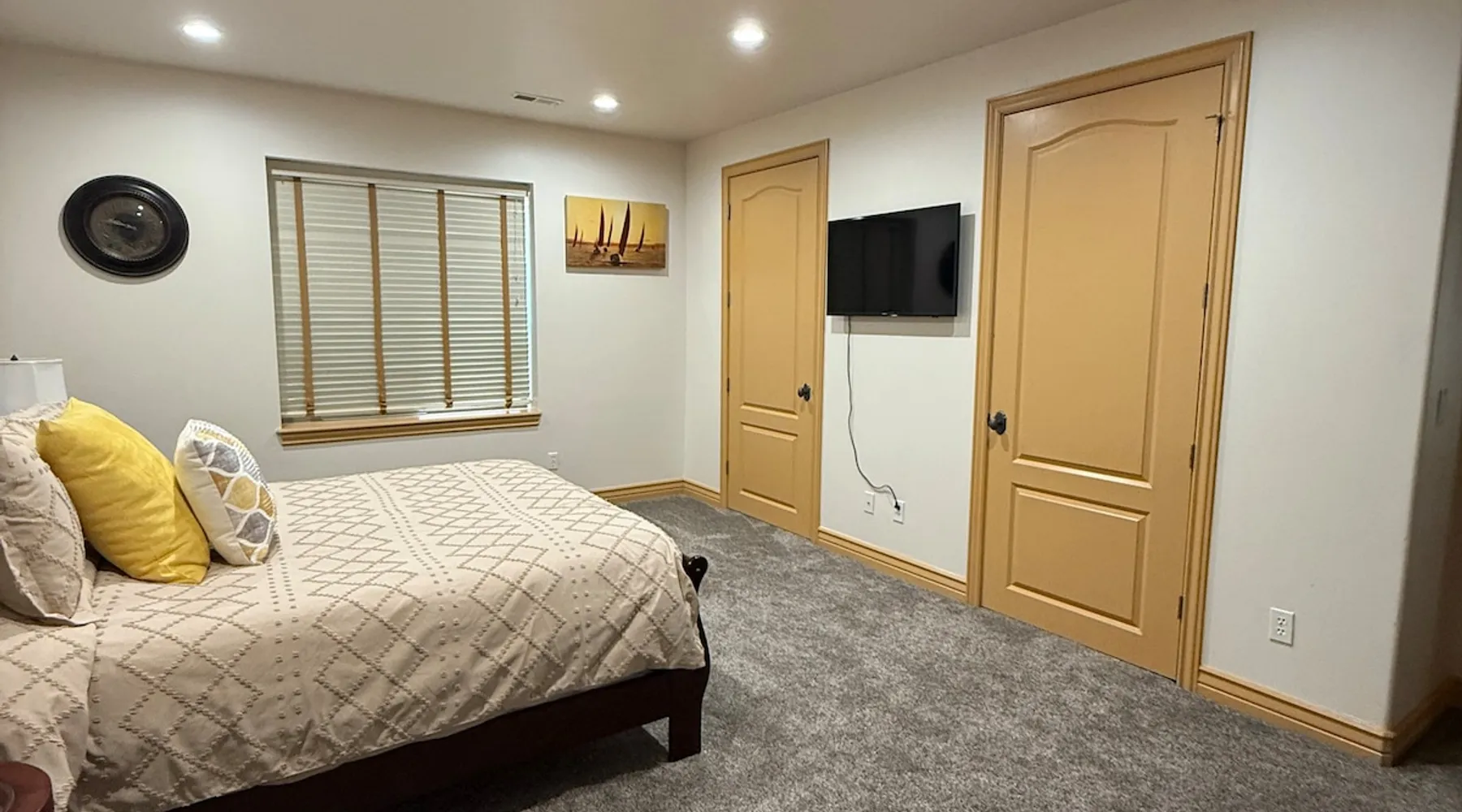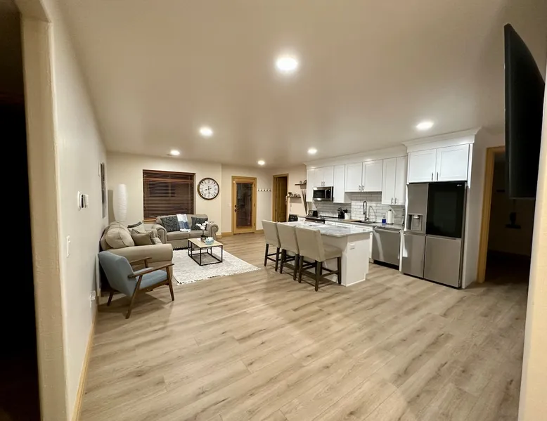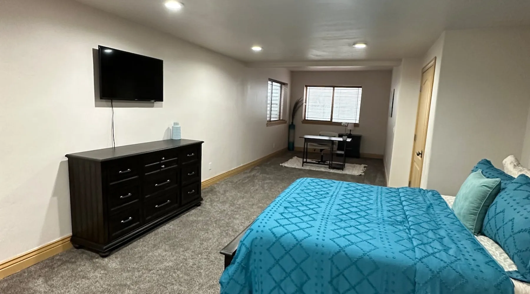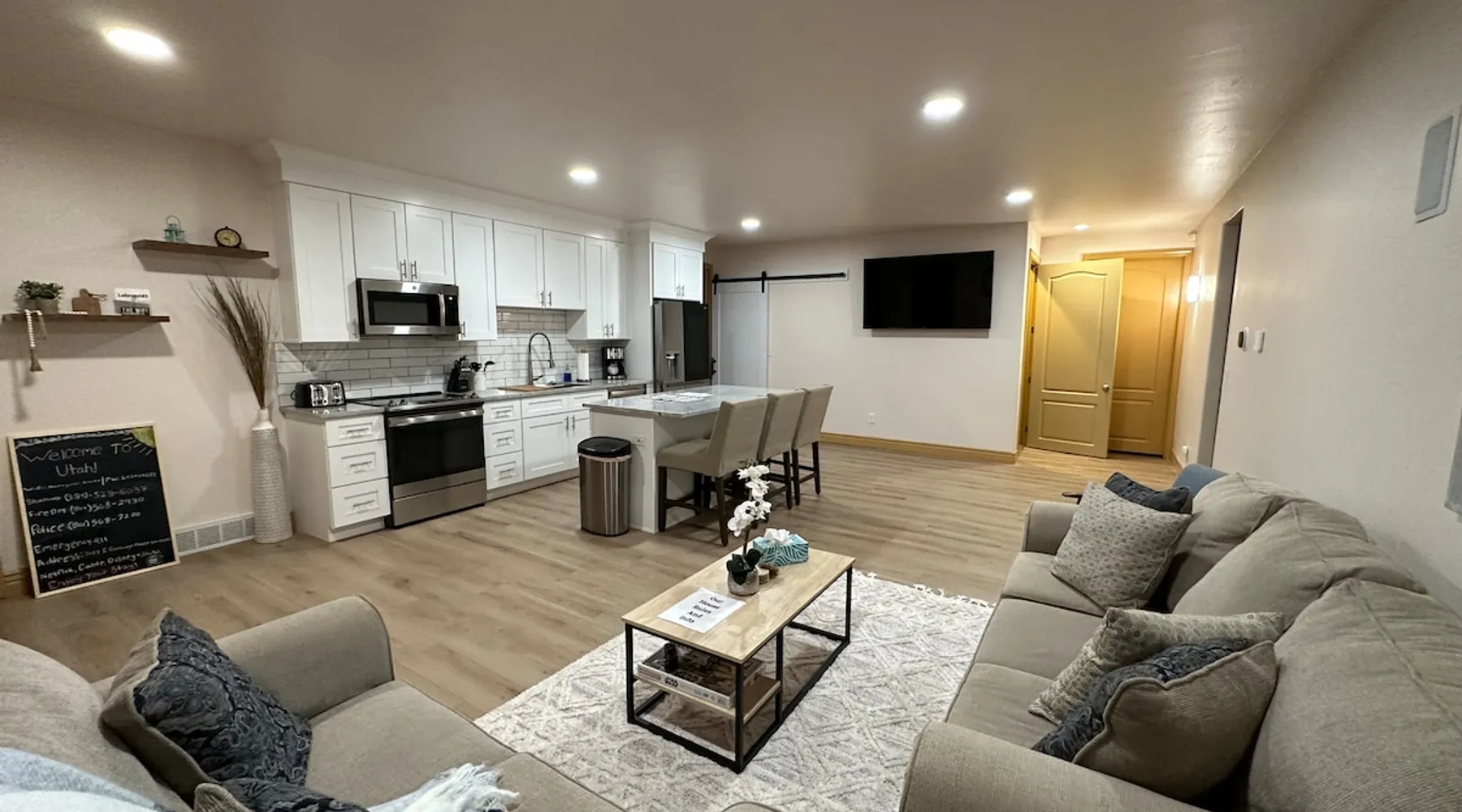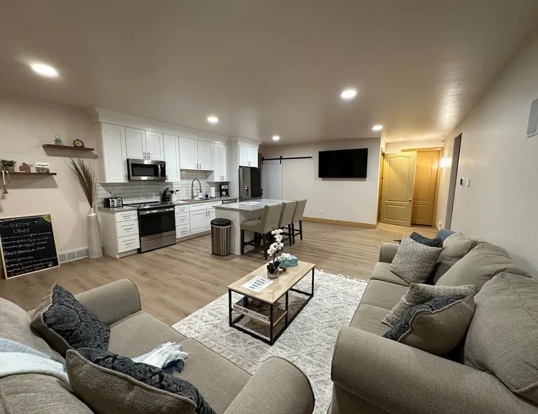 Welcome to our newly renovated basement apartment! Spacious, modern 3BR/2BA basement apartment in Sandy, Utah—2,500 sq ft with private walkout entrance. Sleeps 8. Located near the base of Big & Little Cottonwood Canyons with a bus stop just steps away for easy mountain access. Enjoy mountain views, updated finishes, and walkable access to restaurants, grocery, Starbucks, and more. Perfect for skiers, hikers, families, couples, tourists and remote workers looking for comfort and convenience! The space This spacious 2,500 sq ft basement apartment features its own private walkout entrance and offers a full 3-bedroom, 2-bathroom layout. The space includes a modern full kitchen, full laundry, and a large living area, perfect for relaxing after a day of adventure. Everything is newly updated with clean, modern finishes. Guests will enjoy street and wraparound parking, making access easy and convenient. The basement apartment feels more like a full-sized home! Guest access Guests will have access to the entire basement level of the home (approx. 2,500 sq ft). This space is not shared and includes a private walkout entrance. The basement features 3 bedrooms, 2 full bathrooms, a full kitchen, laundry room, and living area. Street and wraparound parking are available. The upper floor is occupied by other residents, but your space is fully separate.