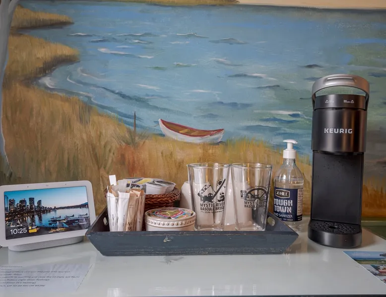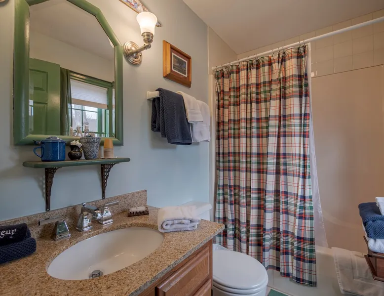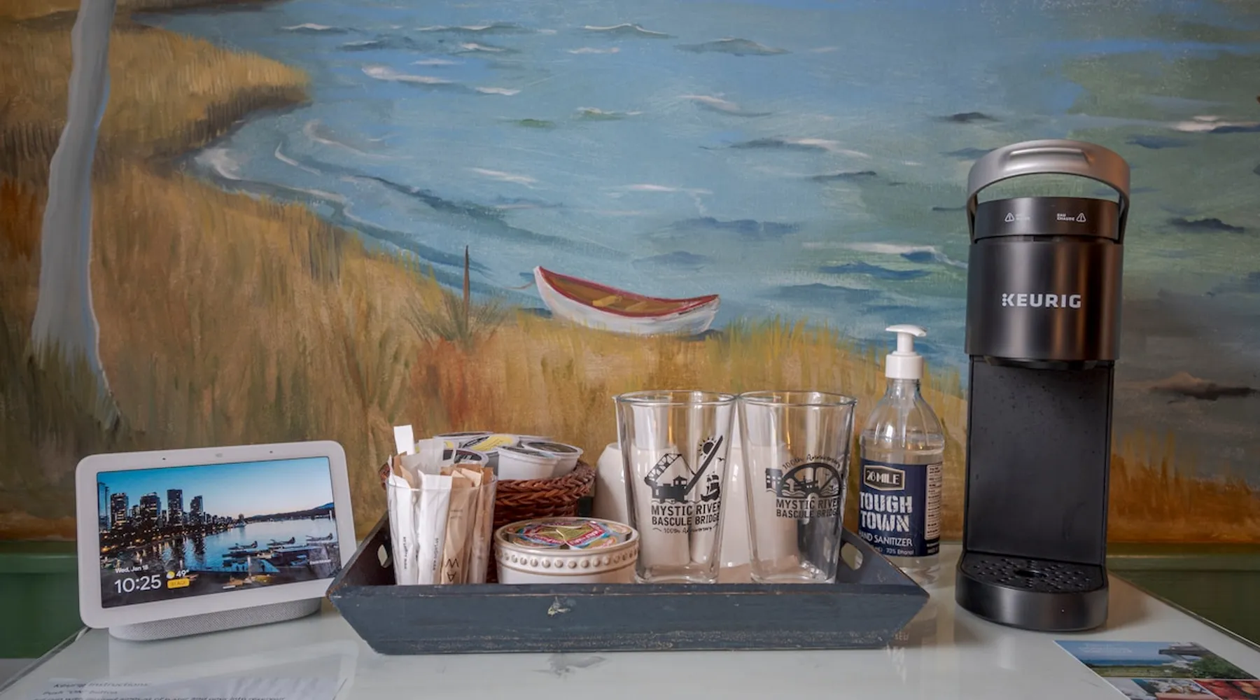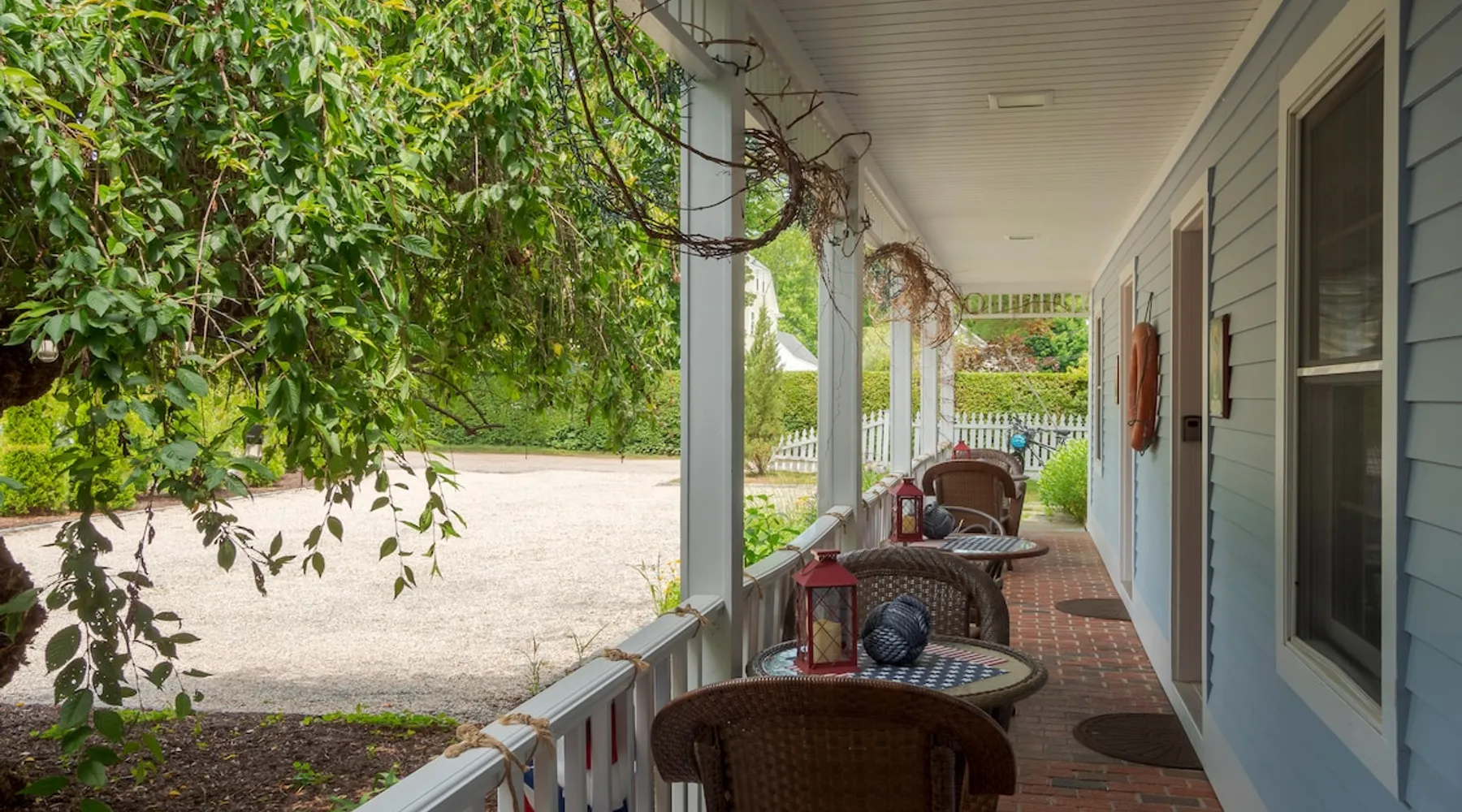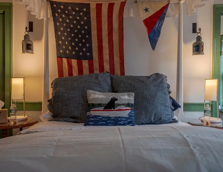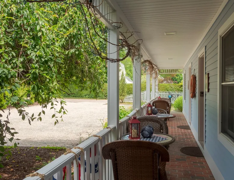 The Carriage House in the peaceful hamlet of Old Mystic near the Head O’ the Mystic River is a 2-mi drive to Mystic Seaport Museum, shops, and restaurants! This lovely property offers 4 uniquely themed private bedchambers, reserved separately, with private baths and entrances. Sleep soundly on a comfy queen pencil bed, dressed in lovely linens, and wake up rested to a beautiful mural- careful attention to every detail with you in mind! 4-legged "Salty Dogs" are welcome, too! Come, sit, stay! The space We promise you will feel cared for the moment you walk through the door- from the warm welcome to a specially prepared bed- made just for you! The front windows of this bedchamber overlook the gardens and gazebo. The field and stone walls out back are a lovely view, too. Whether traveling alone or with a 2-legged or 4-legged companion, you will enjoy this cozy room, perfect for the sailor in your heart. During your stay, you will have a mini fridge for your perishables and a Kuerig for your morning cup. Enjoy the bustle of downtown but come back to the peaceful, quiet Old Mystic Village- a charming New England Hideaway- a true "Sailor's Rest" So what are you waiting for? :-D Carriage House Bedchambers: 1. The Life Saver Room- a private bedchamber 2. The Salty Sailor Room- a private bedchamber **This Listing** 3. The Chandler- a 2 BR apartment upper lever 4. The Rigger's Retreat Room- a private bedchamber 5. The Whaler's Welcome Room- a private bedchamber The four 1st-floor bedchambers and the 2nd-floor apartment can accommodate up to 14 guests. In addition, we can offer our adjacent properties for family reunions, wedding guests, and retreats! We can accommodate 38 guests in our three uniquely themed properties in Old Mystic! Oh, the possibilities! ***The Salty Sailor's Room is for this particular listing*** BEDCHAMBER AMENITIES: ~ Nautical-inspired decor and hand-painted murals. ~ En suite bathrooms ~ Beautiful linens ~ Smart TVs with Roku Stick ~ Mini-fridge ~ Keurig Coffee make with K-cups, cream, sugar, tea, and creamer ~ High-speed internet (Two AmpliFI Instant Dual-Band Mesh WiFi Routers) ~ Alarm clocks with sleep sounds ~ USB charger ports on each side of the bed ~ Sitting area for two ~ Worksurface (if you must!) ~ Seasonal gas fireplaces in The Life Saver, The Whaler's Welcome, and The Rigger's Retreat rooms ~ Complimentary toiletries ~ Closet and hangers for hanging clothes ~ Iron and ironing board ~ Picnic blanket ~ Picnic basket ~ Two beach towels GUIDELINES FOR BRINGING 4-LEGGED GUESTS Dogs ONLY 2 small dogs or 1 medium dog MAX Our fee is $40/pet, which will be requested with your confirmed reservation. We charge a $40.00 pet fee/pet. We hope you find this fee fair and reasonable as we take on additional responsibilities by adding furry guests to your reservation. To ensure a smooth experience, we ask owners to bring along their dogs with the following understanding. 1. Dogs are 100% house-trained. Traveling dogs can get anxious and confused, causing accidents even for a house-trained dog. ***If your dog pees inside, this will cause a great deal of confusion for future dogs staying as they may pee on top of your dog's pee, causing upset for everyone. When arriving, please immediately introduce the yard to your dog to establish where the potty is located.*** 2. Pets are well-behaved and good-natured **NO aggressive dogs allowed** 3. Pets are not left alone in the Sailor Room- given the nature of the shared property, barking dogs will cause disturbance to other guests staying in adjacent guest rooms. 4. Owners clean up outside after their pets 5. Owners keep their pets on a leash when appropriate, as Mystic is a busy place. Behind our property is a great field to walk your dog! We've had wonderful experiences accommodating traveling pets! However, if your pet damages any property, we will use your security deposit to cover the cost. (though this has never happened yet:) If you're considering bringing your dog and are fine with the pet rules/guidelines, please confirm you have read and agree to the rules in your booking message to me at the time of confirmation. We look forward to having you stay! Warmly, Debbie (and Paul too:) Guest access You'll have your own charming bedchamber and a private bathroom with a private exterior entrance. The outside firepit and parking are shared with other guests. You'll receive your thorough check-in instructions three days before arrival (or straightaway if booking less than three days), and you'll receive your keypad code 24 hours before check-in time (or sooner if you reserved a last-minute getaway:). During your stay My husband and I live in Mystic, a 5-minute drive from Old Mystic. Even though you are set up for self-check-in, you may see one of us around watering plants, taking out trash bins, etc. But rest assured, we are harmless and will respect your space and privacy. If you seek answers, would like suggestions, or even meet us, we are here for you and delight in sharing this lovely little village with visitors! We are always available by phone or text, so please reach out if you need anything! Other things to note We also have guests who stay in our front red property, the 1784 Denison Home. We ask that you park in front of the Carriage House property and the other guests park behind the Denison Home. The Sailor's Room is our four-legged "Salty Dog" friendly room. Small and medium size dogs only. Please read all pet guidelines in our "House Rules" section and House Manual. Kindly send me the code word to let me know you are OK with our pet policy. You'll receive detailed check-in instructions three days before arrival- please read all check-in and keypad instructions carefully. We are pleased to welcome you and look forward to hosting you soon!