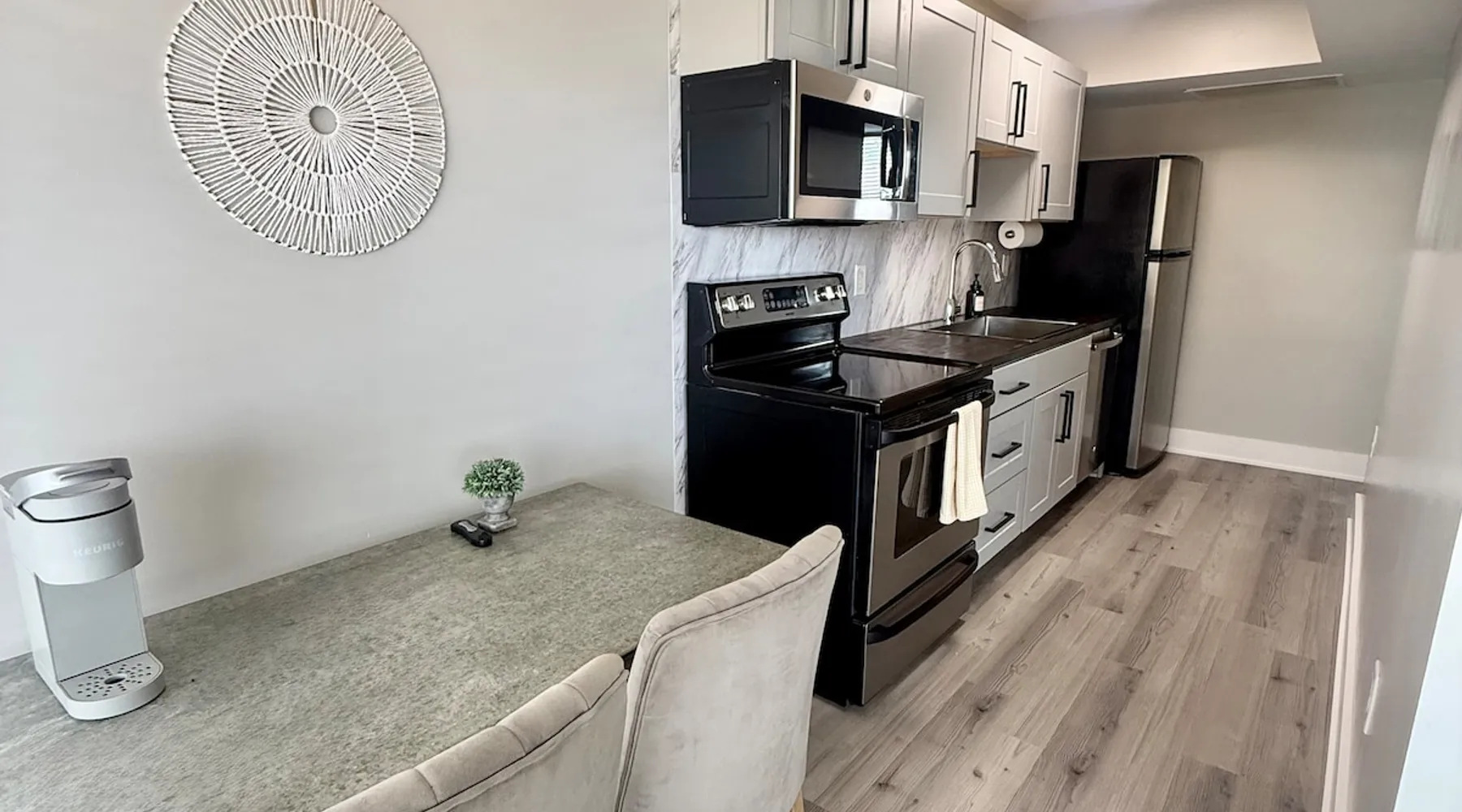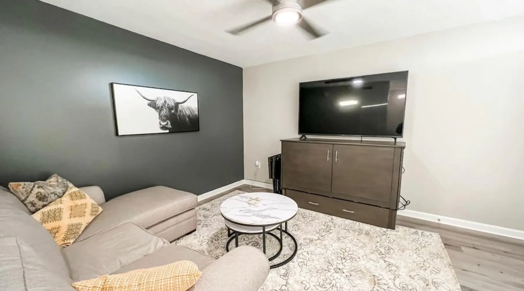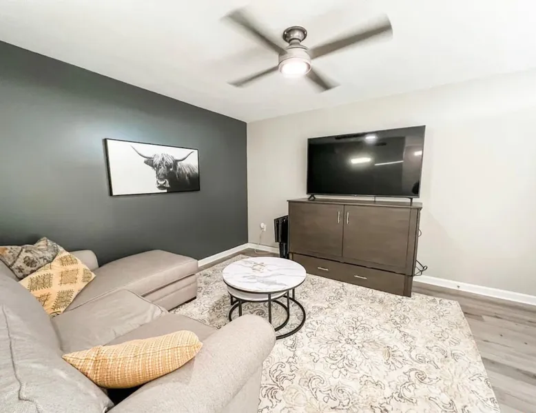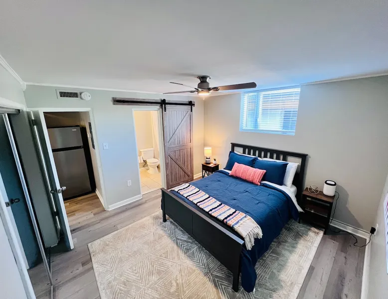Enjoy the phenomenal views of the Magic City from this stylish condo with a fully stocked kitchen, washer/dryer plus FREE parking. Spend an evening in the Lakeview District, or walk to several amazing restaurants and bars, grab some coffee a block away, or make a home-cooked meal. The location is even highly convenient to downtown hospitals if you're a travel nurse. Don't miss out on this amazing condo! Explore downtown Birmingham from the Magic City Overlook 310! The space Looking for a comfortable stay in a convenient location for your next work trip, holiday, or conference? This newly renovated, spacious apartment is the perfect place for couples, medical professionals, and business travelers. It is just a short drive to popular restaurants, many bars, and great attractions. 5 Min Drive to UAB 5 Min Drive to Protective Stadium 5 Min Drive to Sloss Furnace 8 Min Drive to Birmingham Zoo Walk to St.Vincents Hospital Fun and Food! Walk to The Refinery, Slice Pizza and Brewhouse, Umami, Hattie B's Chicken, the famous Bottega, Rojo, Ohenry's Coffee and more! The space KEY FEATURES: ☀ Downtown skyline views ☀ 1 Queen bedroom ☀ 1 Queen Murphy Bed (in living room) ☀ 1 bathroom with bathtub/shower combo ☀ Spacious kitchen with stainless steel appliances + coffee station ☀ Living room with 55” TV ☀ Dog-friendly ☀ Washer and Dryer ☀ Dogs are allowed up to 50 lbs upon approval and a maximum of 2 dogs per stay. Dogs must be listed on your reservation with a description and a pet fee of $20/dog per night will be added after the booking is confirmed. NO CATS OR OTHER PETS ARE ALLOWED IN THE APARTMENT. Here Are A Few Kind Words From Our Past Guests: ☆☆ BEDROOM ☆☆ The bedroom in a neutral gray and cream theme is impeccably furnished with a comfy queen-size mattress, premium linens, and plenty of pillows to ensure a sound night’s sleep. A table, lamp, and outlets are on each side of the bed so you can read well into the night and charge your devices easily. The living room TV console converts into a queen sized Murphy Bed! It appears as beautiful chest, then it opens up to provide a queen-size sleep system made up of an upholstered base pad with a folding cool gel memory foam topper to provide our guests with very comfortable sleep. A comfortable sofa in the living room can accommodate an additional guests if someone is ok with flying the couch! ☆☆ BATHROOM ☆☆ The full bathroom is brightly lit and has a spacious countertop and large vanity mirror. The shower and tub combo means you can bathe as you prefer. The bathroom is stocked with plush towels and basic toiletries for your convenience, including soap, shampoo, and conditioner. The washer and dryer is also located in the bathroom ☆☆ KITCHEN & LIVING ROOM ☆☆ The open concept design of the kitchen and living room makes for a generous common area for all occupants. The modern kitchen is equipped with an electric oven and cooktop, microwave, stainless steel refrigerator, and all the cutlery, cookware, and utensils you need to whip up a delicious meal during your stay. A small dining area with settings for two people is located in a nook in the kitchen. Feel free to enjoy the coffee station with the Keurig machine with provided coffee pods and fixings to get your morning caffeine hit. The living room is furnished with a comfortable couch Sit back, relax, and watch your favorite shows or movies using the 45” TV, which includes access to Youtube TV. Or, get out your laptop and get some work done using the high-speed WiFi. ☆☆ OUTSIDE SPACE ☆☆ The apartment is in an lovely neighborhood where you can enjoy lovely morning or evening strolls to admire the historic homes in the area. The main entrance has access to a patio with seating that overlooks the Birmingham skyline. ★☆ Book Today For a Memorable Stay in Birmingham! ☆★ Guest access This recently updated condo will be privately enjoyed all to yourself. Feel at home and utilize all the supplied essentials and amenities, including kitchen equipment, in-unit washer and dryer as well as the high-speed Wi-Fi and TV. Free parking is just steps to the front door, and since the unit is on the top level, you WILL have to navigate stairs. Additional cars may park on the street just steps from the building. Other things to note To abide by all legal requirements and building security rules, you may be asked to provide a copy of your official government-issued photo ID, confirm your contact information, provide a valid credit card with a name that matches your ID and pass through our verification portal. Important note: The information is collected for screening and verification only and is not stored or used for any other purposes. Please be advised that all guests will be asked to sign a rental usage agreement that governs the terms of the stay. By completing the reservation you agree to the following: You agree to be bound by our rental terms and conditions. You acknowledge that you will be required to provide a copy of a valid government-issued ID and matching credit card prior to check-in. You understand that your check-in instructions might be withheld until you have successfully completed our verification portal.