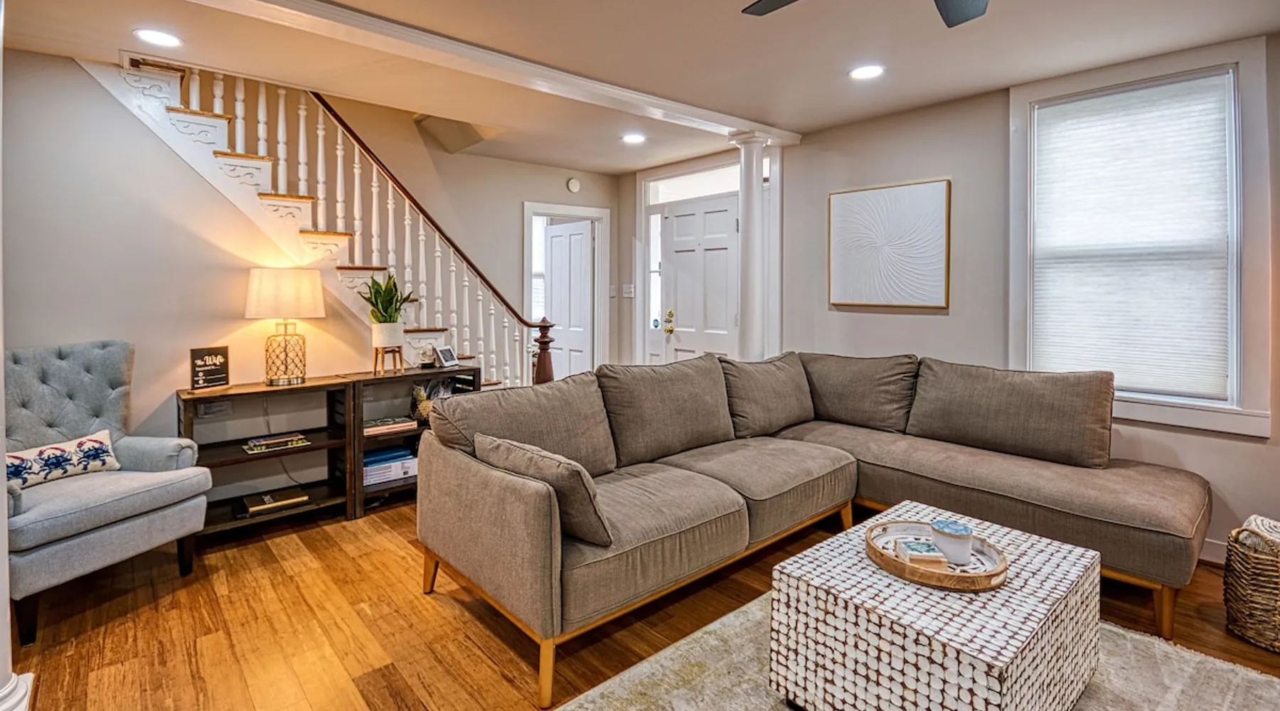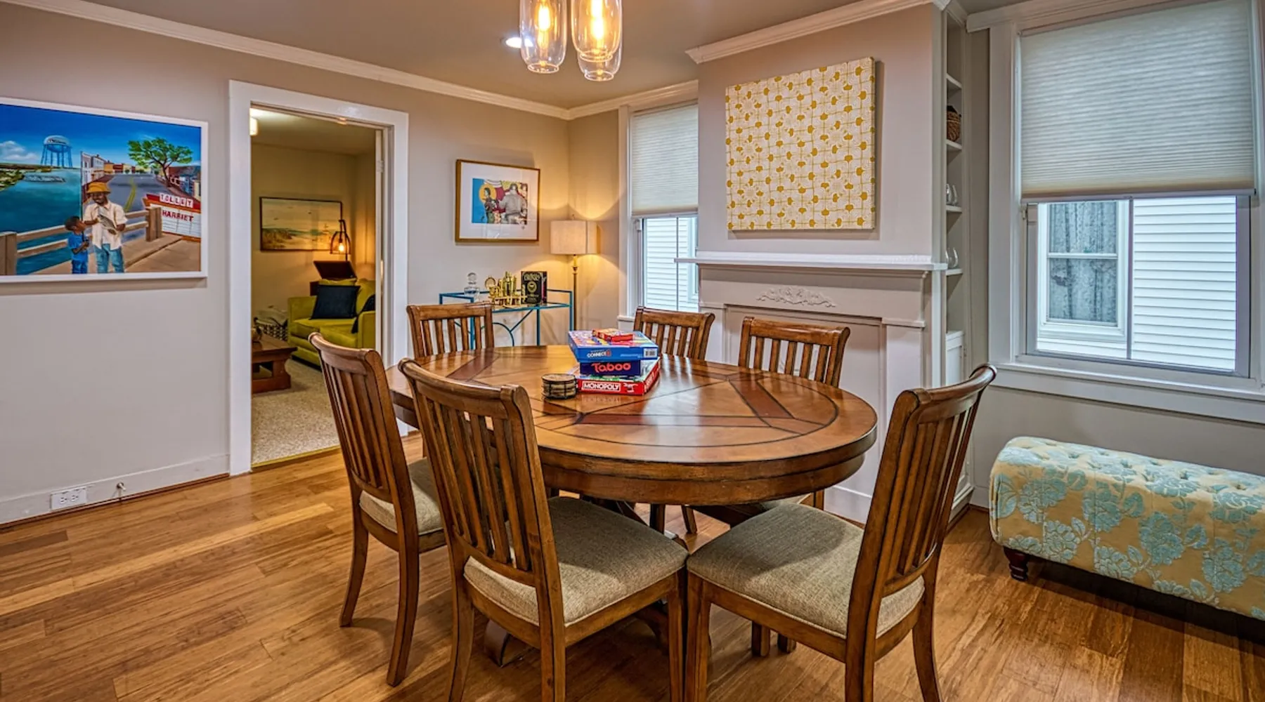 Step out the front door to take in the view of and feel the refreshing breeze off of the Choptank River. Built in the late 1800s and nestled in Cambridge's Historic District, our home is a perfect mix of original architectural character and modern upgrades, and a short walk to the Marina, historic monuments, and downtown which is lined with restaurants, boutiques, galleries and so much more. You will be close to everything Cambridge has to offer when you stay at this centrally-located home. The space Our house is the perfect mix of historic charm with modern comforts. The decor intentionally includes old and new to honor the age of the house and its upgraded features. The decor gives nods to the rich cultural history and past industries of Cambridge and the eastern shore region. The house has an abundance of windows, allowing natural light to shine through in every room. All three bedrooms are spacious, each touting its own vibe. The reading room/office is the perfect space for those who are working remotely and need a comfortable quiet space to work without interruption. The den is another space in the house where you and your guests can entertain yourselves, perhaps by watching some TV or maybe spinning vinyl on the record player. The dining room table accommodates at least six people, and even more once you add the extension leaf, for when you host your family dinner. It's also a great space for game night! Whether you're enjoying a cup of coffee or a good book, the back porch is the perfect spot, with the sounds of birds as the score. We've designed this house to feel like your home away from home, a place to unplug. Guest access You can access all parts of the house, except the attic.