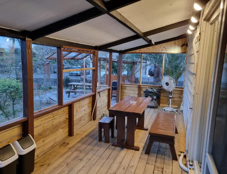 Historic Setting: Amy House in Jeju offers a spacious guest house housed in a historic building. Guests enjoy garden and terrace views, complemented by free WiFi throughout the property. Comfortable Accommodations: The guest house features family rooms with private bathrooms, air-conditioning, and modern amenities. Additional facilities include a washing machine, dining area, and free on-site parking. Outdoor Activities: Guests can utilize free bicycles to explore the surrounding area. The property also provides barbecue facilities, ideal for outdoor gatherings. Local Attractions: Located 14 mi from Jeju International Airport, Amy House is near attractions such as Osulloc Tea Museum (9.3 mi) and Jeju Jungmun Resort (16 mi). Guests will find a stovetop, a refrigerator, kitchenware and a microwave in the fully equipped kitchen. The family room also comes with a barbecue. The spacious family room features air conditioning, a washing machine, a terrace with garden views as well as a private bathroom boasting a shower. The unit has 2 beds.