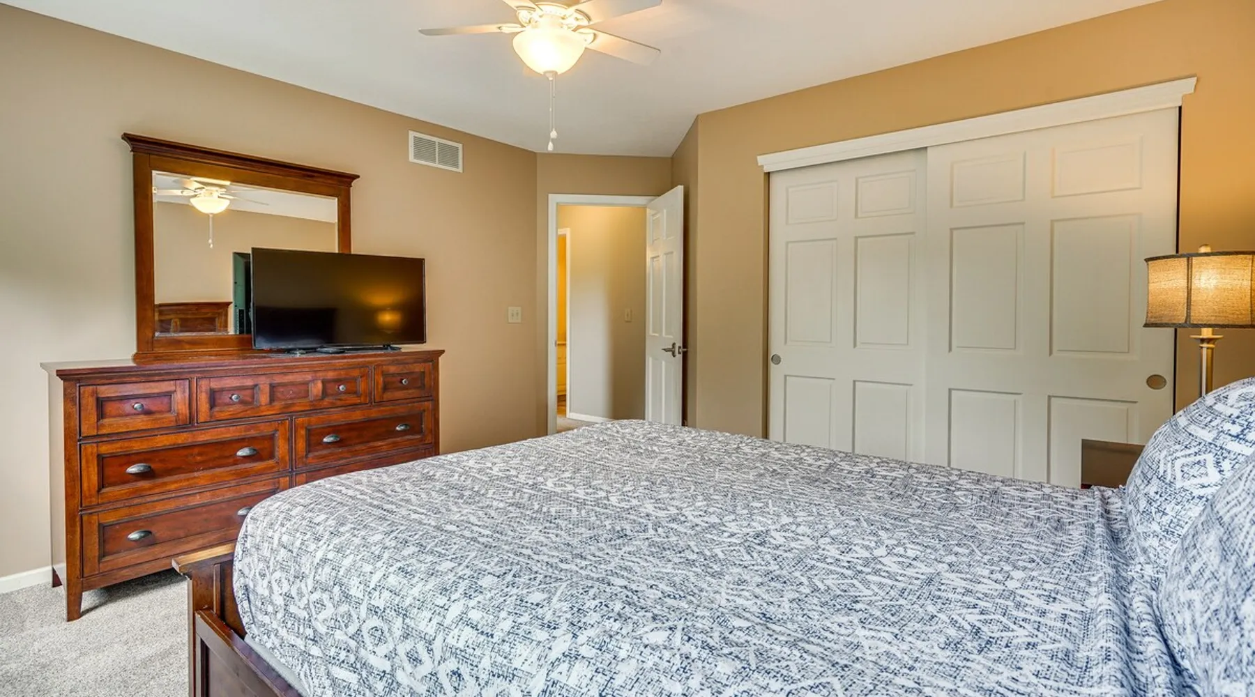 Indulge in the comforts of this charming 3-bedroom, 2.5-bathroom vacation rental during your next Lewis Center visit! Perfectly situated near top attractions like the Columbus Zoo and Aquarium, shopping in Polaris, and The Ohio State University, this home is an ideal base for your Ohio adventures. After a day of exploring, prepare a meal in the fully equipped kitchen and enjoy it on the furnished patio. End your trip by recounting memories around the chiminea with your group! The space Laptop-Friendly Workspace | Free WiFi | 2,390 Sq Ft | Proximity to Shopping & The Ohio State University Bedroom Suite: King Bed | Bedroom 2: Queen Bed | Bedroom 3: 2 Twin Beds | Sitting Room: Full Sleeper Sofa HOME FEATURES: Smart TVs w/ streaming services, dining table, ceiling fans, bar seating KITCHEN: Refrigerator, stove/oven, Keurig coffee maker, microwave, dishwasher, dishware & flatware, spices GENERAL: Towels, linens, complimentary toiletries, central air conditioning, keyless entry FAQ: Stairs required for access, pet fee (paid pre-trip) PARKING: Driveway (3 vehicles), free street parking Guest access Guests will have access to the entire property via keyless entry Other things to note - No smoking - Pet friendly w/ $50 fee (+ fees & taxes, max 2 pets) - No events, parties, or large gatherings - Must be at least 25 years old to book - Additional fees and taxes may apply - Photo ID may be required upon check-in - NOTE: The property requires stairs to access - NOTE: This home lies in a quiet residential community with limited parking and noise restrictions. Please see this as a private retreat and not available for parties. Our nearby property manager will be on hand to ensure you have a great experience