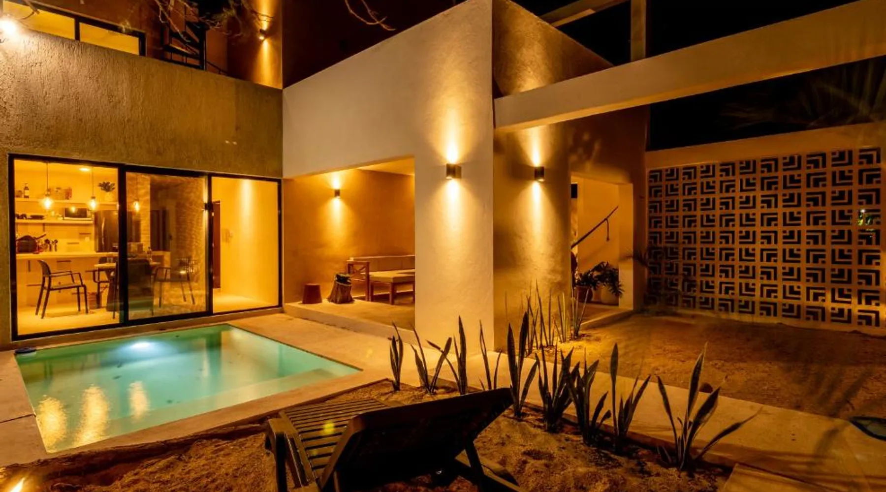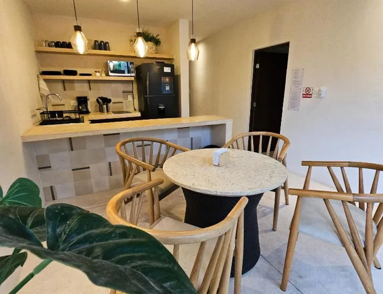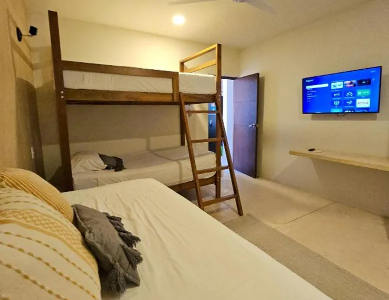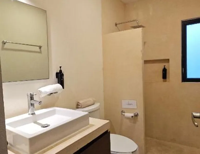 Elegant Holiday Home in Telchac Puerto: Casa Arrayan Telchac offers a serene retreat in Telchac Puerto, Mexico. Guests enjoy a sun terrace, lush garden, and a year-round outdoor swimming pool. Free WiFi is available throughout the property. Comfortable Living Spaces: The holiday home features family rooms, a fully equipped kitchenette, and a private balcony. Additional amenities include air-conditioning, a terrace, and a hammam. Free on-site private parking ensures convenience for all guests. Prime Location: Located a few steps from Telchac Puerto Beach, the property is 42 mi from Manuel Crescencio Rejón International Airport. Nearby attractions include the Telchac Puerto Beach and an inner courtyard view. This villa's special feature is the private pool. Featuring a private entrance, this air-conditioned villa consists of 4 bedrooms and 4 bathrooms with a shower. Meals can be prepared in the kitchen, which is equipped with a stovetop, a refrigerator, kitchenware and an oven. Boasting a terrace with sea views, this villa also provides a coffee machine and a flat-screen TV with streaming services. The unit offers 8 beds.