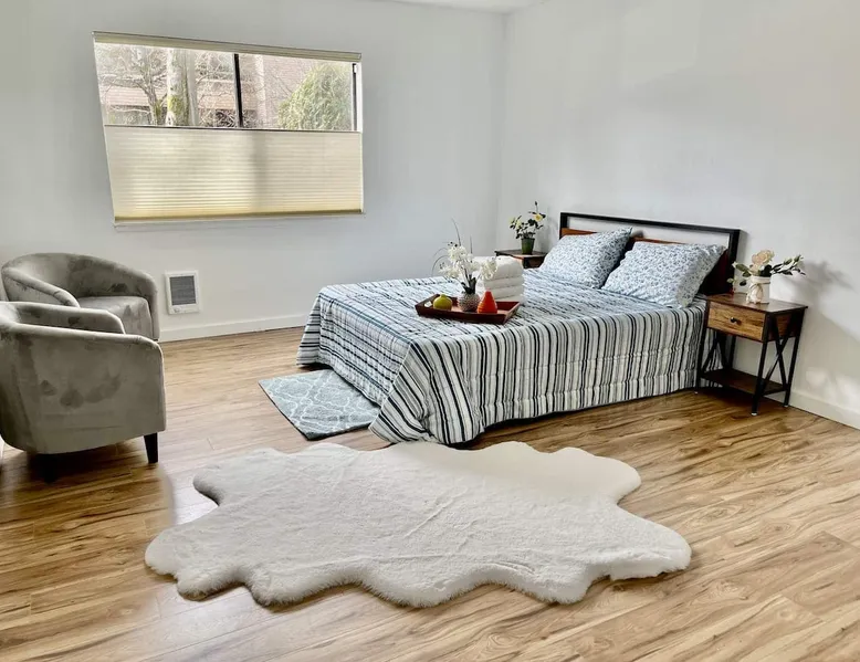 Discover this delightful two-bedroom apartment on Mercer Island, providing a tranquil living experience with convenient access to downtown facilities. Benefit from a peaceful environment near shops and dining establishments, complemented by a private balcony for relaxation. Ideal for families or individuals desiring a combination of comfort and accessibility. The space Step into comfort and modern convenience in this beautifully updated 2-bedroom, 2-bathroom unit, thoughtfully designed for both style and functionality. From the moment you enter, you’ll notice the fresh appeal of new flooring and updated paint, creating a clean and contemporary ambiance throughout the space. The kitchen has been upgraded with sleek granite countertops, offering a polished look and durable surface perfect for cooking and entertaining. Whether you're preparing meals or gathering with friends, this space is both functional and inviting. Enjoy a well-planned layout with two generously sized bedrooms and two full bathrooms, ideal for roommates, couples, or families looking for flexibility and comfort. The living area opens up to a private deck through large sliding glass doors, creating a seamless flow between indoor and outdoor living—perfect for morning coffee, quiet evenings, or simply enjoying fresh air. This unit also includes two dedicated parking spots in a secure parking garage, offering both convenience and peace of mind. The building itself provides added security and is located in a well-maintained complex, making it a great choice for those who value safety and low-maintenance living. To top it all off, this home is equipped with smart home features, including app-controlled lights, curtains, a smart door lock, and a programmable thermostat. These upgrades not only add modern flair but also enhance your day-to-day comfort and efficiency. Whether you're looking for a stylish home base close to everything or a low-maintenance investment with modern amenities, this updated unit checks all the boxes. Guest access You have full access to the entire unit. Other things to note Parking available for 2 spots Available by the app or can call For reservations longer than two weeks, we provide approximately two weeks' worth of supplies such as toilet paper and paper towels. If your stay exceeds two weeks, you will need to purchase additional supplies yourself. For monthly stays, we charge for actual utility usage and request a deposit of $100-400.