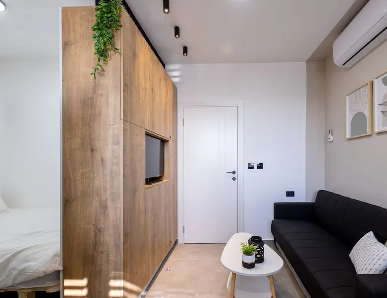 Enjoy a luxurious and meticulously designed studio apartment with thoughtfully considered details. While it's a studio apartment, the space is well-defined and includes multiple areas to relax in. Whether it's on the comfortable and clean bed with soft linens or in the cozy armchair in the living room while watching a good show on Netflix. Additionally, there is a lovely balcony overlooking the quiet street. For cooking enthusiasts, the fully equipped kitchen will fulfill every culinary dream. The space Upon entering the apartment there is a living room with comfortable sofa, coffee table and closet with a TV in the middle. The TV is provided with high power Wi-Fi and Netflix. On the far side of the room is a completely functional kitchen with a gas range and stove top, a beautiful refrigerator with tons of storage space, top and bottom. All appliances are brand new. Near the kitchen there is a folding dining table with 2 stools. The cozy Balcony you can find on the left side of the kitchen. The bedroom has a wall-mounted large screen television, a comfortable double bed and end table with a hanging light. A designer shower/toilet is located right next to the bedroom. Guest access Guests have free access to every part of the apartment. Enjoy :) Other things to note - Perfect location at the center of Beer Sheva. Close to shopping centers, old city, central station (bus, train). - nearby the historic Turkish railway station, there you can find a nice cup of coffee to start the day and a Beer Garden to end the day. - Supermarkets, kiosk, ATM just nearby. - a short walk from Smilansky Street, you will find restaurants, bars, and coffee shops. - a short walk from Technological and SCE college. - a quick bus ride to Ben Gurion University and Soroka hospital. - and more.