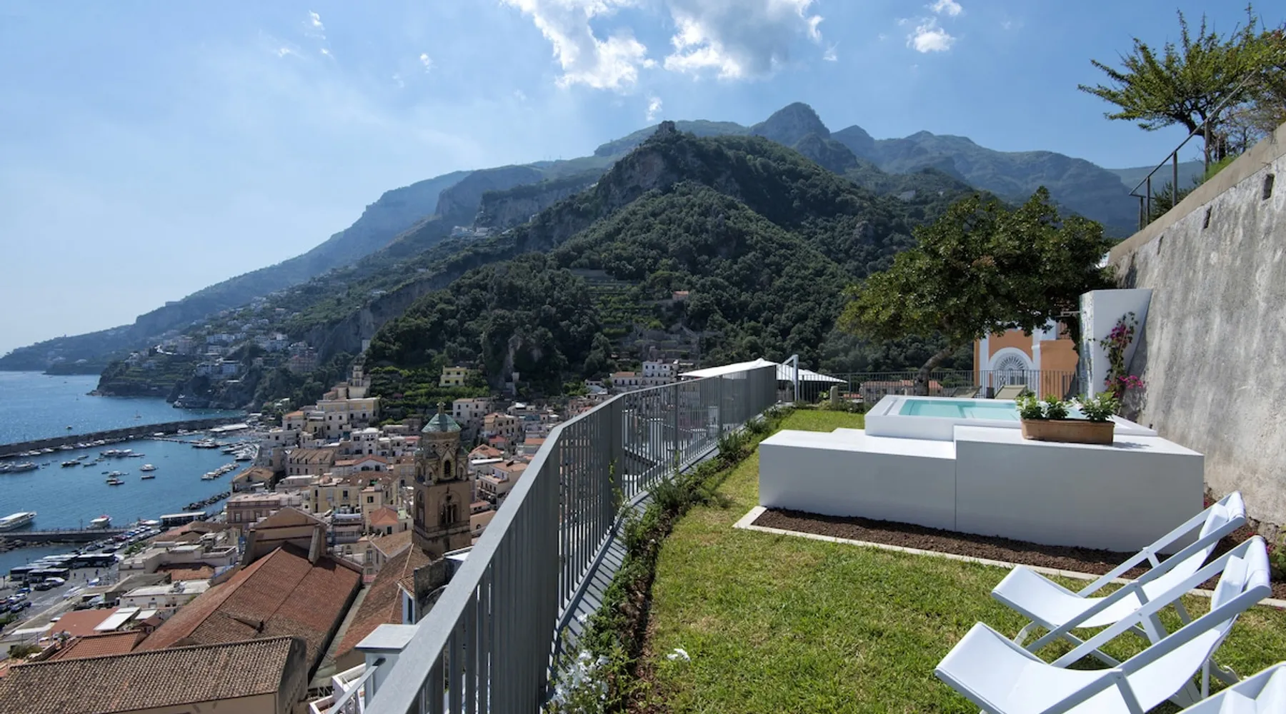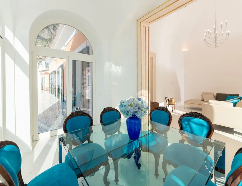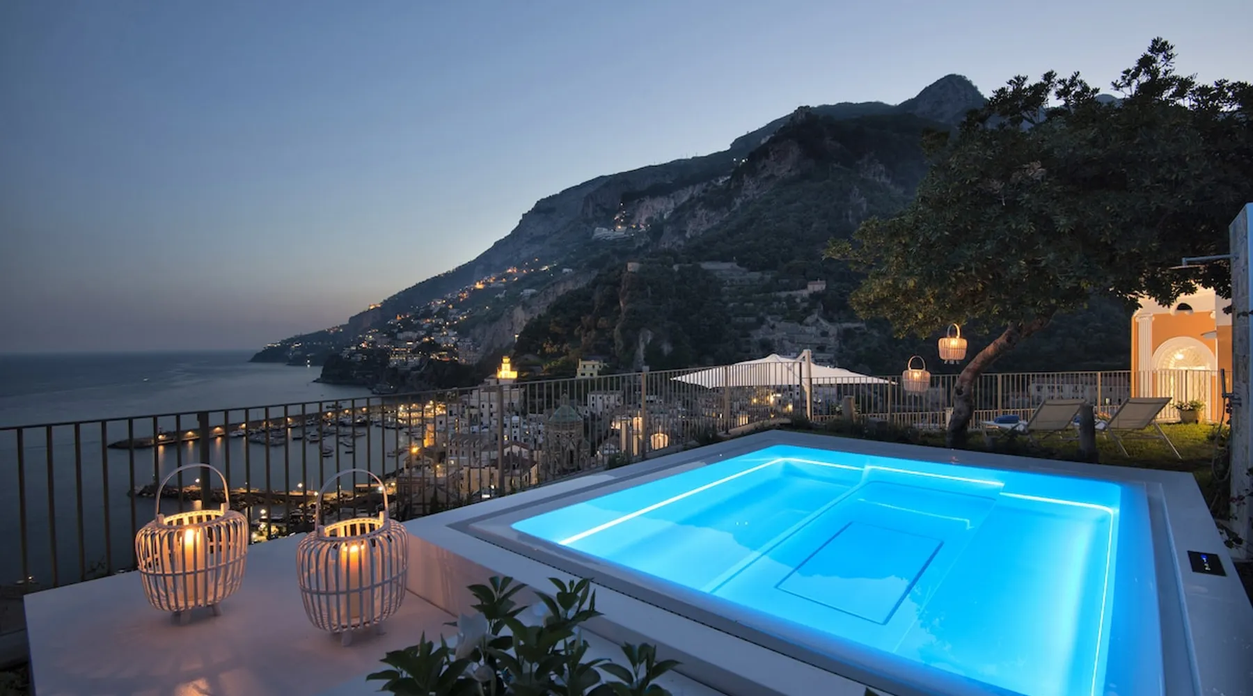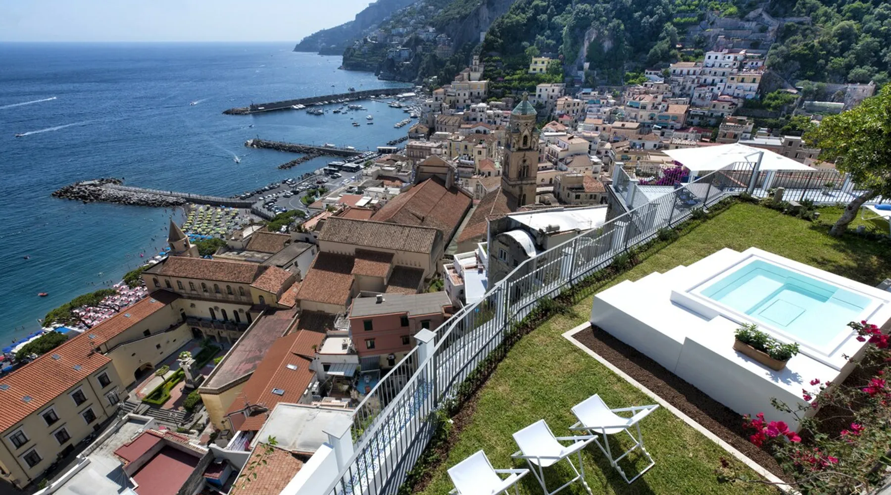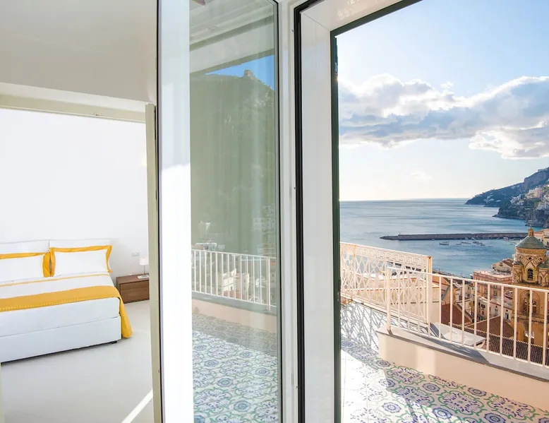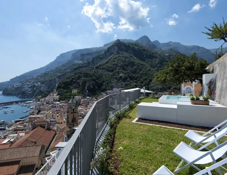Palazzo della Storia Luxuriously finished historic palazzo with elegant interiors, jacuzzi and sea-view terraces, positioned in the heart of Amalfi The space Palazzo della Storia is a remarkable villa, achieving the unusual feat of delivering an ultra-glam experience in a historic 17th-century residence. It’s been part of the same family for almost four centuries and their passion for the property is almost tangible. It’s all the more remarkable for its location, just 300 m from central Amalfi’s Piazza Flavio Gioia. Access to the villa is from the piazza, via 300 steps or in the public lift (from 8 am to midnight). Extending over 300 m², the villa boasts two terraces. Sip your morning espresso, feast al fresco or relax back in the lounge chairs on the first (150 m²) of two terraces, with mesmerising views over the sea and Amalfi town. A second terrace, accessed from the living room, dining room and bedrooms also provides sea views as does the jacuzzi (3 x 2.3 m). Interior spaces are every bit as ravishing, featuring high, vaulted ceilings, exquisite furniture and distinctive Amalfi coast style. Communal spaces include a living room with double doors through to the dining room and a sleek glossy white kitchen with colourful ceramics. The utility room has a guest bathroom with toilet and sink. Not included in the price, to be paid on site in cash: • Tourist tax 3 Euros per person per day, from 1st April until 2n November; children under 10 years do not pay BEDROOMS & BATHROOMS • Bedroom 1 with en suite bathroom: Double bed. Sea views and access to second terrace • Bathroom 1 (en suite): Features handcrafted ceramics. Sink, toilet, bidet, shower cubicle, hairdryer. • Bedroom 2 with en suite bathroom: Double bed. Sea views and access to second terrace. • Bathroom 2 (en suite): Features handcrafted ceramics. Sink, toilet, bidet, shower cubicle, hairdryer. • Bedroom 3 with en suite bathroom: 3 connected rooms including a living area with sofa and two armchairs, and bedroom with double bed, sea views and access to second terrace. • Bathroom 3 (en suite): Features handcrafted ceramics. Sink, toilet, bidet, shower cubicle, hairdryer. • Bedroom 4 with en suite bathroom: Double bed. Sea views and access to second terrace • Bathroom 4 (en suite): Features handcrafted ceramics. Sink, toilet, bidet, shower cubicle, hairdryer. • Bathroom 5: Sink, toilet, shower cubicle. Access from corridor • Bathroom 6: Guest bathroom with toilet and sink. • Bathroom 7: Guest bathroom with toilet and sink in utility room Create lifelong memories at this luxurious holiday home Highlights include: • Timeless sea views from terraces and bedrooms • Jacuzzi with sea views • Elegant, charming interiors • Warm welcoming vibes generated by owners’ passion for their home • Daily cleaning 4 hours/day • Change of linen and towels every 3 days • Continental breakfast included • Smart TV • Contemporary kitchen with induction hob, electric oven, fridge-freezer, ice maker, dishwasher and microwave • Air conditioning throughout • Wi-Fi • The public lift it is open from 8:00 AM to 24:00 and Its cost is 4 euros per person. From the elevator, there are about 40 stairs to reach the villa. • Porterage service upon arrival and departure Find a special occasion and holiday in style with all your favourite people An exceptional location in the heart of Amalfi with easy access to neighbouring towns • The shops, bars, restaurants and even the beach are just 300 m away. • Stroll through the town’s narrow alleys and passageways to admire the pastel-coloured buildings and hidden courtyards, and visit the Duomo and cloisters. • Choose from a selection of beaches along the coast including the sandy beach at Maiori. • The SITA bus stop (300 m) in Piazza Flavio Gioia is the main terminal for buses that connect all the Amalfi Coast villages. Hop on a bus up to Ravello (6 km) to gaze at dazzling blooms and spellbinding coastal views from the gardens at the Villa Rufolo and Villa Cimbrone. • Visit the neighbouring towns of Maiori (6 km), Cetara (15 km) and Vietri sul Mare (21 km) • From the ferry port, catch a ferry to Positano or the island of Capri. • Naples Capodichino International Airport – 60 km. Enjoy sunshine, great food, nature and beaches in the heart of one of the Amalfi Coast’s most beautiful towns. • Explore the local gastronomic scene, feasting on spaghetti al limone, anchovies from nearby Cetara and, of course, the odd glass of limoncello. • Choose from several scenic walking trails including a downhill one hour walk from Ravello to Amalfi and the ‘Sentiero dei Limoni’, a spectacular walk through the lemon groves between Minori and Maiori. • Classical music fans will love the annual summer concert series which takes place at the Villa Rufolo and the impressively modern Oscar Niemeyer Auditorium in Ravello. • You won’t need a car at Palazzo della Storia, but parking is available in a nearby public car park (subject to availability, pay and display). A unique villa with everything in place for an unforgettable holiday in the sun Amore Rentals has a dedicated Concierge Team, who will assist with the various aspects of your vacation in Italy: from transfers to sightseeing, to wine tasting, cooking classes, boat tours and much more. Registration Details IT065006B48RMRRC5B