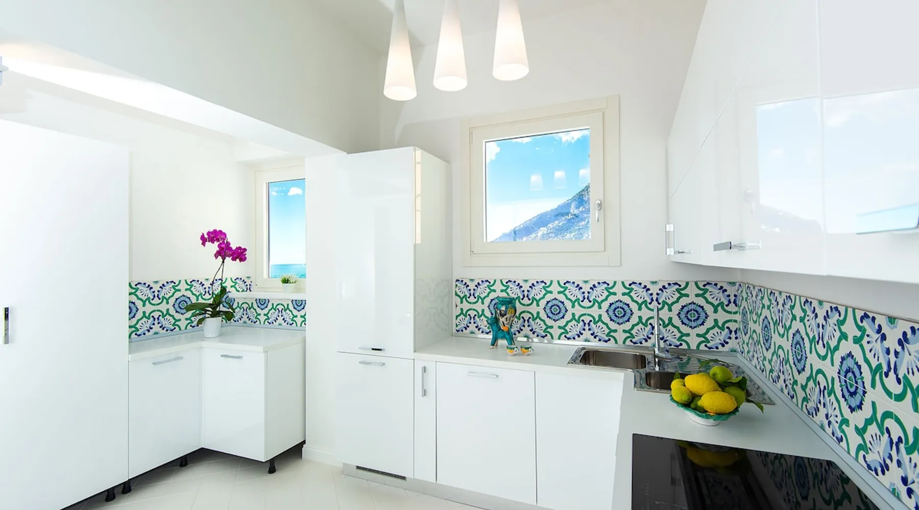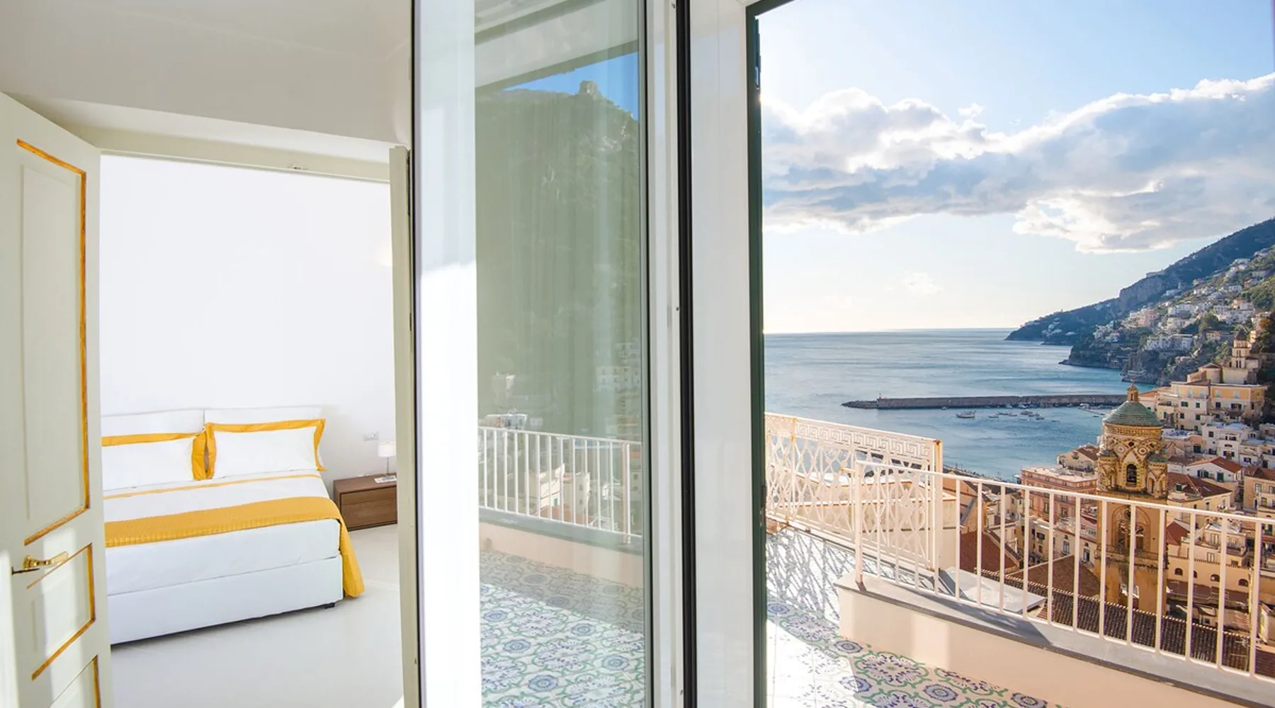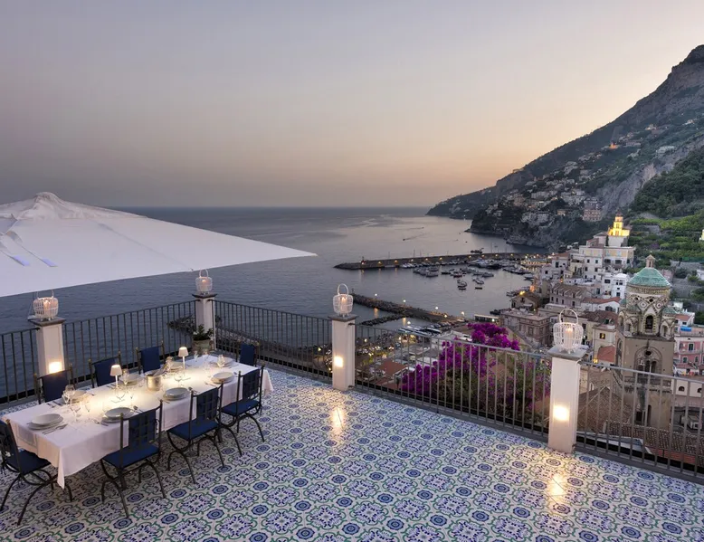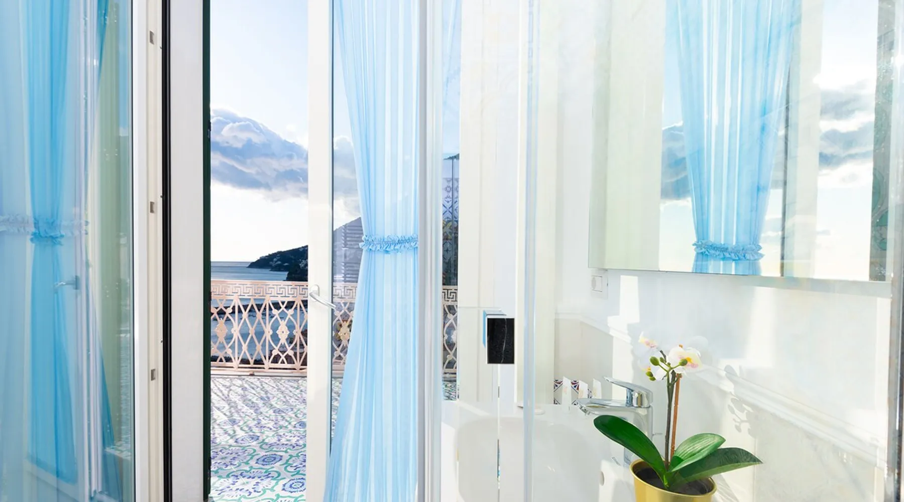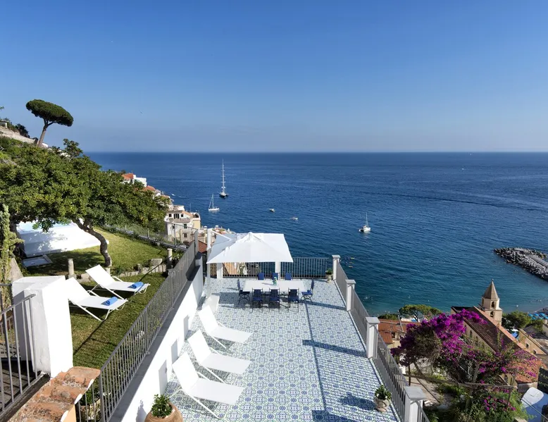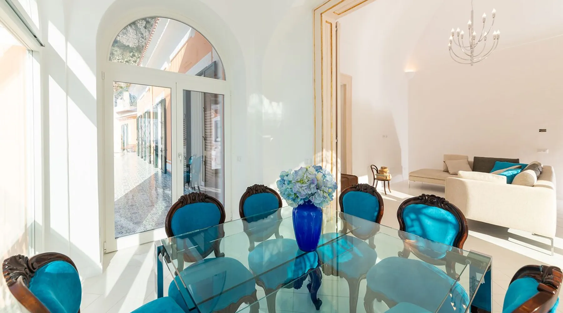 Palazzo della Storia Luxuriously finished historic palazzo with elegant interiors, jacuzzi and sea-view terraces, positioned in the heart of Amalfi The space Palazzo della Storia is a remarkable villa, achieving the unusual feat of delivering an ultra-glam experience in a historic 17th-century residence. It’s been part of the same family for almost four centuries and their passion for the property is almost tangible. It’s all the more remarkable for its location, just 300 m from central Amalfi’s Piazza Flavio Gioia. Access to the villa is from the piazza, via 300 steps or in the public lift (from 8 am to midnight). Extending over 300 m², the villa boasts two terraces. Sip your morning espresso, feast al fresco or relax back in the lounge chairs on the first (150 m²) of two terraces, with mesmerising views over the sea and Amalfi town. A second terrace, accessed from the living room, dining room and bedrooms also provides sea views as does the jacuzzi (3 x 2.3 m). Interior spaces are every bit as ravishing, featuring high, vaulted ceilings, exquisite furniture and distinctive Amalfi coast style. Communal spaces include a living room with double doors through to the dining room and a sleek glossy white kitchen with colourful ceramics. The utility room has a guest bathroom with toilet and sink. Not included in the price, to be paid on site in cash: • Tourist tax 3 Euros per person per day, from 1st April until 2n November; children under 10 years do not pay BEDROOMS & BATHROOMS • Bedroom 1 with en suite bathroom: Double bed. Sea views and access to second terrace • Bathroom 1 (en suite): Features handcrafted ceramics. Sink, toilet, bidet, shower cubicle, hairdryer. • Bedroom 2 with en suite bathroom: Double bed. Sea views and access to second terrace. • Bathroom 2 (en suite): Features handcrafted ceramics. Sink, toilet, bidet, shower cubicle, hairdryer. • Bedroom 3 with en suite bathroom: 3 connected rooms including a living area with sofa and two armchairs, and bedroom with double bed, sea views and access to second terrace. • Bathroom 3 (en suite): Features handcrafted ceramics. Sink, toilet, bidet, shower cubicle, hairdryer. • Bedroom 4 with en suite bathroom: Double bed. Sea views and access to second terrace • Bathroom 4 (en suite): Features handcrafted ceramics. Sink, toilet, bidet, shower cubicle, hairdryer. • Bathroom 5: Sink, toilet, shower cubicle. Access from corridor • Bathroom 6: Guest bathroom with toilet and sink. • Bathroom 7: Guest bathroom with toilet and sink in utility room Create lifelong memories at this luxurious holiday home Highlights include: • Timeless sea views from terraces and bedrooms • Jacuzzi with sea views • Elegant, charming interiors • Warm welcoming vibes generated by owners’ passion for their home • Daily cleaning 4 hours/day • Change of linen and towels every 3 days • Continental breakfast included • Smart TV • Contemporary kitchen with induction hob, electric oven, fridge-freezer, ice maker, dishwasher and microwave • Air conditioning throughout • Wi-Fi • The public lift it is open from 8:00 AM to 24:00 and Its cost is 4 euros per person. From the elevator, there are about 40 stairs to reach the villa. • Porterage service upon arrival and departure Find a special occasion and holiday in style with all your favourite people An exceptional location in the heart of Amalfi with easy access to neighbouring towns • The shops, bars, restaurants and even the beach are just 300 m away. • Stroll through the town’s narrow alleys and passageways to admire the pastel-coloured buildings and hidden courtyards, and visit the Duomo and cloisters. • Choose from a selection of beaches along the coast including the sandy beach at Maiori. • The SITA bus stop (300 m) in Piazza Flavio Gioia is the main terminal for buses that connect all the Amalfi Coast villages. Hop on a bus up to Ravello (6 km) to gaze at dazzling blooms and spellbinding coastal views from the gardens at the Villa Rufolo and Villa Cimbrone. • Visit the neighbouring towns of Maiori (6 km), Cetara (15 km) and Vietri sul Mare (21 km) • From the ferry port, catch a ferry to Positano or the island of Capri. • Naples Capodichino International Airport – 60 km. Enjoy sunshine, great food, nature and beaches in the heart of one of the Amalfi Coast’s most beautiful towns. • Explore the local gastronomic scene, feasting on spaghetti al limone, anchovies from nearby Cetara and, of course, the odd glass of limoncello. • Choose from several scenic walking trails including a downhill one hour walk from Ravello to Amalfi and the ‘Sentiero dei Limoni’, a spectacular walk through the lemon groves between Minori and Maiori. • Classical music fans will love the annual summer concert series which takes place at the Villa Rufolo and the impressively modern Oscar Niemeyer Auditorium in Ravello. • You won’t need a car at Palazzo della Storia, but parking is available in a nearby public car park (subject to availability, pay and display). A unique villa with everything in place for an unforgettable holiday in the sun Amore Rentals has a dedicated Concierge Team, who will assist with the various aspects of your vacation in Italy: from transfers to sightseeing, to wine tasting, cooking classes, boat tours and much more. Registration Details IT065006B48RMRRC5B