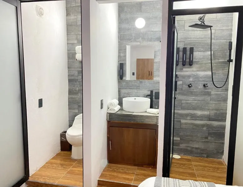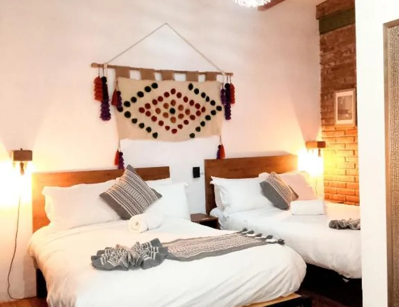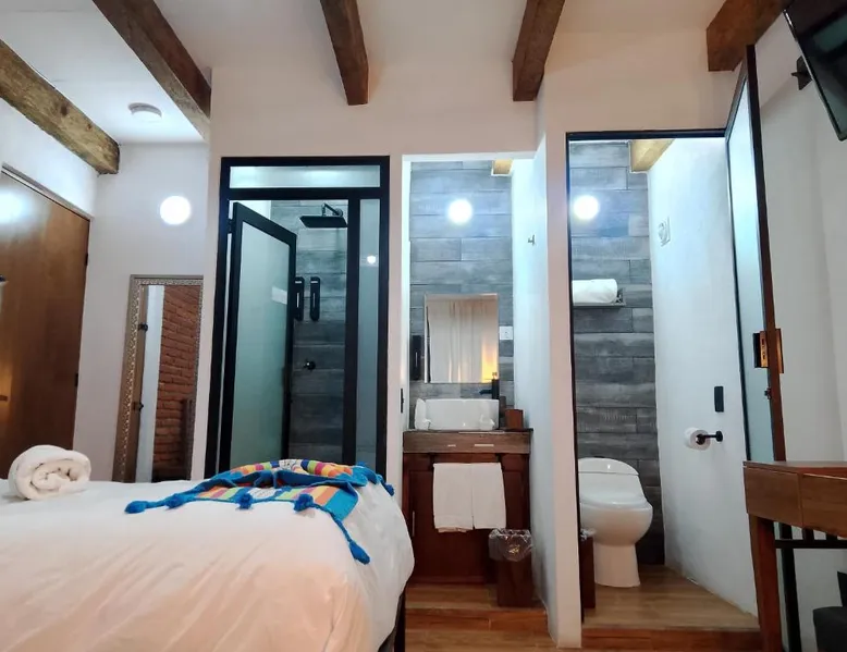 Comfortable Accommodations: Suites del Barrio in San Cristóbal de las Casas offers comfortable rooms with private bathrooms, hypoallergenic bedding, and free toiletries. Each room includes a TV, work desk, and wardrobe, ensuring a pleasant stay. Essential Facilities: Guests enjoy a sun terrace and free WiFi, perfect for relaxation and connectivity. Additional amenities include a shared kitchen, outdoor seating area, and full-day security, providing convenience and safety. Dining Options: A variety of breakfast options are available, including continental, American, and à la carte. Breakfast includes warm dishes and fresh fruits, catering to diverse preferences. Prime Location: Located 47 mi from Ángel Albino Corzo International Airport, the hotel is an 8-minute walk from San Cristobal Cathedral and close to attractions such as the Amber Museum and Na Bolom Museum. Highly rated for room cleanliness and comfort. This quadruple room includes a flat-screen TV with satellite channels and a private bathroom. The unit offers 2 beds.