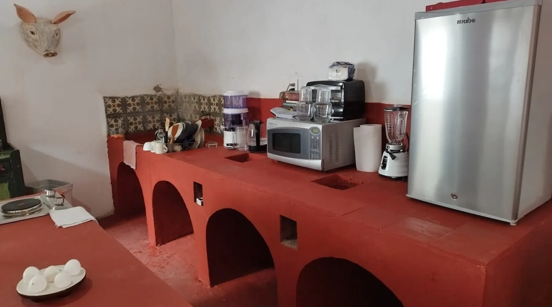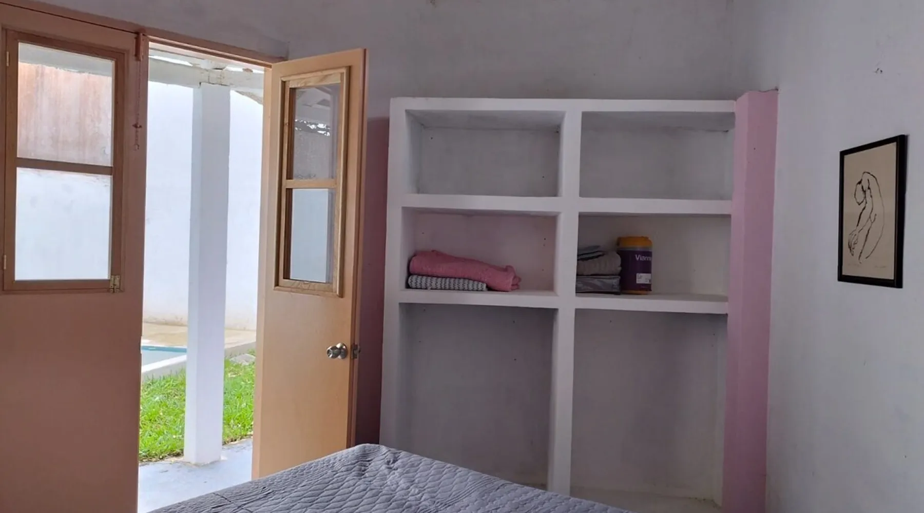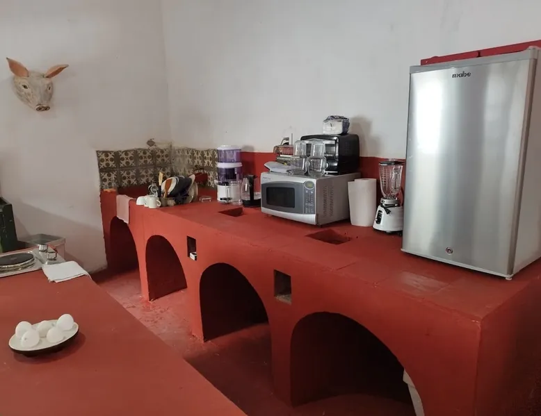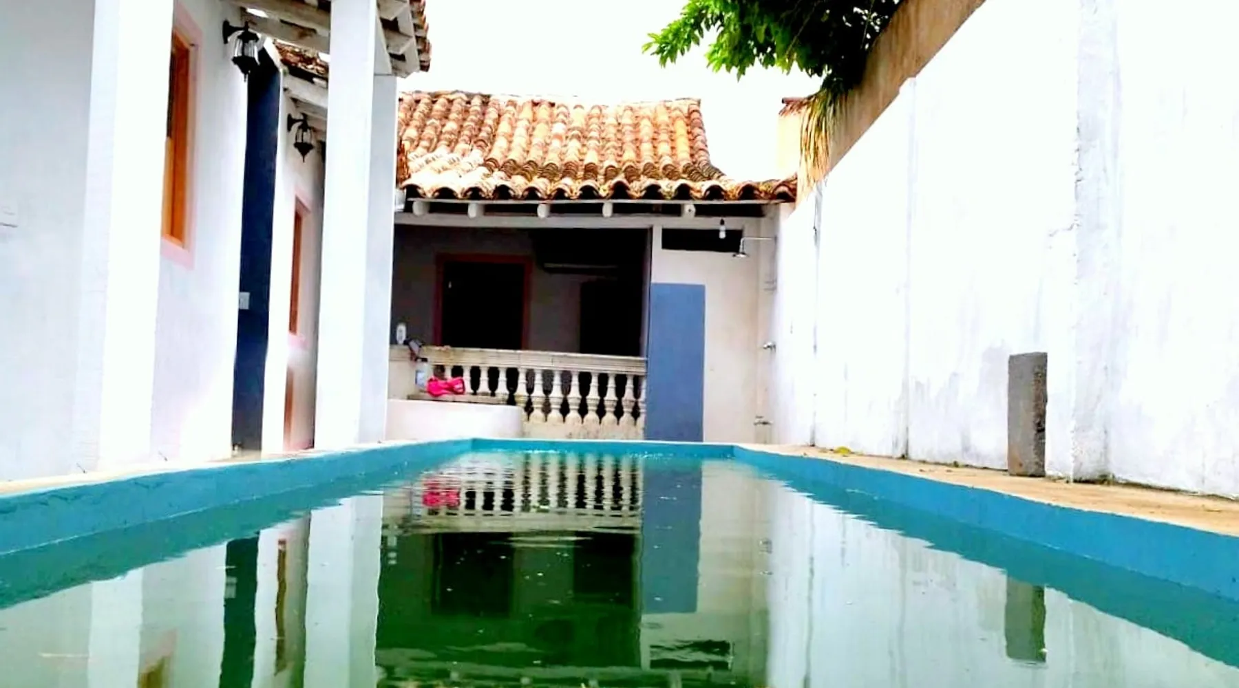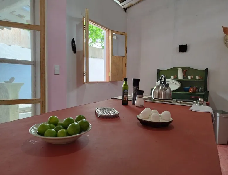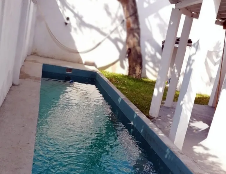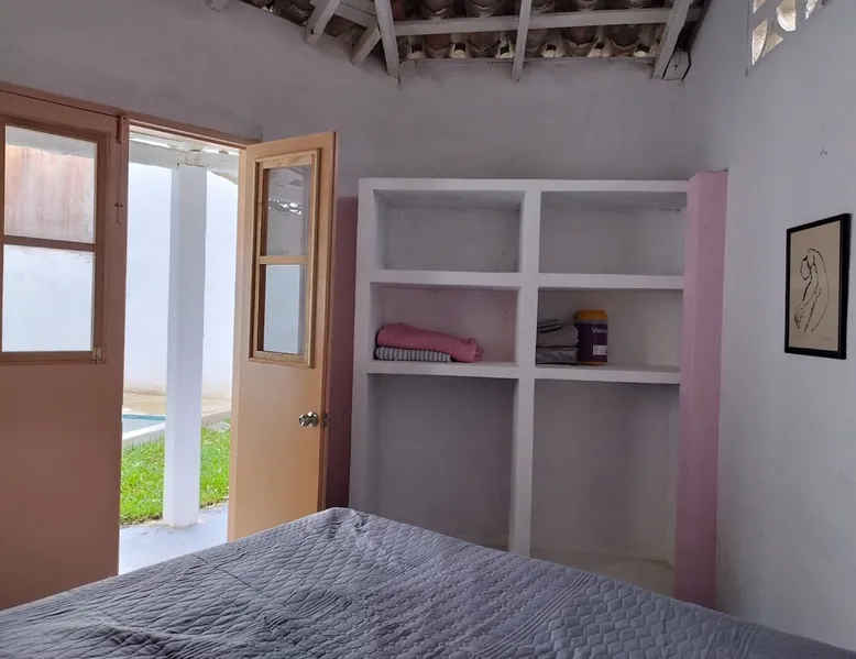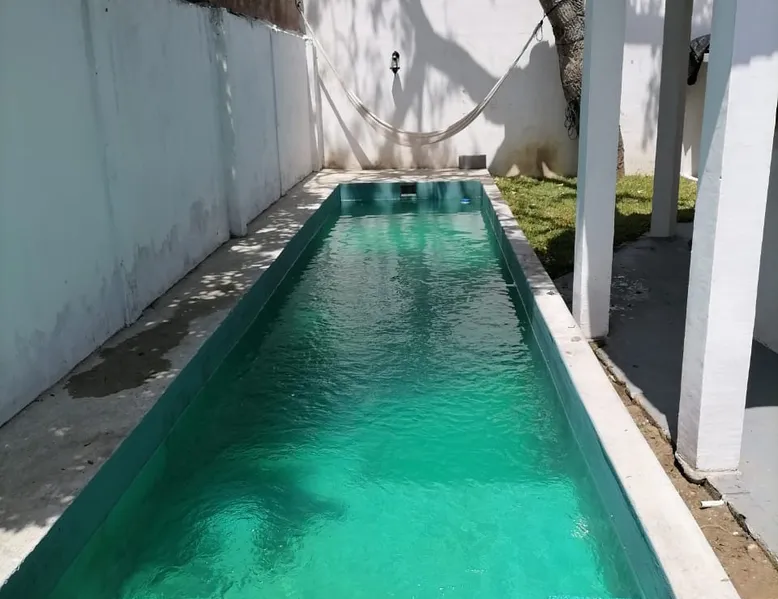 Beautiful home two blocks from Tlacotalpan's central park, roughly three from the riverfront. Totally renovated, the space is private, comfortable, and functional. New architectural elements respect the spirit of the town and the homes for which it's famous. The pool is ITALIAN STYLE and water is green in appearance. Perfectly distributed ample spaces make your stay an enjoyable experience. At 9 x 2 meters, the pool integrates with the rest of spaces all shaded by a beautiful jobo tree. The space The house has high tile roofs and one large room combining kitchen, dining, and living rooms in harmony with the architectural tradition of the Papaloapan basin. Two bedrooms, one with a king size bed, and the other with a double bed, both include closet and storage space. Mattresses are comfortable memory foam. A double sofa bed in the living room allows you to bring two more guests. The home also includes two bathrooms, one off the secondary bedroom and another off the primary bedroom and terrace. An outdoor shower next to the pool gives added comfort. Both showers share a solar water heater so no gas is used in the home. The pool is Italian style, and green in appearance to emulate the color of the Papaloapan River. Sanitary conditions are perfect and the pool receives constant maintenance. The garden has two patio spaces, one adjoining the kitchen/dining area and the other adjoining the second bedroom in the shade of the jobo tree. Even with Tlacotalpan's considerable heat, the home remains shaded and cool. Guest access Guests have access to the entire property and are asked to respect the near neighbors, and avoid noise after 10 PM. Other things to note "La Escondida" was designed as a space for rest, secluded from the street, but just steps away from the center of Tlacotalpan's social, cultural and culinary life. The exterior of the house is simple and austere, while interiors offer modern interconnected functional spaces for relaxation and socializing, always in the shade of the beautiful tree that forms part of the property.