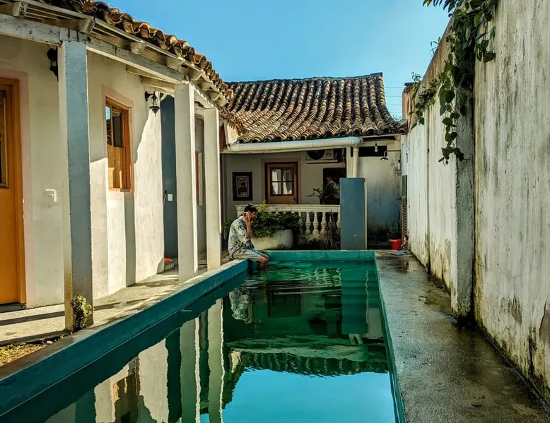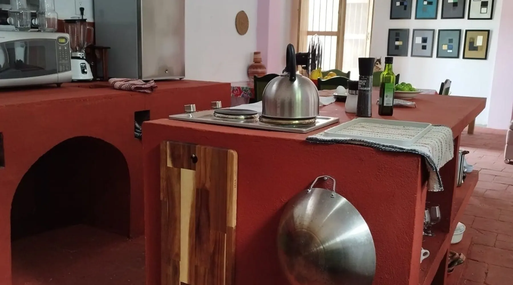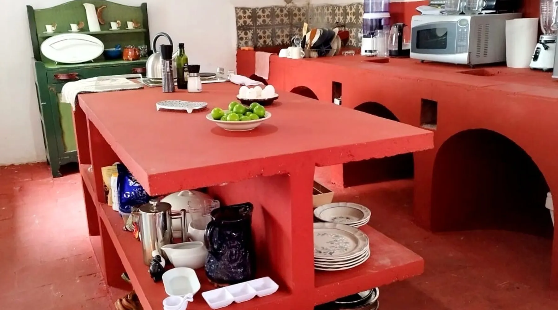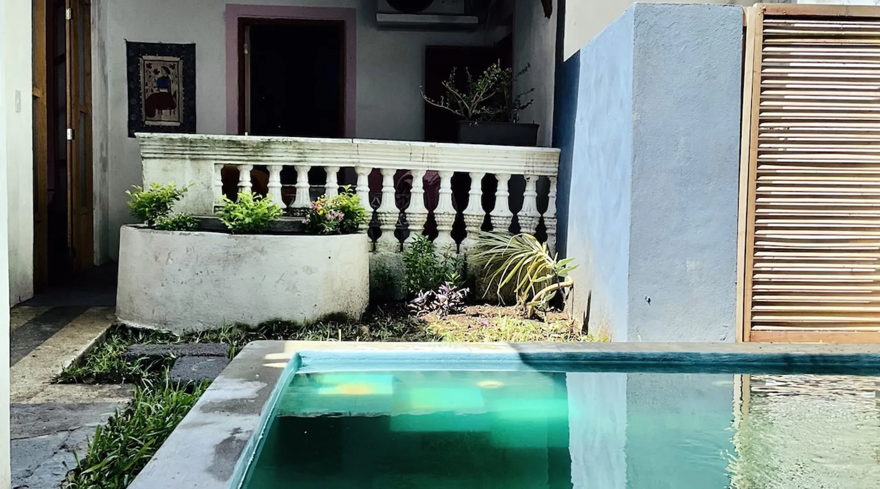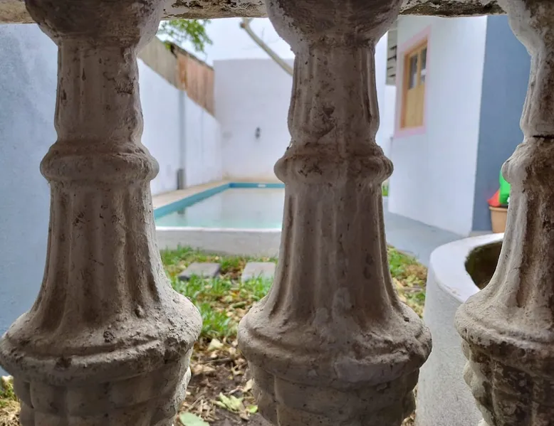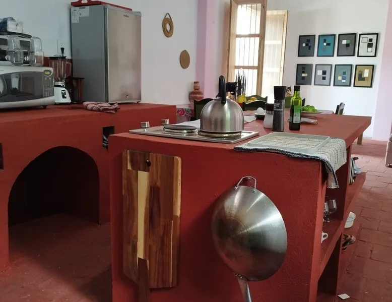 Beautiful home two blocks from Tlacotalpan's central park, roughly three from the riverfront. Totally renovated, the space is private, comfortable, and functional. New architectural elements respect the spirit of the town and the homes for which it's famous. The pool is ITALIAN STYLE and water is green in appearance. Perfectly distributed ample spaces make your stay an enjoyable experience. At 9 x 2 meters, the pool integrates with the rest of spaces all shaded by a beautiful jobo tree. The space The house has high tile roofs and one large room combining kitchen, dining, and living rooms in harmony with the architectural tradition of the Papaloapan basin. Two bedrooms, one with a king size bed, and the other with a double bed, both include closet and storage space. Mattresses are comfortable memory foam. A double sofa bed in the living room allows you to bring two more guests. The home also includes two bathrooms, one off the secondary bedroom and another off the primary bedroom and terrace. An outdoor shower next to the pool gives added comfort. Both showers share a solar water heater so no gas is used in the home. The pool is Italian style, and green in appearance to emulate the color of the Papaloapan River. Sanitary conditions are perfect and the pool receives constant maintenance. The garden has two patio spaces, one adjoining the kitchen/dining area and the other adjoining the second bedroom in the shade of the jobo tree. Even with Tlacotalpan's considerable heat, the home remains shaded and cool. Guest access Guests have access to the entire property and are asked to respect the near neighbors, and avoid noise after 10 PM. Other things to note "La Escondida" was designed as a space for rest, secluded from the street, but just steps away from the center of Tlacotalpan's social, cultural and culinary life. The exterior of the house is simple and austere, while interiors offer modern interconnected functional spaces for relaxation and socializing, always in the shade of the beautiful tree that forms part of the property.