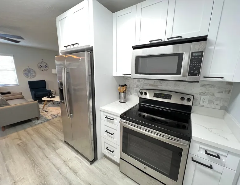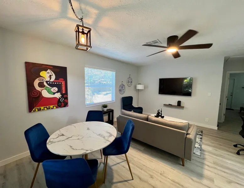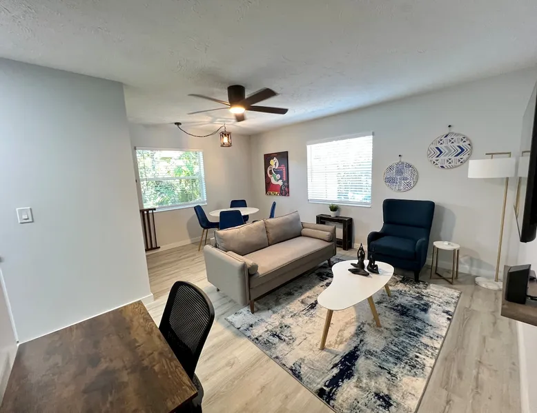 A beautiful space with a private entrance and a cute outdoor area. Newly furnished and remodeled. Great location, just steps from Wilton Drive and many cool bars and restaurants, minutes from "Downtown Las Olas" and the Beach. LGBTQ+ friendly and dog friendly. .One comfortable Queen bed featuring our brand-new Le Chateau Soft Cloud Percale luxury bed linen for a heavenly sleep experience every time. The property is located in quiet, residential Wilton Manors. The space A beautiful space with a private entrance and a cute outdoor area. Newly furnished and remodeled. Great location, just steps from Wilton Drive and many cool bars and restaurants, minutes from "Downtown Las Olas" and the Beach. LGBTQ+ friendly and dog friendly. .One comfortable Queen bed featuring our brand-new Le Chateau Soft Cloud Percale luxury bed linen for a heavenly sleep experience every time. The property is located in quiet, residential Wilton Manors. Fast WiFi, steps to Wilton Dr. where you'll find many restaurants and bars. You have the entire space to yourself, kitchen, bathroom, living room, and small patio. Pets are welcome. Guests also have a desk and chair for office work. Guest access Dedicated parking space is available #4 Guests have 100% exclusive access to the property. No areas are shared with anyone. Other things to note Pack n'Play and high chair available upon request Please use coasters when placing beverages on the coffee table. Pets allowed - There is a $150 pet fee. TVs in this property are smart so you'll be able to log into your favorite streaming apps including those for broadcast TV. There is no cable TV. You have the option to log into any streaming app for which you have an account. We do not provide streaming app accounts. The use of WIPES IS PROHIBITED. If you use wipes, you'll be fined $1500 for any plumbing repairs. No parties or gatherings. Absolutely no smoking of any kind inside the property, including vaping or medicinal marihuana. If we smell smoke you will be fined $500. You're welcome to smoke outside. No loud music after 9PM. This unit is part of a fourplex, the patio is fenced Per local city laws: -No commercial vehicles allowed -No more than 1 vehicle on the driveway -No street parking, no parking on the grass -No more than 3 guests allowed at any time on property total. -No commercial filming allowed -No noise after 9PM -No events