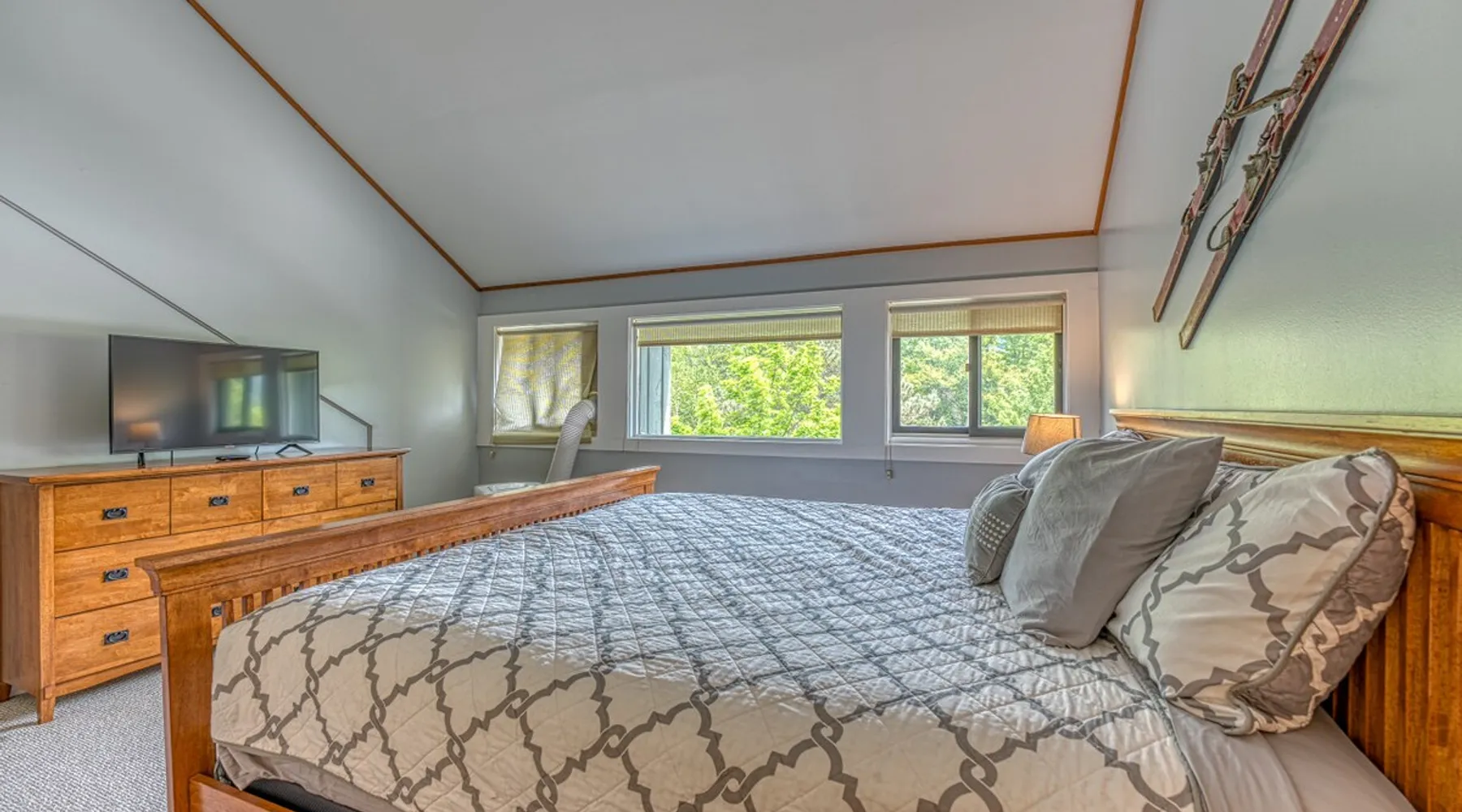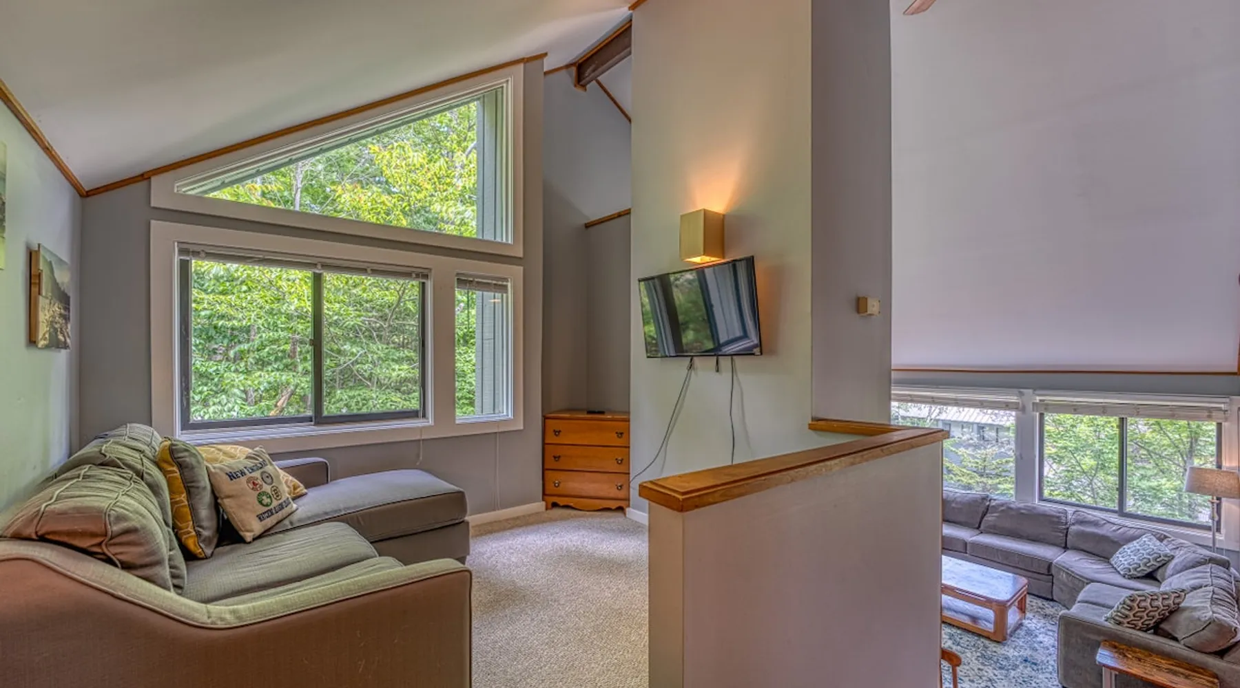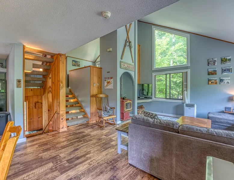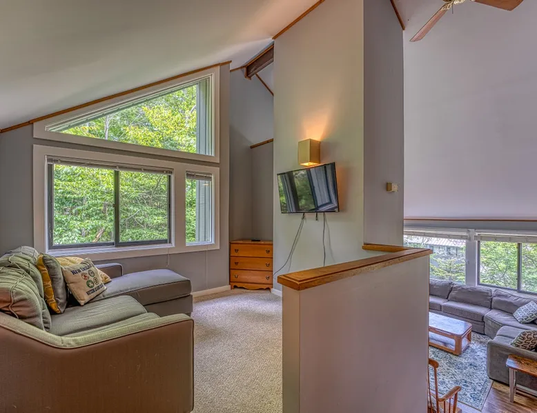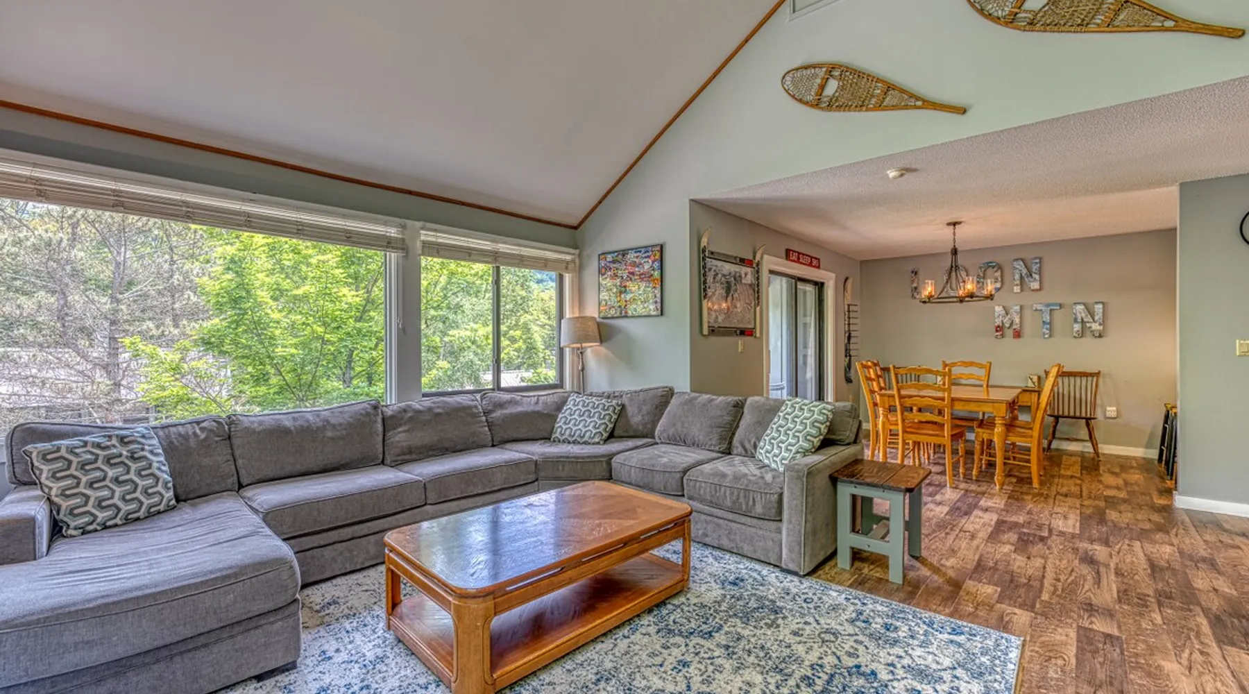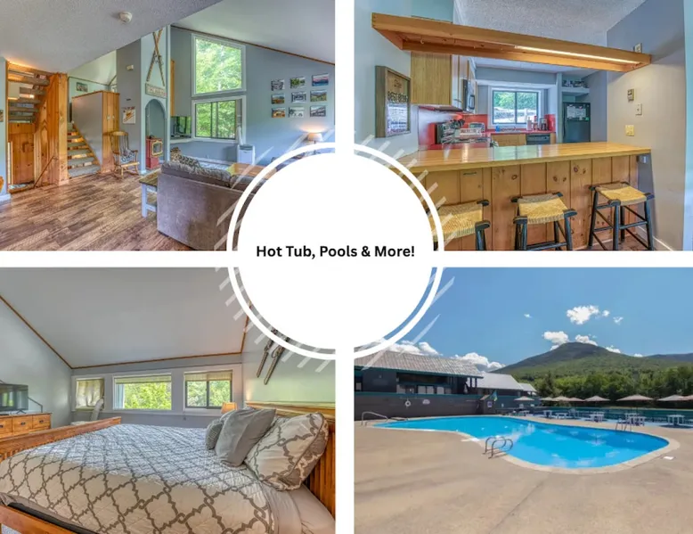 Welcome to The Village of Loon Mountain! This spacious 3 bedroom, 2 bath unit is spread out over 3 levels with plenty of room for 1 or 2 families. Directly across the street from Loon (with slope views from your private balcony) you'll be in an unbeatable location to enjoy your trip to the White Mountains. You'll have access to on-site indoor/outdoor pools, jacuzzi, tennis courts and exercise facilities. Come enjoy some fresh mountain air! The space The condo is spacious and spread out over 3 levels. The main level features a large mud room, an open concept living and dining room with full kitchen. The upper level offers a master with a full bath, and a loft with a second living area. The lower level has a bunk room, a queen room, a full bath and laundry room. There is a private balcony off of the main level with slope views Guest access you’ll have access to the entire condo and Village of Loon Mountain swim and tennis club. Due to HOA policy, guests cannot use the grill as it is on a balcony. Other things to note there are exterior stairs to get up to the unit. This unit is not pet friendly, but owners dog does come along with them, so this should be a consideration for anyone with allergies PARKING there are two parking spaces. There is an overflow lot available in the association, but it is first come first serve