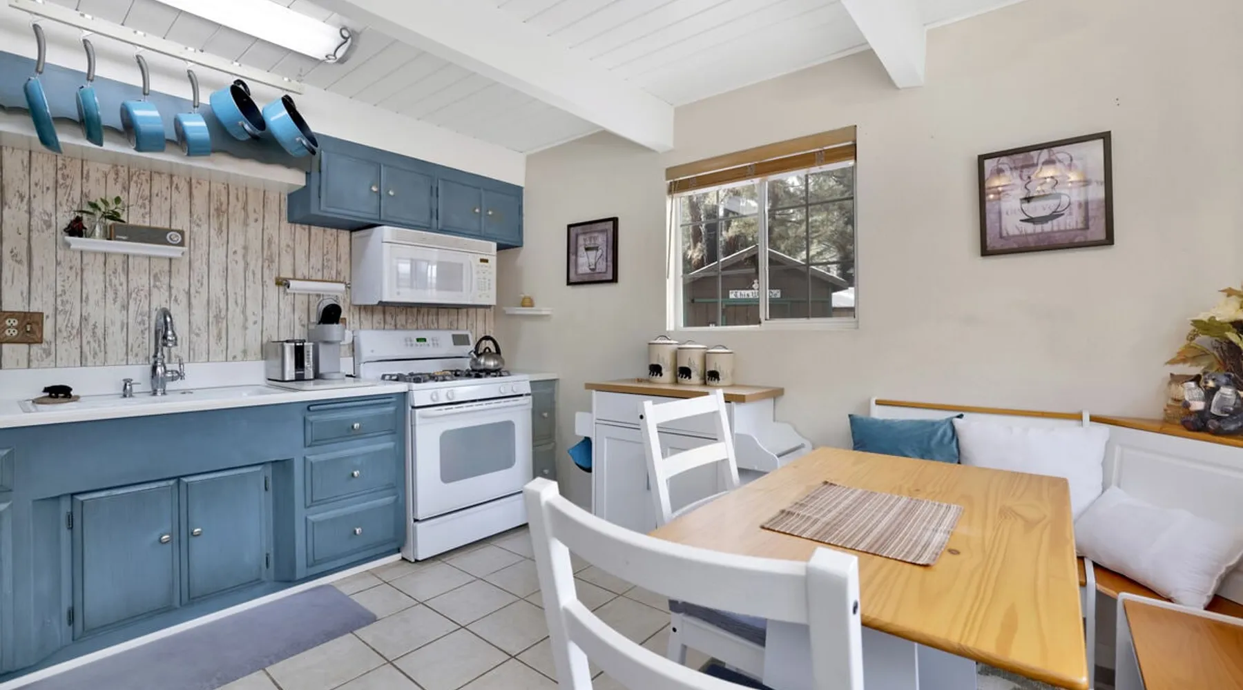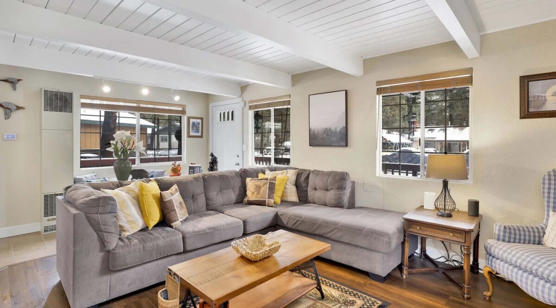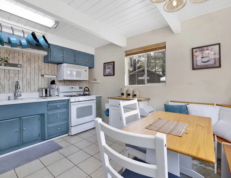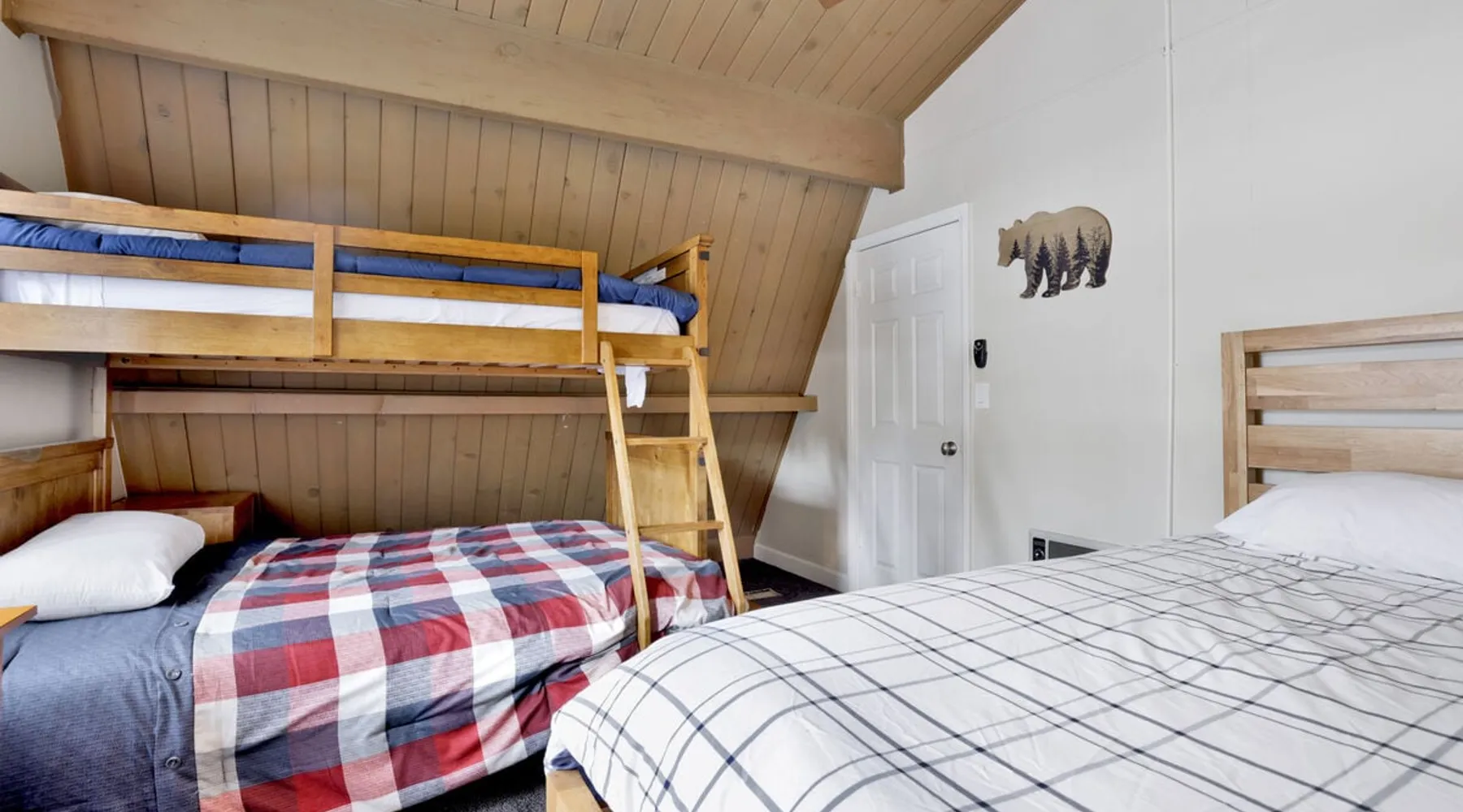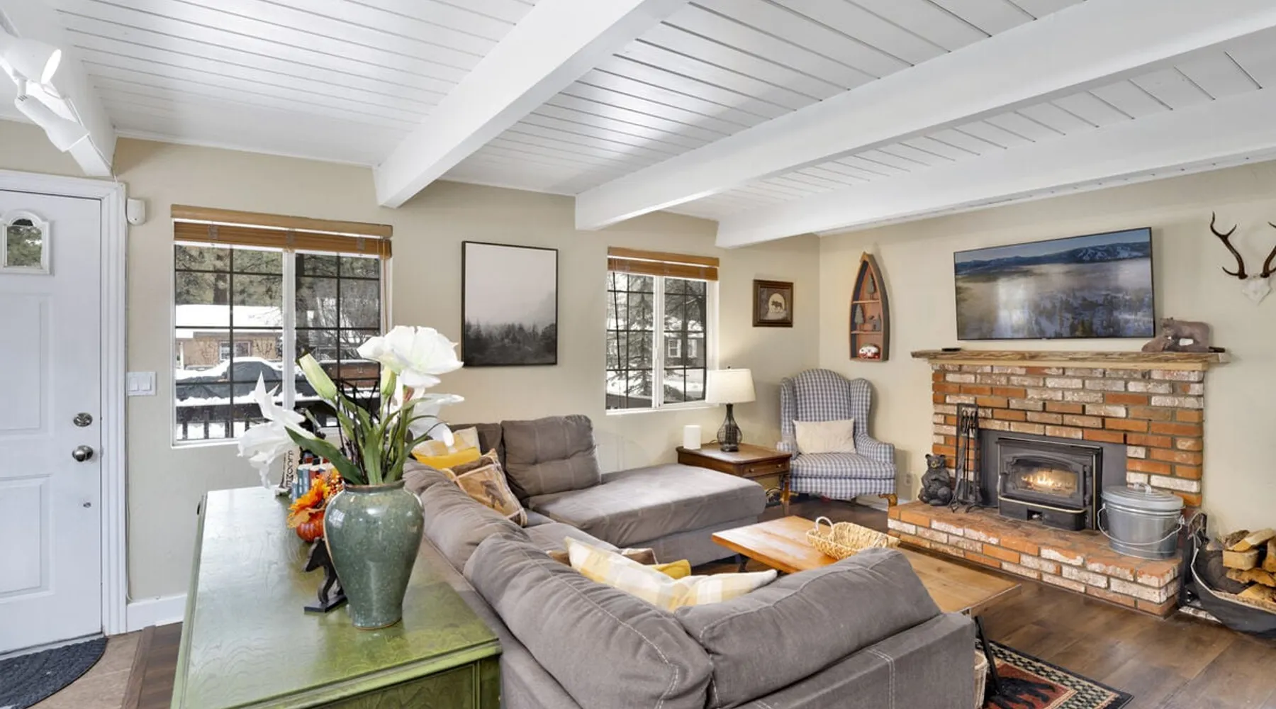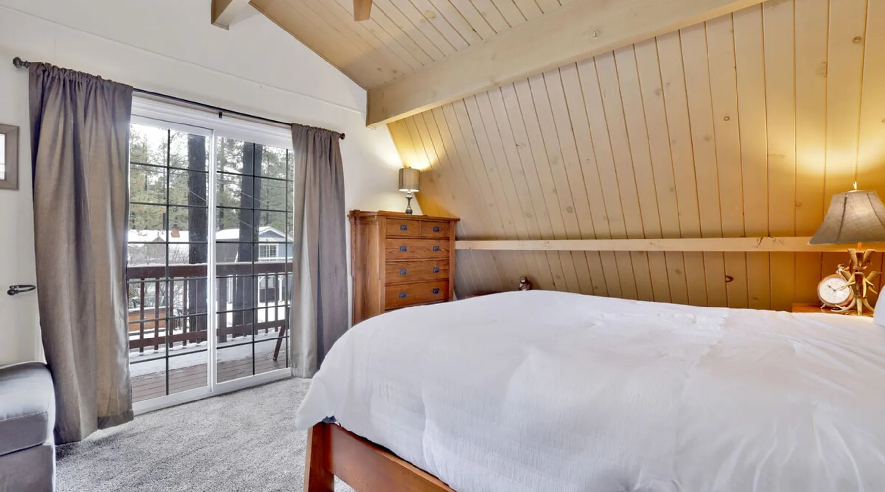Tinker Bell Gambrel- Relaxing Bear City Modern Retreat Welcome to Tinker Bell Gambrel. Perfect for a friend's getaway or family vacation to the mountains our adorable two-story chalet offers exactly what you need to enjoy a relaxing and comfortable stay together under the pines. Located in a quiet Bear City neighborhood you are within a quick ten-minute car ride into town for local ski resorts, grocery stores, and the Village shops. The space Snuggle up together in front of the fire and warm your toes as you pop on a movie on the mounted flat screen Streaming TV and watch the snow falling outside from the big open windows. Around the corner is the equipped kitchen and dining area, complete with all that you need to prepare home cooked holiday meals and slope side snacks for your day of adventures. A convenient and spacious lower-level hallway bathroom is available while two upstairs sleeping quarters are ready for your group's restful night of rest. Venture out to the private balcony from the first bedroom upstairs, you will love sipping your first cup of coffee here in the mornings among the birds or relaxing and unwinding in the evening under the stars. The lower-level sun deck wraps the property and offers plenty of space to watch the kids play safely along with a great flat driveway for off-street convenient parking. Stroll the quiet neighborhood or hop in the car to be within minutes to local Big Bear attractions- this is the perfect year-round location for any occasion! Sleeping Arrangements: Bedroom 1: Queen Bed, Private Balcony- Upstairs 2nd Level Bedroom 2: Queen Bed + Full/Twin Bunk, Streaming TV- Upstairs 2nd Level Bathroom Arrangements: Hallway Full Bath- Downstairs Entry Level -Sleeps 6 -2 Car Driveway Parking -NO PETS ALLOWED- Fines Imposed for Pets Found on Property -952 Square Feet Registration Details CESTRP-2023-00589