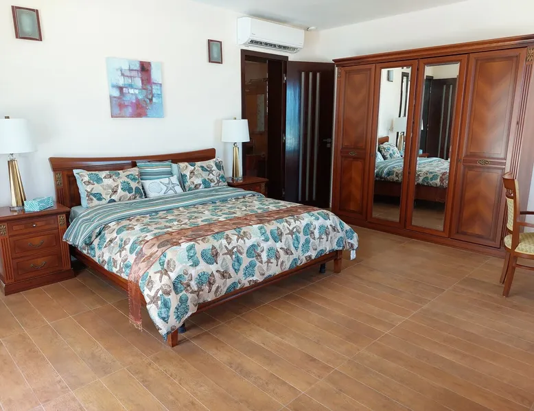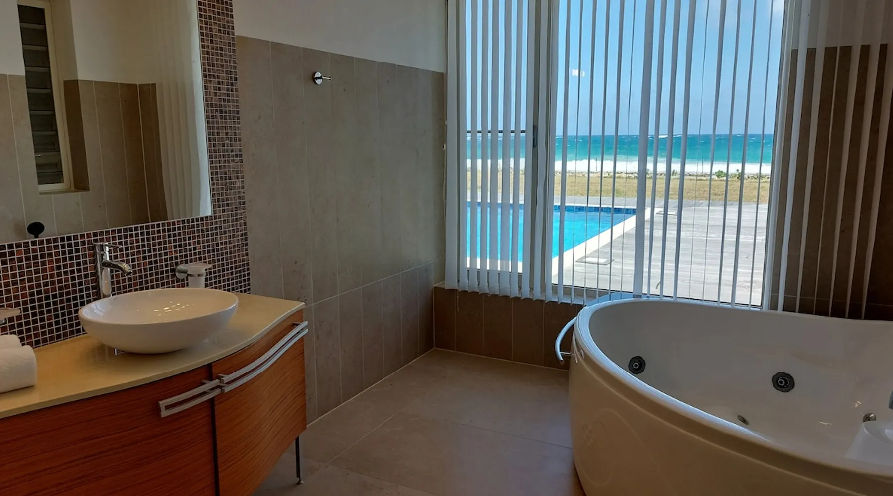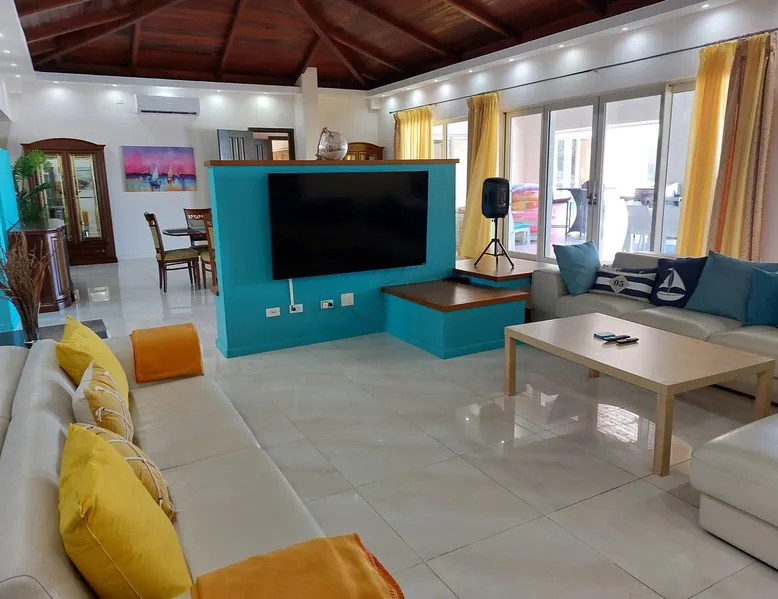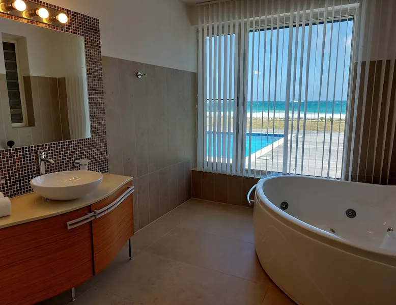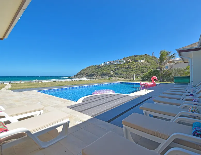 This impressive beachfront luxurious villa, direct private access to the beach, is located in Guana Bay, offering large & spacious living space, with terrace, patio & pool. There are 6 bedrooms, each with en-suite bathrooms. 5 bedrooms with king size beds & 1 bedroom with 2 twin beds. Secure area, quiet place, the villa offers BBQ & games. Ideal for friends & families. COVID Thermometer. 24/7 Maintenance & service. Meeting at car rentals possible. The space Welcome to villa Orchid, a newly renovated luxury villa in the heart of Caribbean. This impressive 6 air-conditioned bedrooms, 6 1/2 bathrooms luxurious villa is located in Guana Bay, directly on Guana Bay Beach offering over 5,000 square feet of living space. The spectacular views, the back-drop of Sky, sea and the villa is absolutely stunning. The villa has been furnished with contemporary designer furnishings from Europe and has been designed to provide all necessary amenities to please our guests. The villa is set on one level and access to all bedrooms is within the villa. There are 6 bedrooms, each with an en-suite bathroom. 5 bedrooms offer king size beds and 1 bedroom offers 2 twin beds. The air-conditioned living room is exquisitely furnished. Open the sliding windows and you will breath the natural breeze from the ocean. You can experience the fabulous views from the living, dining and kitchen..The fabulous gourmet kitchen offers exquisite granite countertops and is fully equipped with modern deluxe stainless steel appliances. In addition, the villa offers a wonderful bar area with a state-of-the-art wine cooler opening onto the covered terrace so you can make your cocktails and drinks with easy access to the terrace and pool area. The extensive terrace area offers a private pool, an outdoor covered dining area that seats 8 persons and comfortable lounge chairs for you to soak in the sun. Perfect for BBQ as well as private reception. In addition, you have access to your own private beach, our dedicated staff will design an private area on the beach for you. The villa's extensive space, rooms, patios, outside terrace and private pool join together creating a wonderful harmonious flow throughout and are bordered by a luxuriant large garden. Swim in the beautiful pool, take a dip in the ocean, sunbathe, dine, and enjoy the ocean breezes. Villa Orchid will deliver you the vacation of your dream. Guana Bay is located in close proximity from Philipsburg, capital of St. Maarten, where you can enjoy a different lifestyle: boardwalk, duty free shopping, restaurants, everything surrounded by Caribbean atmosphere and beauty. St Maarten offer 30 beaches, watersport, hiking spot, creole and french cuisine, various entertainment and our dedicated team will help you to make your perfect holiday with our concierge services. (Private chef, taxi tour, boat trip, fishing sport, rental cars, security, entertainment, watersport, restaurant reservation, you name it, we get it for you...). Guest access The entire villa will be yours for your vacation with us. Other things to note Maintenance service 24/7. Meeting on arrival at car rental is possible. All extra service such as watersport can be book directly through us. 100% guests satisfaction and relaxation.