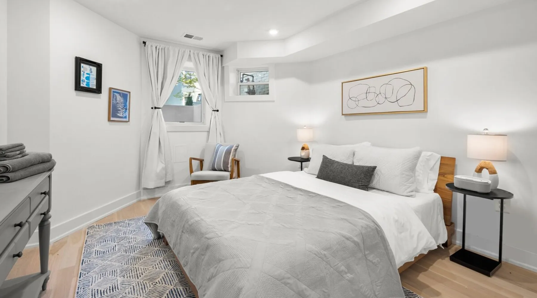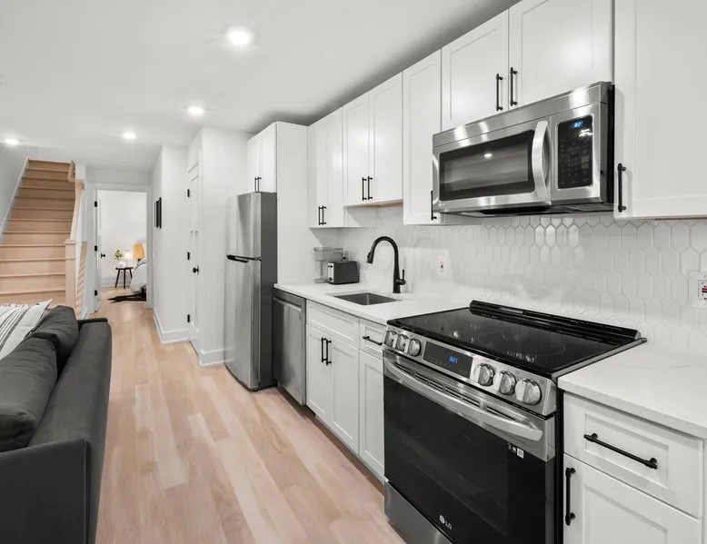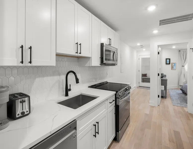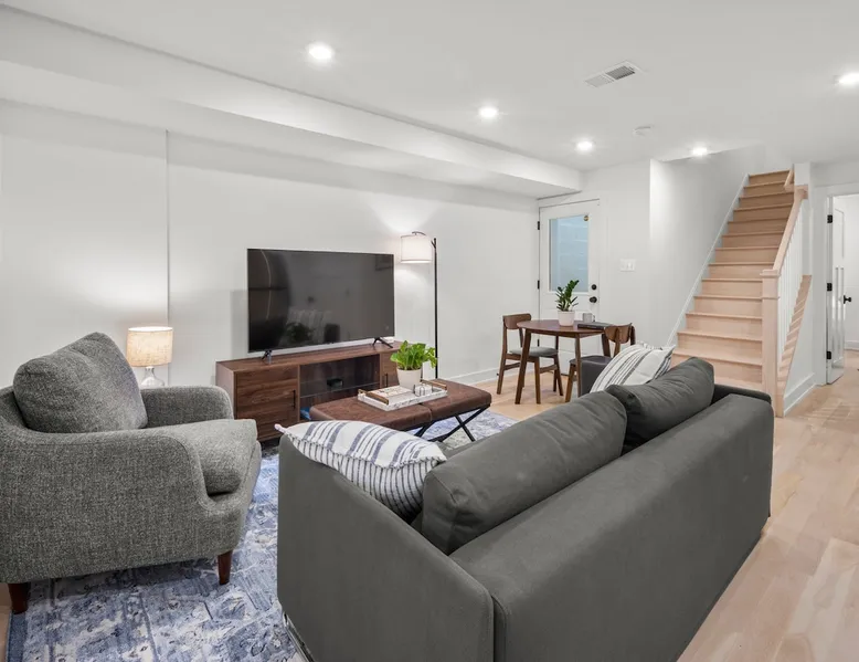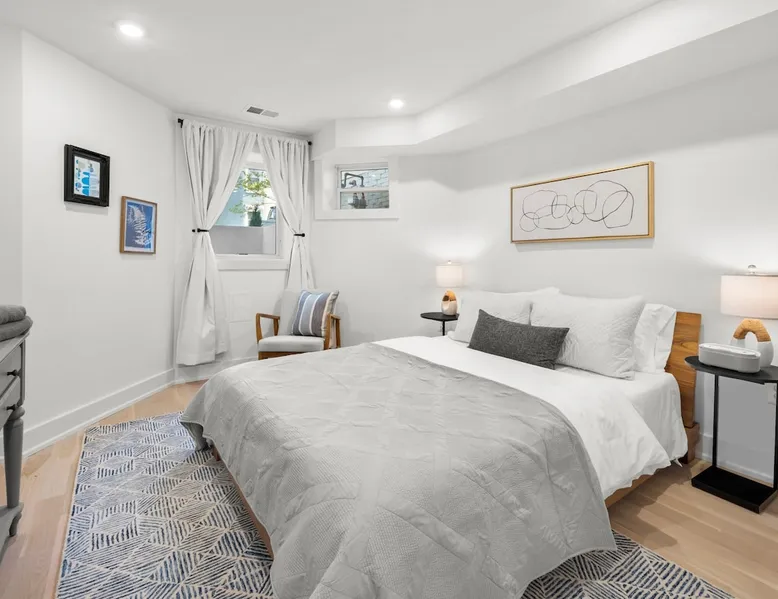 Welcome to our beautiful apartment in historic DC! Located in the friendly neighborhood of Eckington, it's just a 10 minute ride to the U.S. Capitol, Union Market, or your favorite museum, and around the corner from great restaurants, cafes and parks. We offer parking! And with comfy beds, a full kitchen, and everything from a large TV to a pack-and-play, you'll be well-rested for a day of sight-seeing. Plus, we live in the separate unit upstairs and are happy to help if you need anything! The space Situated just minutes from all the key sites of the city but tucked into a residential corner, our garden-level/English basement apartment features: - two-bedrooms (with a queen and a full bed) - pull-out full size sofa bed - private front and back entrances - top-of-the-line LG appliances and Crate & Barrel furniture - full kitchen and kitchenware - a walk-in closet - lightening-fast Wifi with a dedicated workspace - washer and dryer - 54in Samsung HDTV with Apple TV and all streaming services - unique white oak hardwood flooring - and thoughtful design elements throughout the apartment. It also includes special touches that will make your stay as comfortable as possible: - keyless entry - memory foam mattresses - black-out curtains - extra blankets - a white noise machine - motion sensor outdoor lights - coffee/tea/creamer - extra toiletries - detergent and dryer sheets for in-unit laundry - luggage racks - hangers - and a play pack and high-chair for children! We are also walking distance from multiple cafes, restaurants, bars, gyms, parks/playgrounds and so much more! Guest access Guests have private access to the garden-level/English basement apartment via a keypad at the front lower level door. A code will be sent to you 24 hours prior to check-in. Other things to note The stairs leading to the main house are blocked, and the apartment is a fully private space. However, we do live in the main house above the apartment, and you may occasionally hear our family or our Golden Retriever :) The apartment is not suitable for parties or large gatherings of any kind. Smoking is not permitted anywhere on the property. We will ask you to leave if you are in possession of any illegal substances. The apartment is only suitable for 3 to 4 people, including a sofa bed in the living room that can sleep 1 adult. We are happy to provide a parking pass during your stay for street parking. The apartment has private, separate entrances in both the front and back. Both entrances require the use of stairs. Check-out is at 11:00 am. We are usually unable to accommodate a late check out, but we are happy to hold your suitcases after check-out time. Registration Details Hosted License: 5007242201002742