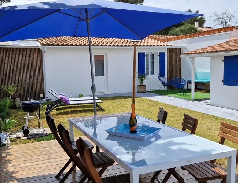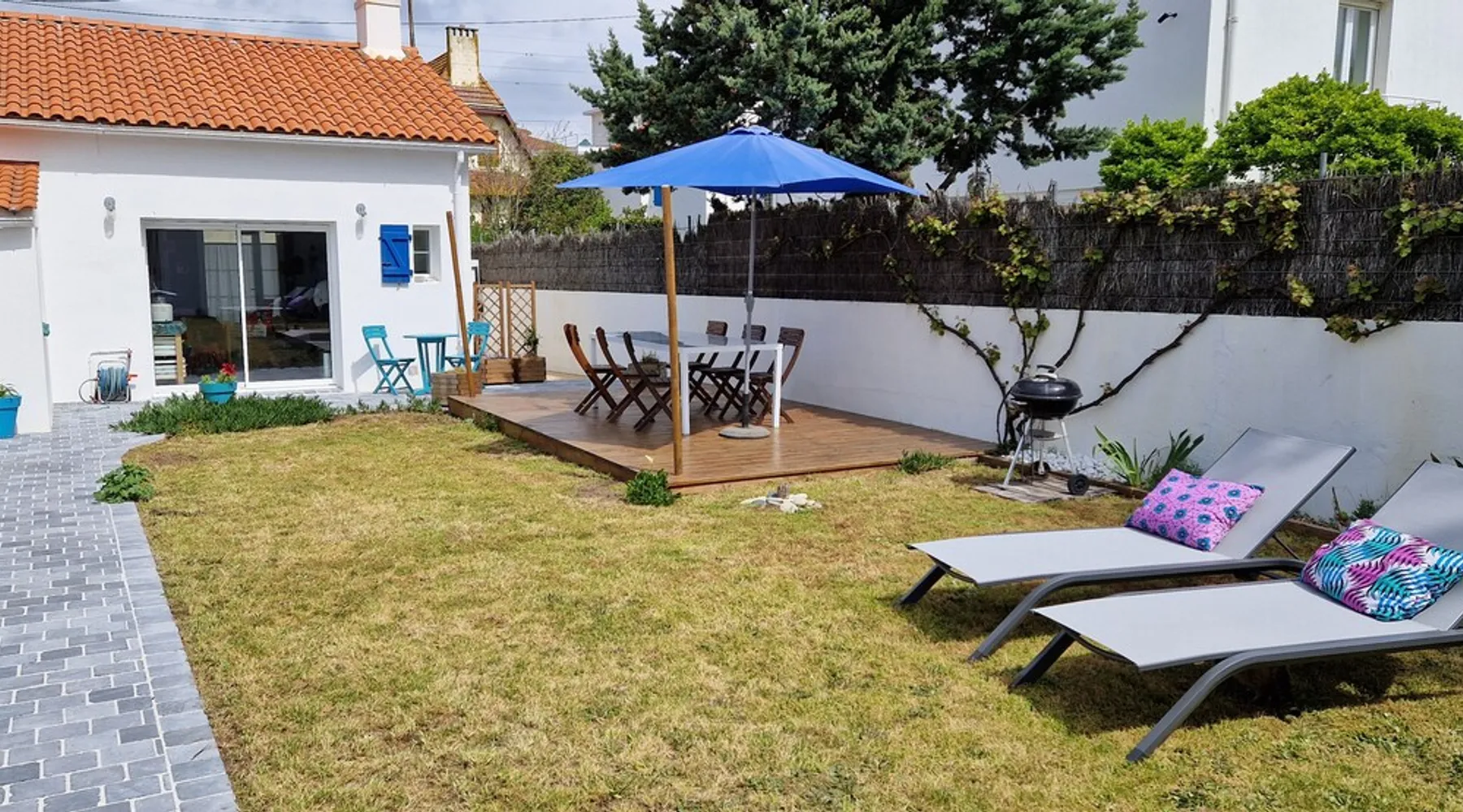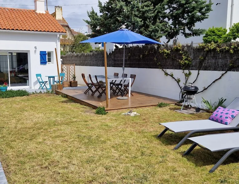 Stay in a typical house in the Grande Plage district. The house has a nice enclosed and sunny garden of about 200 m². There is a large terrace, a small shaded lounge, a barbecue and deckchairs. Once the suitcases are put down, you can do everything on foot: the beach and the sea wall are at the end of the street 400 m away, the city center and the port (market, restaurants...) are 500 m away. Many coastal walks start near the house.