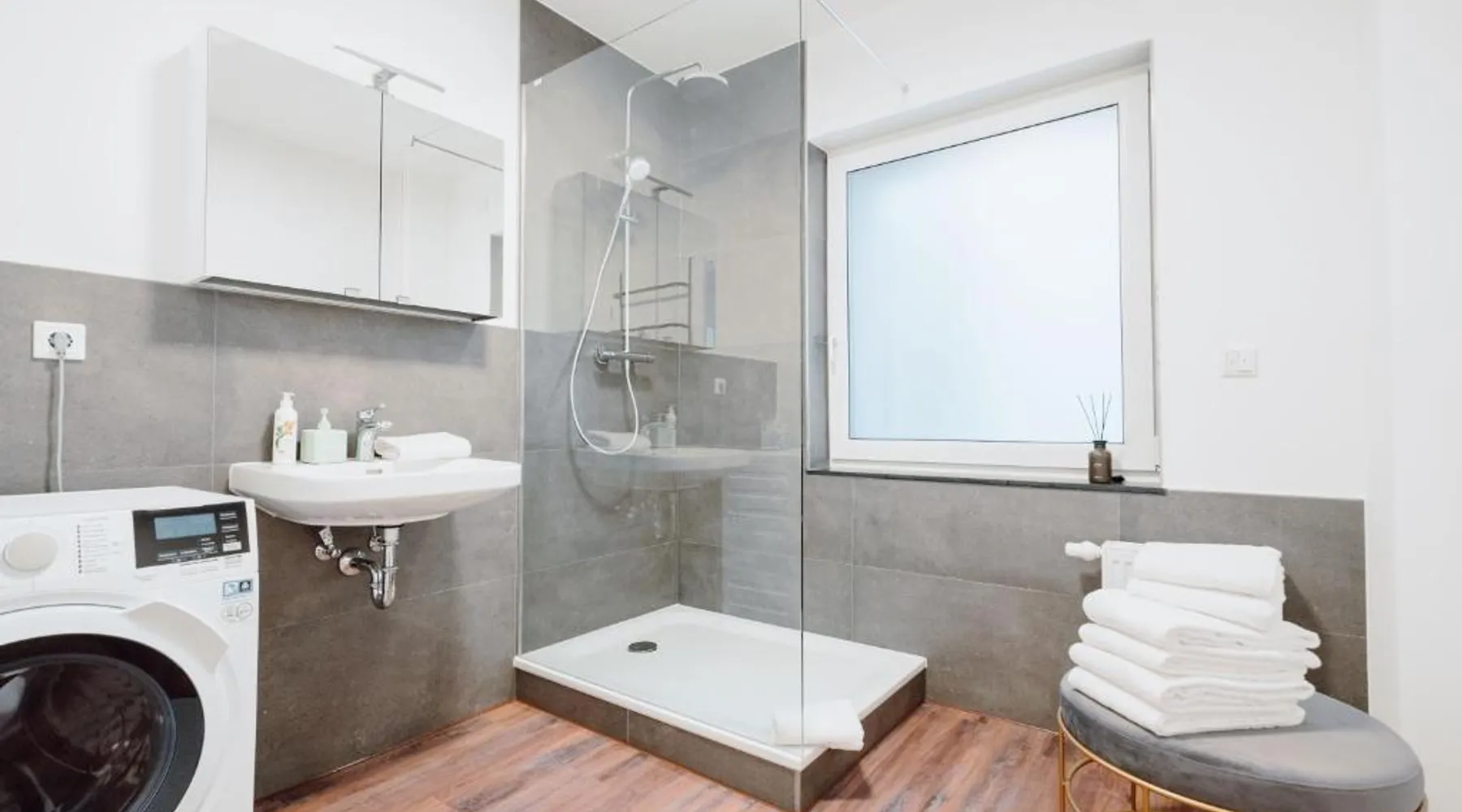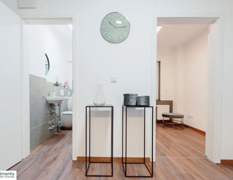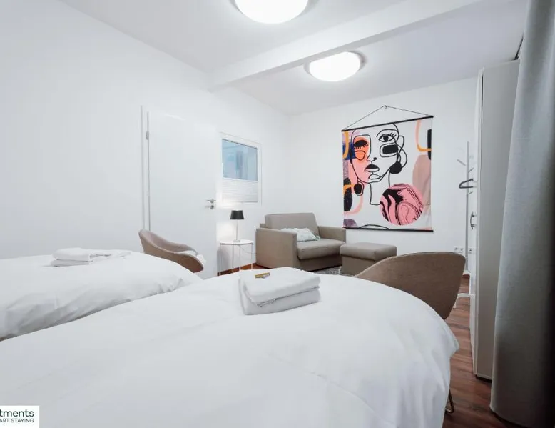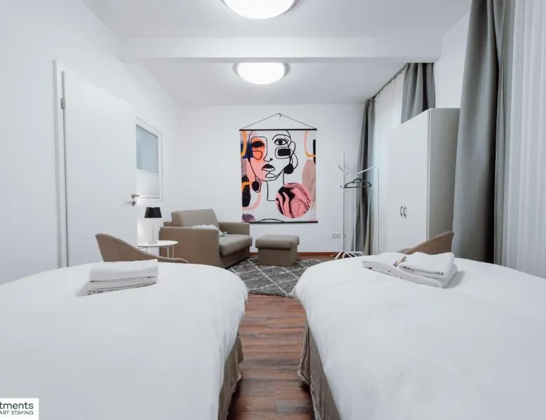Spacious Accommodations: Aasee Apartment in top Lage 262 ft² mit 2 Schlafzimmern offers a spacious apartment in Münster. The property features two bedrooms, a living room, and a bathroom, providing ample space for guests. Modern Amenities: Guests enjoy free WiFi, a fully equipped kitchen with a refrigerator, microwave, dishwasher, stovetop, and tea and coffee maker. Additional amenities include a washing machine, TV, and private entrance. Convenient Location: Located 16 mi from Münster Osnabruck International Airport, the apartment is near Münster Cathedral, Schloss Münster, and Münster Central Station, each 1.2 mi away. Other attractions include the LWL Museum of Natural History and Münster Botanical Garden, each 1.2 mi from the property. Guest Satisfaction: Highly rated by guests, the apartment is praised for its convenient location, nearby options for food and drinks, and the presence of a restaurant. Boasting a private entrance, this spacious apartment also comes with 1 living room, 2 separate bedrooms and 1 bathroom with a hairdryer. The well-equipped kitchen has a stovetop, a refrigerator, a dishwasher and a microwave. The apartment features a washing machine, a tea and coffee maker, tumble dryer, a high chair for children, as well as a flat-screen TV. The unit has 5 beds.