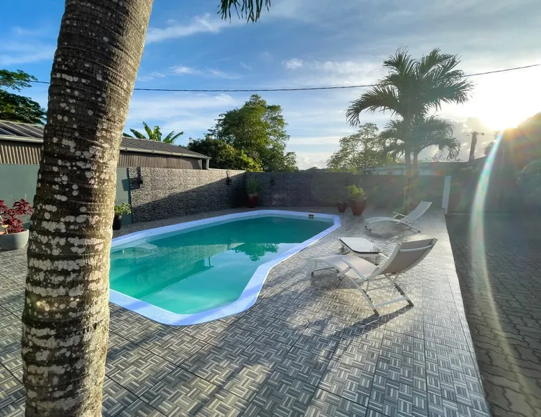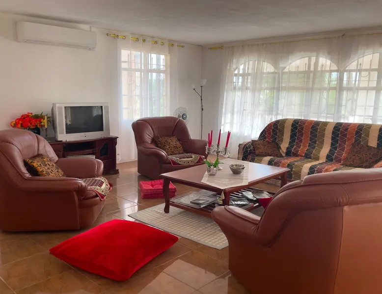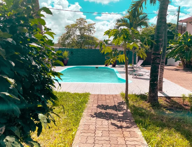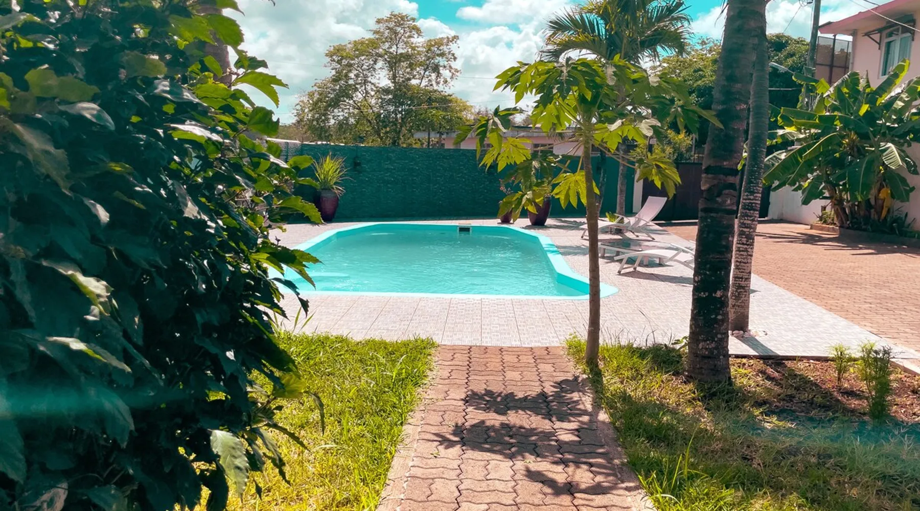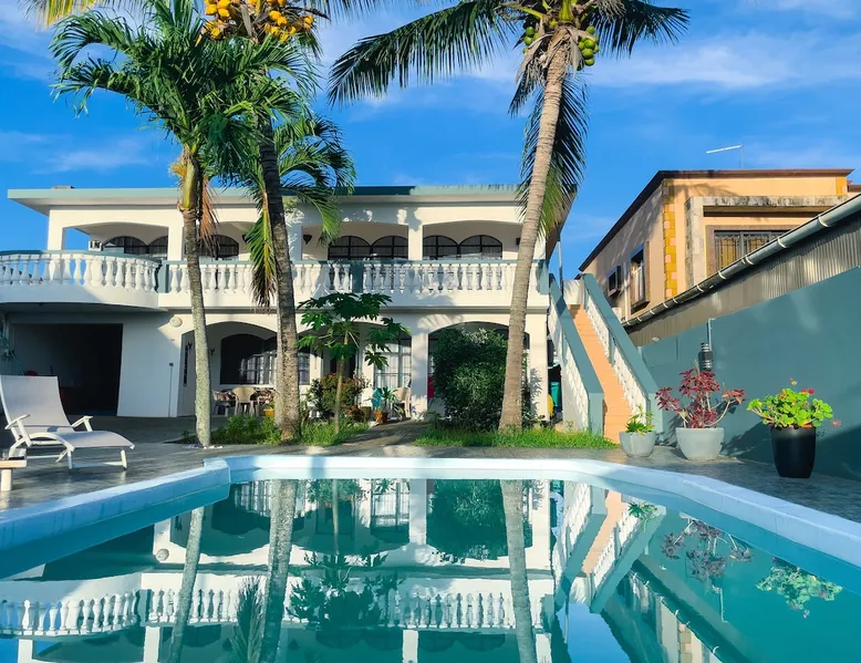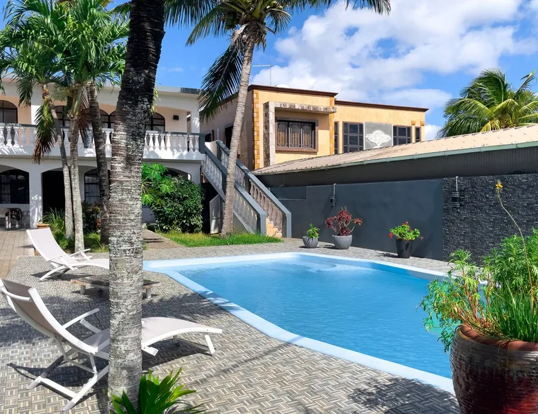Spend your holidays in a large, comfortable independent apartment located above Patrick & Premila's. Perfect for groups of friends, large families families or couples since the apartment is comfortable since the apartment is comfortable: 3 air-conditioned bedrooms, a large living room living room, a fully equipped kitchen and especially access to a large swimming pool maintained every day. Having fallen in love with Mauritius, we are keen to make your stay as pleasant as our Island. The space Spacious accommodation, 3 bedrooms, 1 double bathroom, large terrace, large living room, fully equipped kitchen, dishes, washing machine, swimming pool accessible 24 hours a day. Ideally located 10 km from the capital, 10 km from Grand Baie, 3 km from Mahogany (shopping center), 2.4 km from Pamplemousses Guest access The apartment is the second floor of our house, it is entirely dedicated to you. You can access it independently, as well as the pool. Other things to note In order for your stay to be comfortable, we offer other services that we have always missed when we came to Mauritius: pick you up from the airport (for a higher rate than that of Mauritian taxis), negotiate discounts for you on car rentals, prepare typical meals...