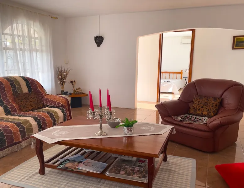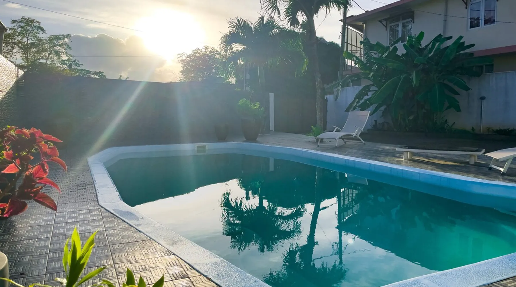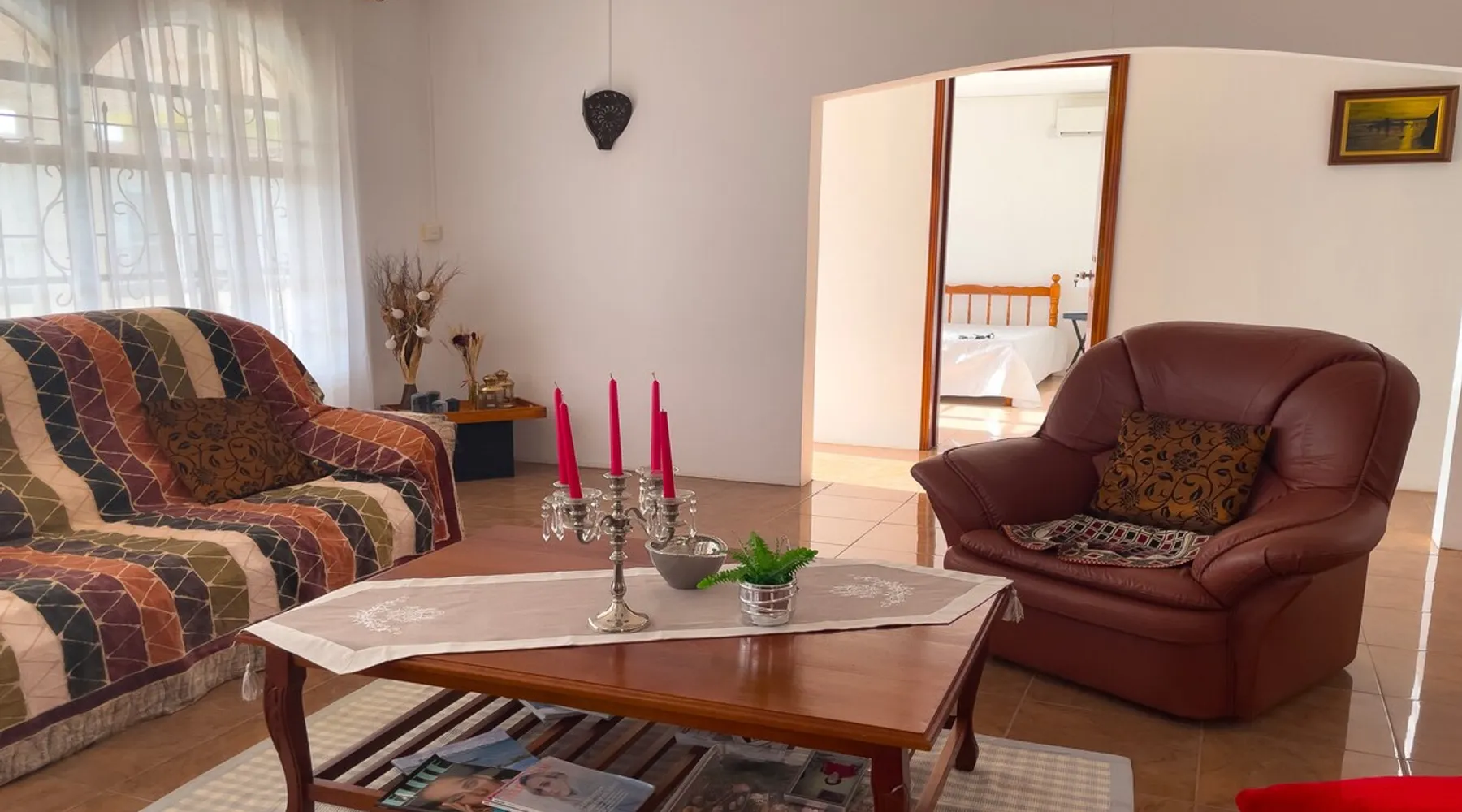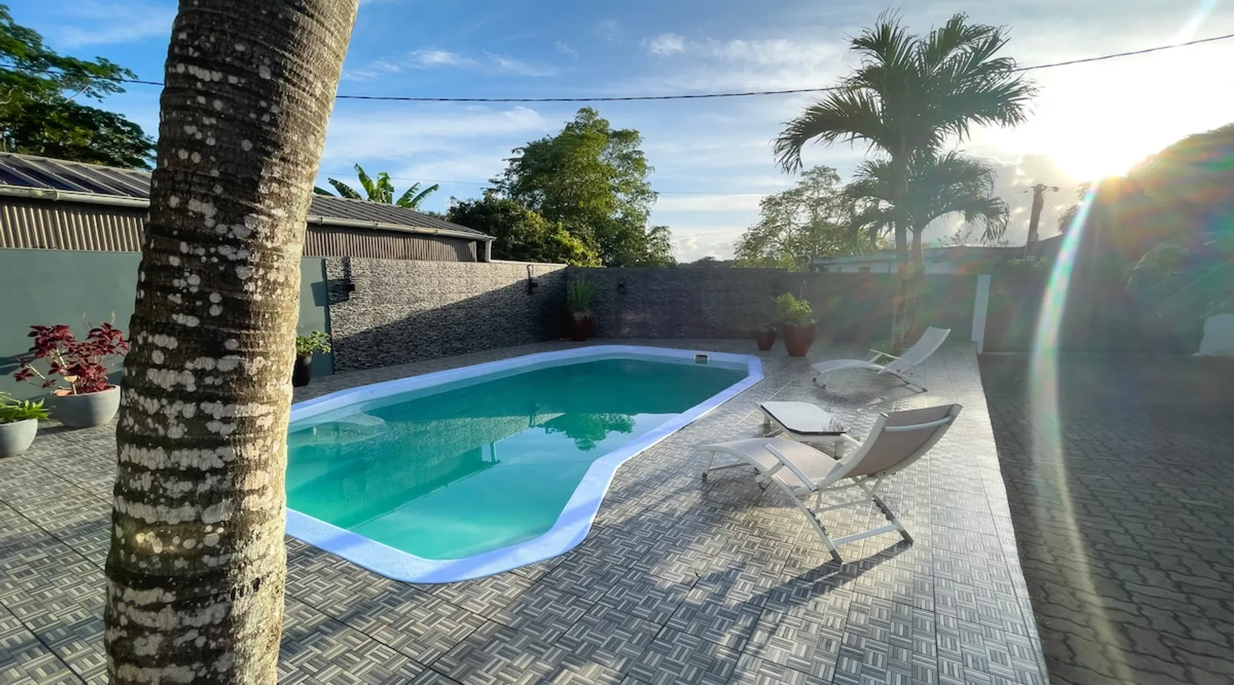 Spend your holidays in a large, comfortable independent apartment located above Patrick & Premila's. Perfect for groups of friends, large families families or couples since the apartment is comfortable since the apartment is comfortable: 3 air-conditioned bedrooms, a large living room living room, a fully equipped kitchen and especially access to a large swimming pool maintained every day. Having fallen in love with Mauritius, we are keen to make your stay as pleasant as our Island. The space Spacious accommodation, 3 bedrooms, 1 double bathroom, large terrace, large living room, fully equipped kitchen, dishes, washing machine, swimming pool accessible 24 hours a day. Ideally located 10 km from the capital, 10 km from Grand Baie, 3 km from Mahogany (shopping center), 2.4 km from Pamplemousses Guest access The apartment is the second floor of our house, it is entirely dedicated to you. You can access it independently, as well as the pool. Other things to note In order for your stay to be comfortable, we offer other services that we have always missed when we came to Mauritius: pick you up from the airport (for a higher rate than that of Mauritian taxis), negotiate discounts for you on car rentals, prepare typical meals...