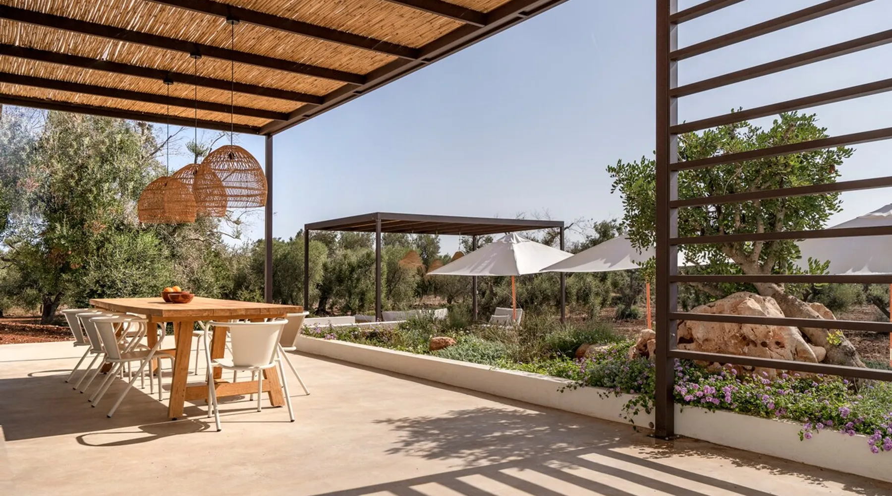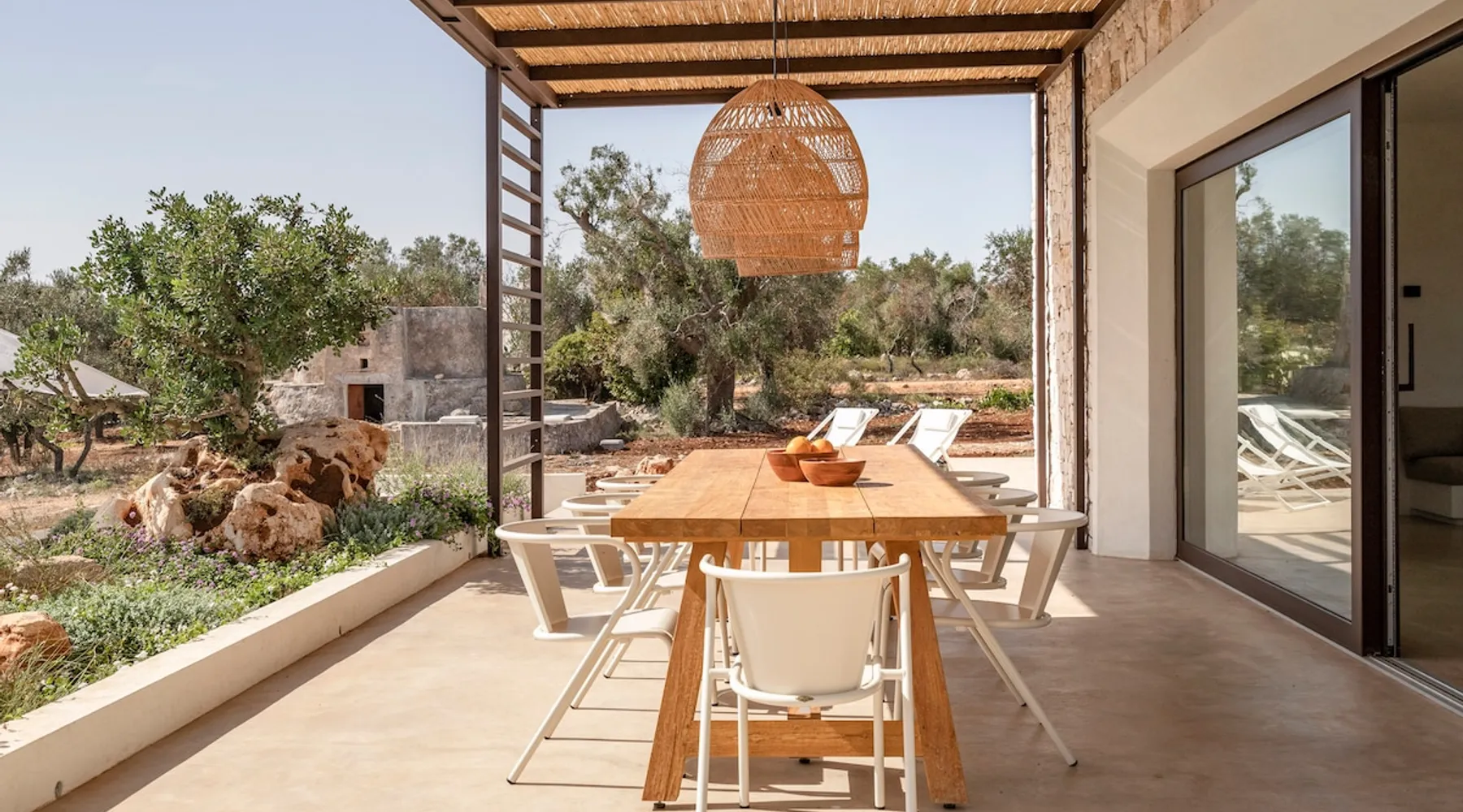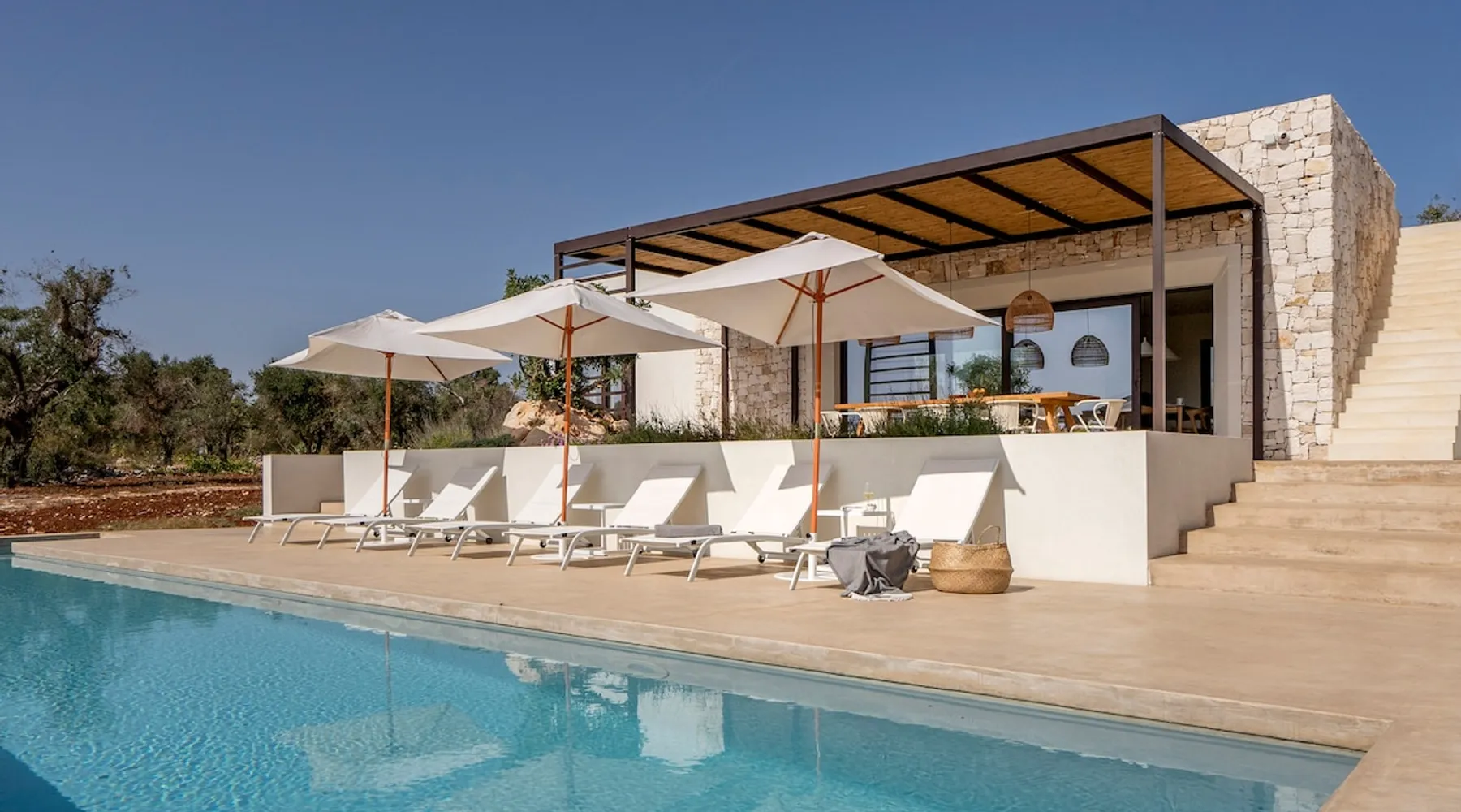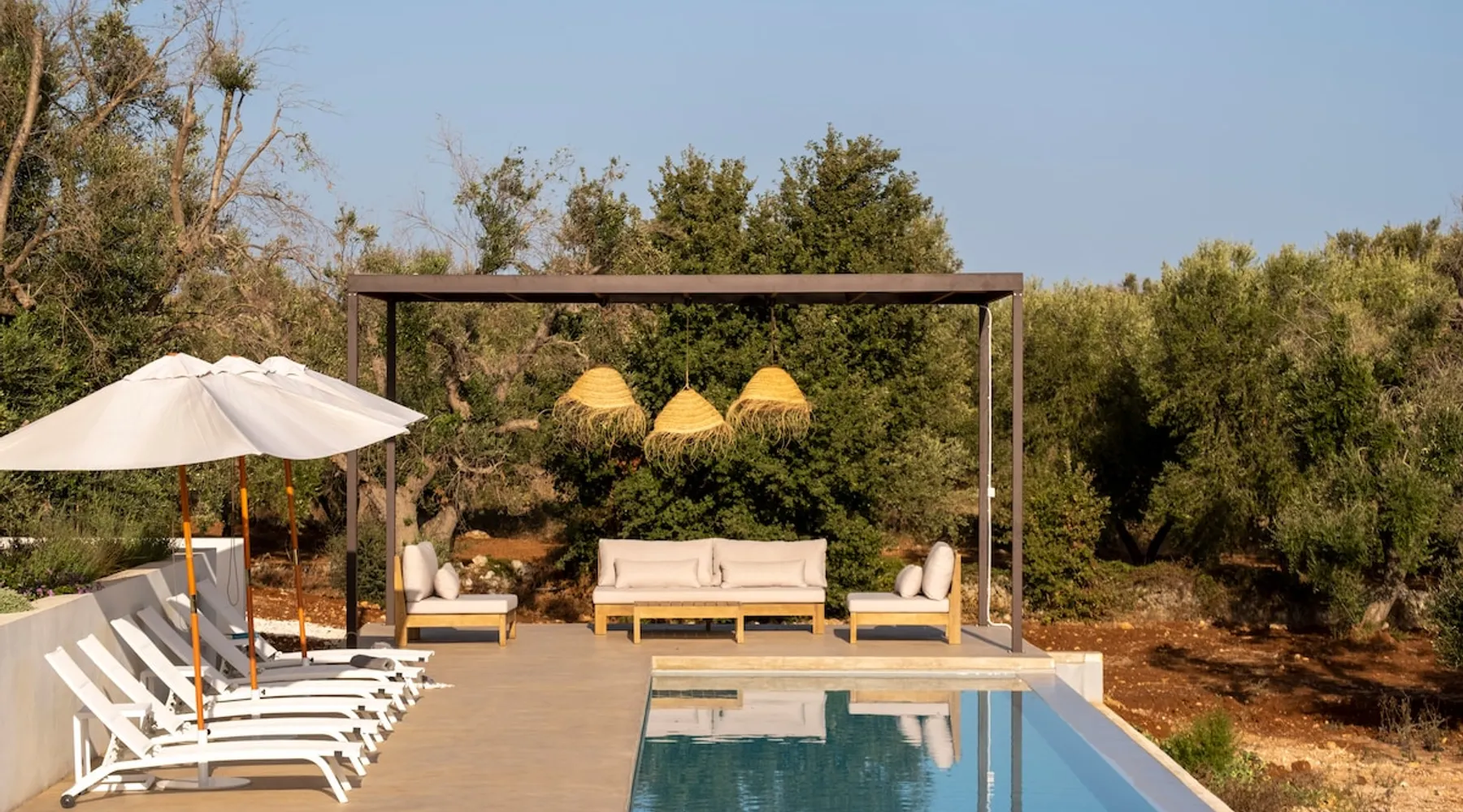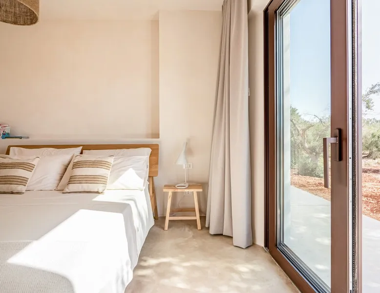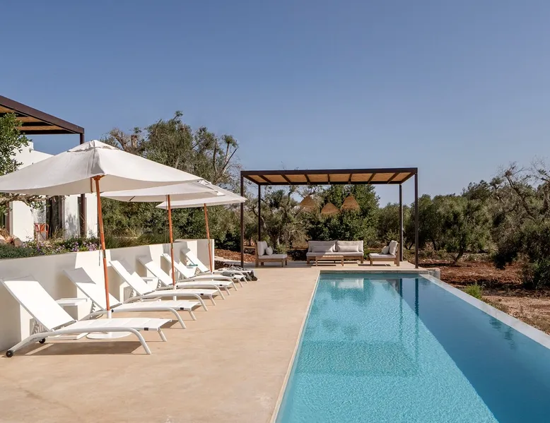 Wake up to the silence of centuries-old olive groves and the sunlight filling a bright, modern villa. Casa Essenza is a peaceful and elegant retreat, perfect for couples, families, or small groups. Enjoy the spacious interiors, stroll among the olive trees, and immerse yourself in the tranquility of the Puglian countryside. Just minutes from the beaches, historic villages, and local culinary delights, every stay here becomes an unforgettable experience. The space Serene and refined, Casa Essenza features a neutral color palette of sand and white, with bright windows overlooking landscaped gardens and lush outdoor spaces. The infinity pool contrasts beautifully with the villa’s vibrant white exterior, while inside, the modern yet warm interiors feature natural wood furniture and soft, earthy tones of sand and velvety brown. The villa is fully fenced and accessible via an automatic gate. Outdoor spaces include a stunning pool with sun deck, a spacious furnished veranda for aperitifs, authentic Puglian dinners, or relaxing with a good book after a refreshing swim. An ancient olive grove surrounds the property, perfectly blending old and new. Inside, the atmosphere is calm and understated, with concrete floors, minimalist furnishings, and simple decor. All four double bedrooms open onto the garden and pool, while the contemporary kitchen and dining area extend to an outdoor dining space. The panoramic terrace offers breathtaking views of the expansive garden and the picturesque northern Salento countryside, making every moment of your stay truly unforgettable. Guest access Enjoy complete privacy at Casa Essenza: the villa, garden, and pool are entirely at your disposal to relax, unwind, and make the most of your stay. Other things to note Tourist tax: € 1.30 per person, per night, payable upon arrival. Important Information about Your Stay Included in the price: Wi-Fi connection Air conditioning Utilities (water, electricity, gas) Bed, bathroom, and pool linens Important notes: Children are welcome, but must always be supervised by an adult. Upon arrival, guests will be asked to sign a rental agreement with the house rules. Registration Details IT074002C200083453