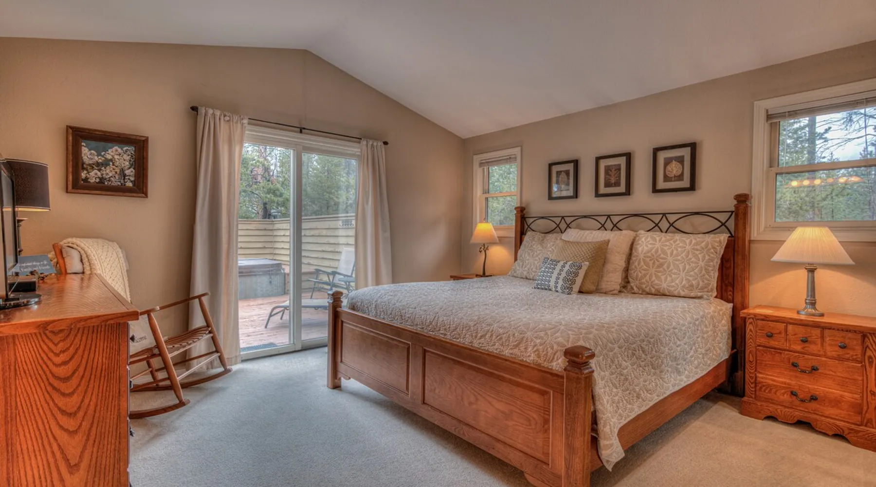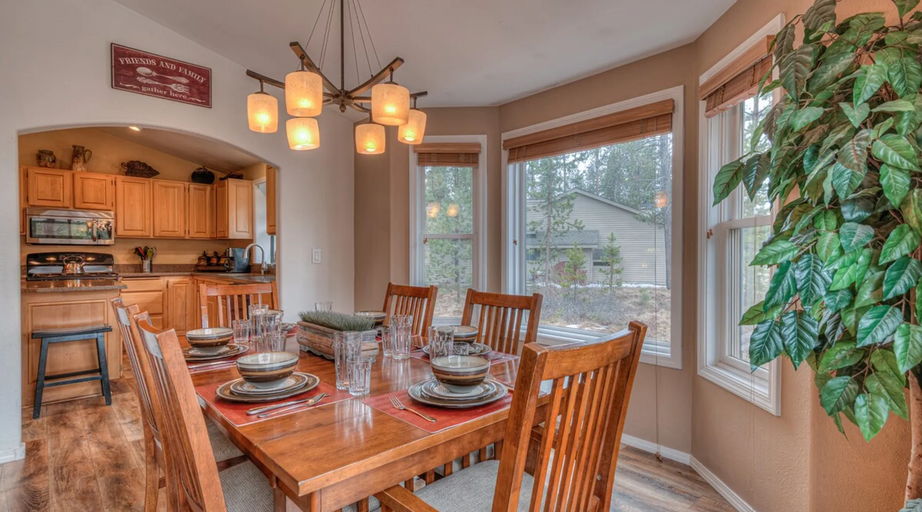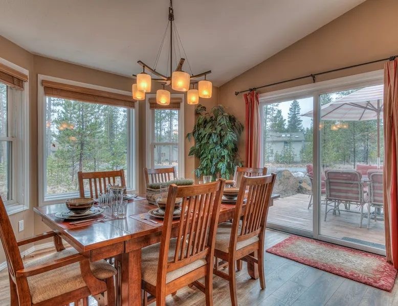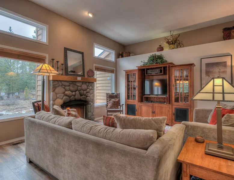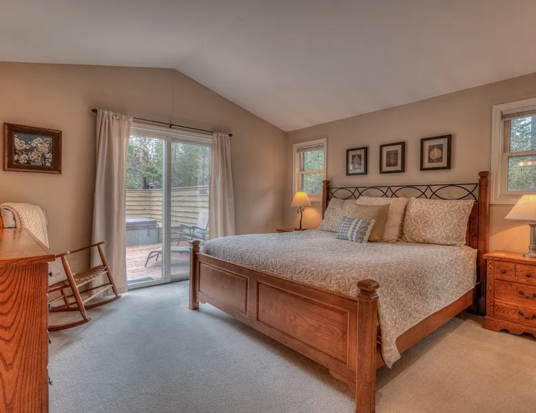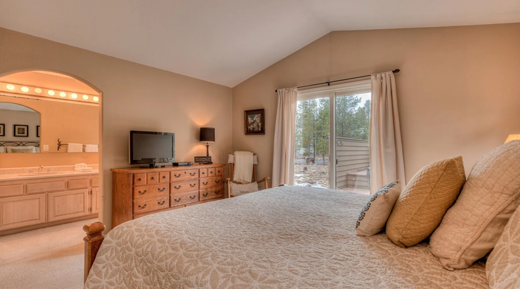 This family-friendly Sunriver vacation home offers cozy charm with new decor and a peaceful deck for wildlife watching. The single-level layout includes a King Ensuite, two Queen bedrooms, and three full bathrooms. Enjoy ping pong or explore Sunriver’s scenic trails with seven adult bikes. Perfect for a relaxing getaway. The space This newer single-level home has a cozy feel and new decor, making it a relaxing, and enjoyable, home away from home. Relax on the quiet deck area while watching the deer, curl up or watch a DVD in the comfy living room. The adjacent dining room has room for 6 and the fully-equipped kitchen has everything you'll need to whip up a culinary masterpiece. The first bedroom is a King Ensuite with TV and attached private bathroom with walk-in shower. Bedroom two is a queen bedroom with TV and attached private bathroom with a spacious walk-in shower. Bedroom 3 has a queen bed and tv and access to a full guest bathroom. When it's time to play, start a game of ping pong or go on a bike ride with one of the 7 adult bikes waiting in the garage. This home, along with most Sunriver homes, is not air conditioned. With our cool mountain evenings and ice cold rivers and lakes to keep you cool, this is a great house for a slow paced, ice cream and iced beer kinda summer. Booking a family reunion or group gathering? Reserve this home along with Ollalie 14 to have the whole group together This home welcomes dogs, 2 max, no other pets are allowed. Fees apply. *Fireplace is non-operational Guest access Home access information will be sent 7 - 10 days prior to arrival. All homes are set up for self check-in, no need to stop by the office, just go straight to the home. Other things to note AGE RESTRICTIONS: Guests must be 23 years or older to rent Bennington homes and the person reserving must occupy the home the whole reservation.